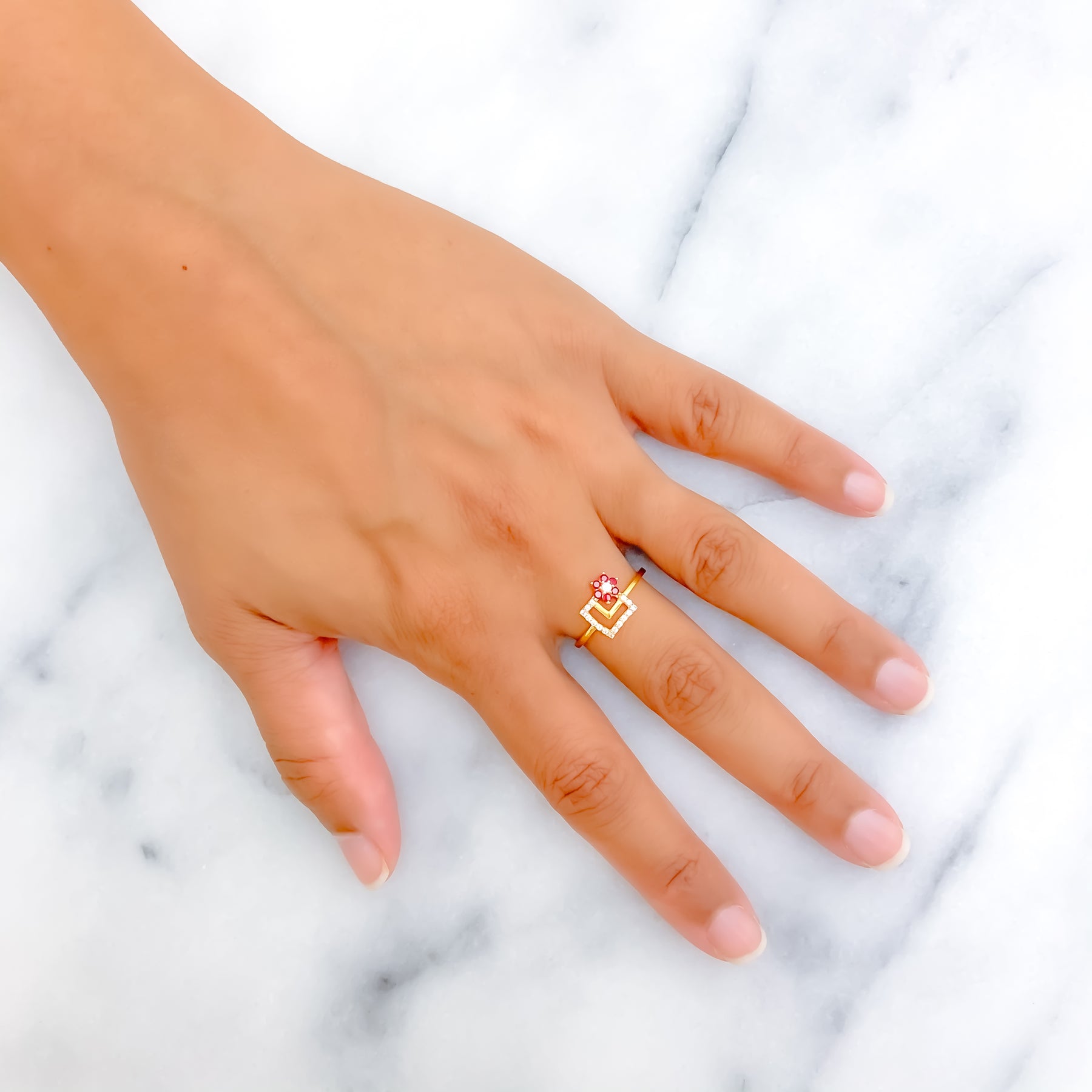 Designed with delicate brilliance, this lightweight 1.8-gram 22k gold ring radiates with shimmering CZ stones. Its sleek yellow gold finish adds warmth and charm to the elegant design. The size 7 band is resizable for a custom, comfortable fit. Perfect for adding a luminous touch to your daily ensemble.