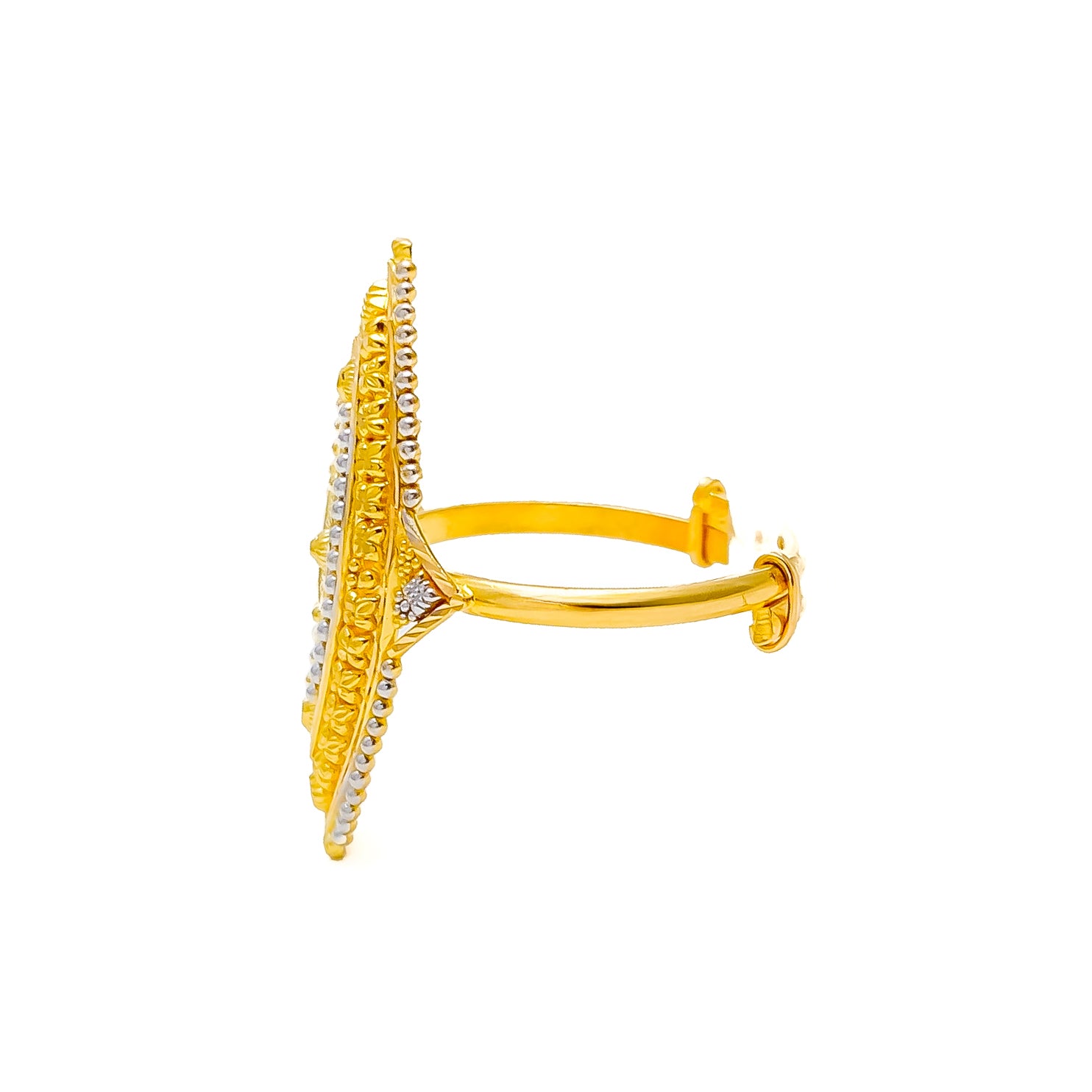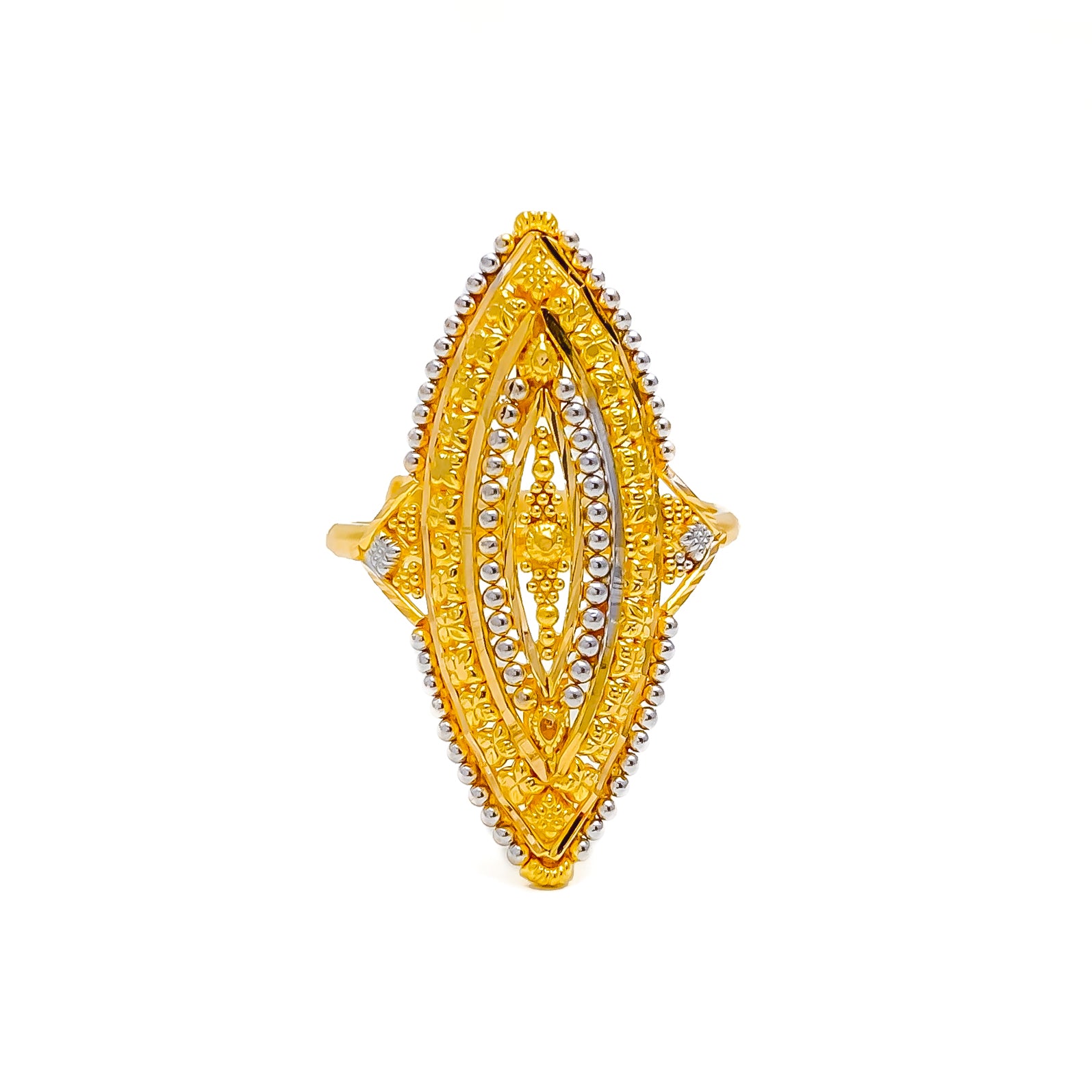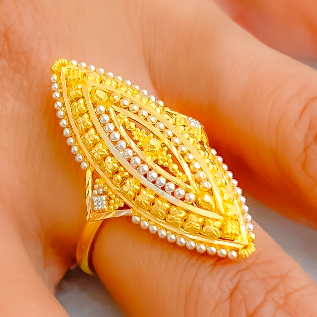 This elegant 22k yellow gold ring, weighing 6.1 grams, showcases a distinguished design that highlights both craftsmanship and luxury. The polished finish enhances its radiant glow, making it a versatile treasure. Sized at 8.5, it offers resizing flexibility for comfort. A sophisticated piece that adds timeless charm to any collection.