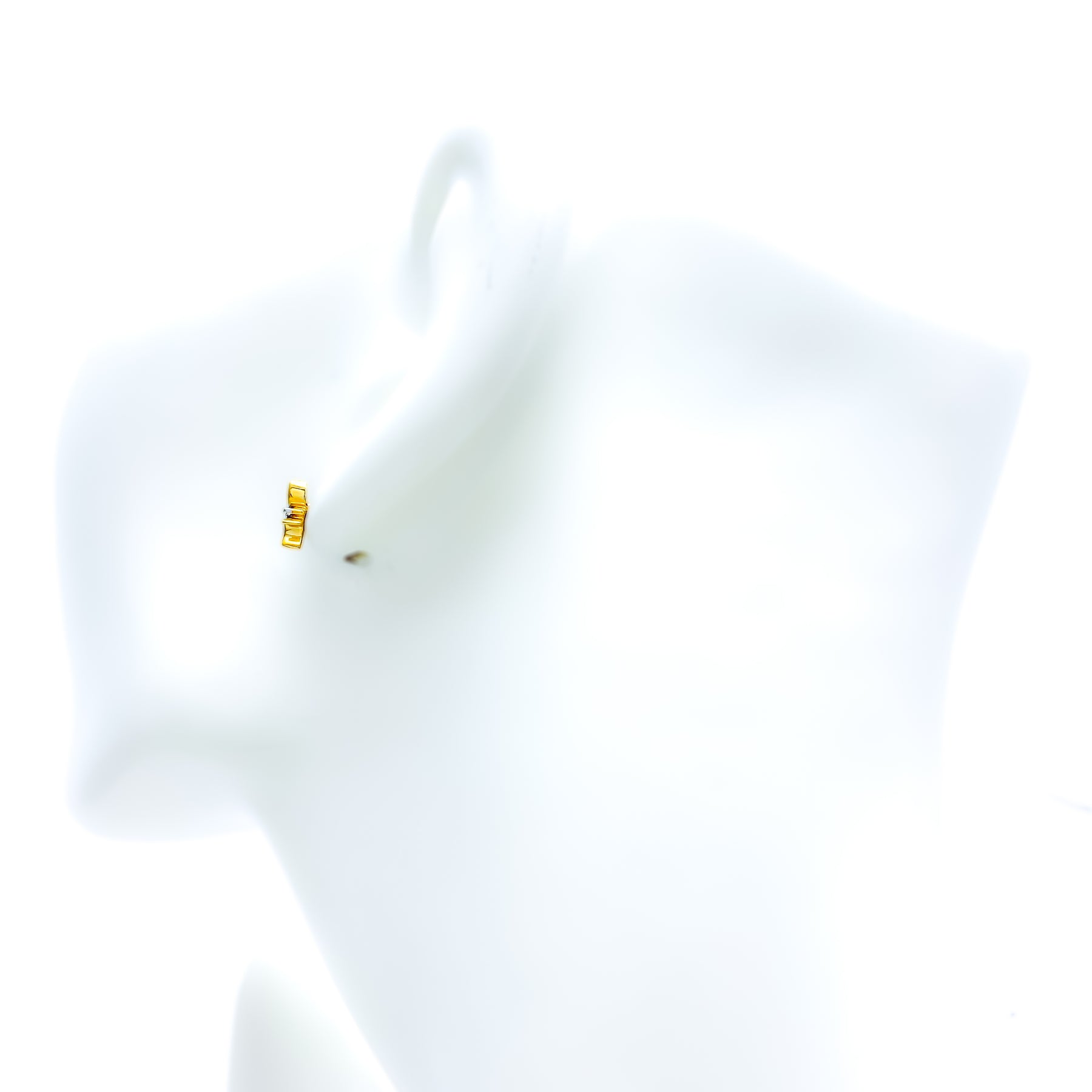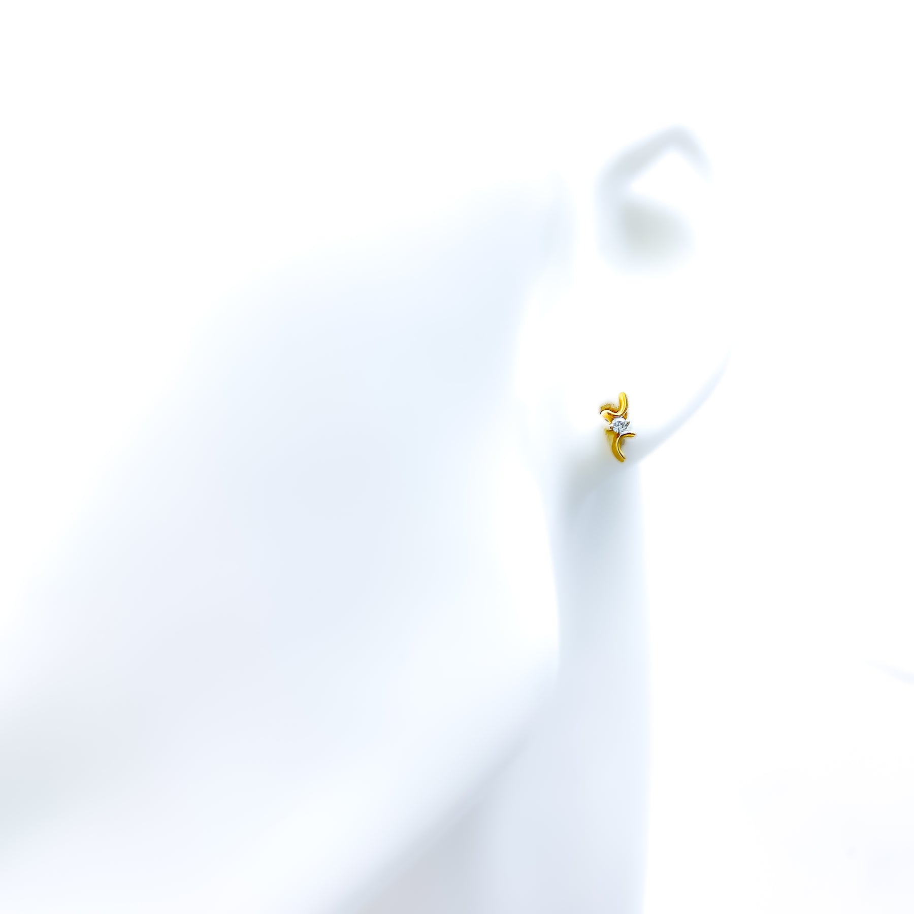 Softly sculpted, these 18k yellow gold baby earrings weigh 1.5 grams and feature round brilliant cut diamonds totaling 0.06 carats in G–H color with VS clarity. Designed as petite tops, the refined 0.3-inch length highlights a mesmerizing wavy silhouette with gentle sparkle. The push-back post ensures comfortable, secure wear while maintaining a lightweight, polished finish. Graceful yet timeless, these earrings offer charming elegance ideal for baby jewelry, keepsake gifting, and everyday special wear.