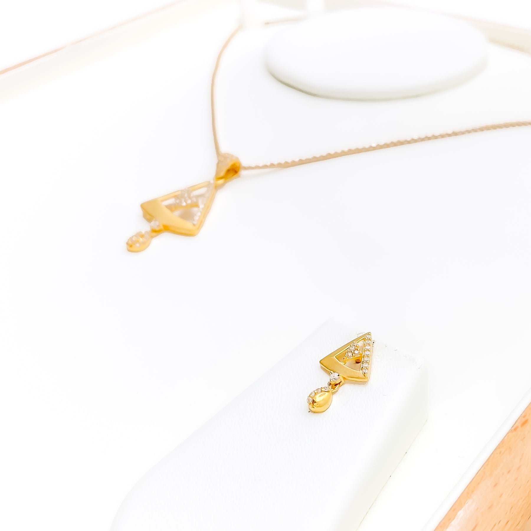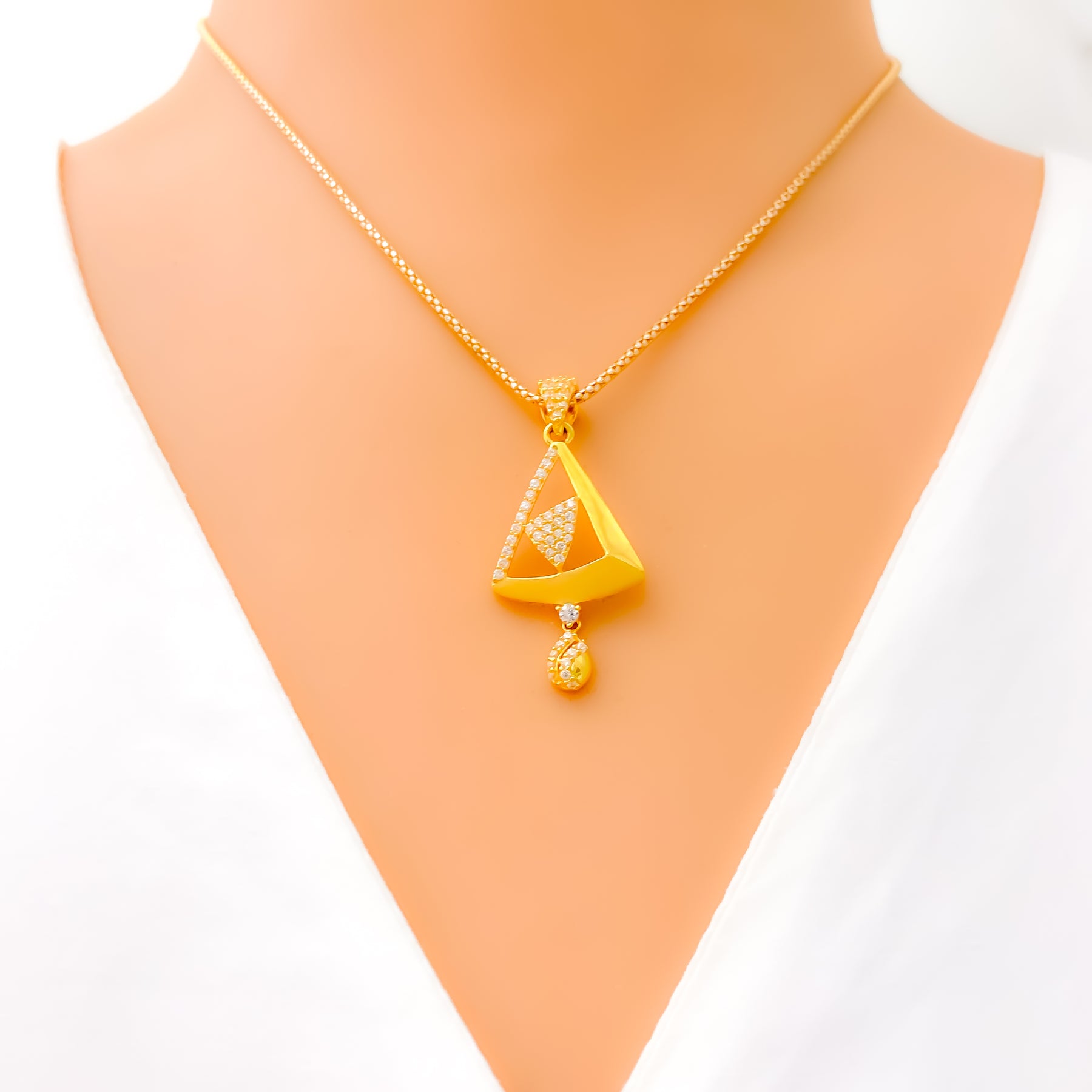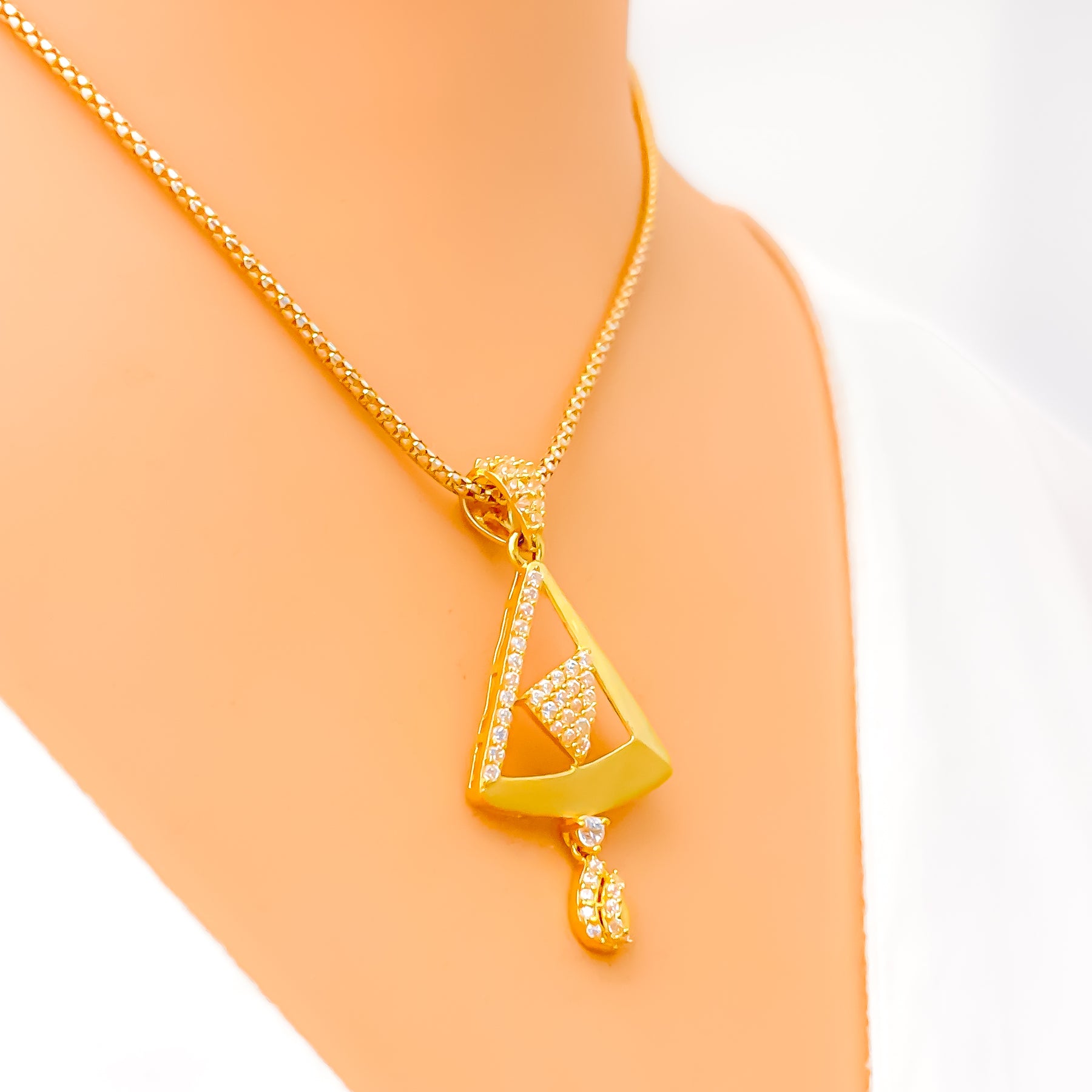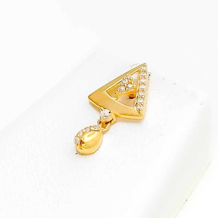 Showcased with luminous poise, this 22k gold pendant set highlights a refined 6.0-gram profile enhanced by sparkling CZ stones that brighten its elegant 1.5-inch centerpiece. Its warm yellow-gold finish enriches every contour with radiant depth and graceful charm. The matching 0.75-inch screw-back earrings offer a seamless blend of polished brilliance and everyday versatility suited for many styles. Presented as a three-piece ensemble, it delivers a stunning touch of golden sophistication to any thoughtfully curated look.