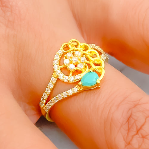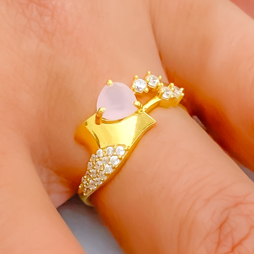 Crafted in glowing 22k yellow gold and weighing 1.7 grams, this elegant ring features a sparkling pear-shaped cubic zirconia set in a refined, polished frame. The teardrop silhouette adds a touch of graceful sophistication, while the golden finish enhances its warm brilliance. Sized at 6.75 with re-sizing available, it offers a perfect blend of comfort and versatility. Ideal for adding a refined accent to any look, this piece combines modern poise with timeless allure.
