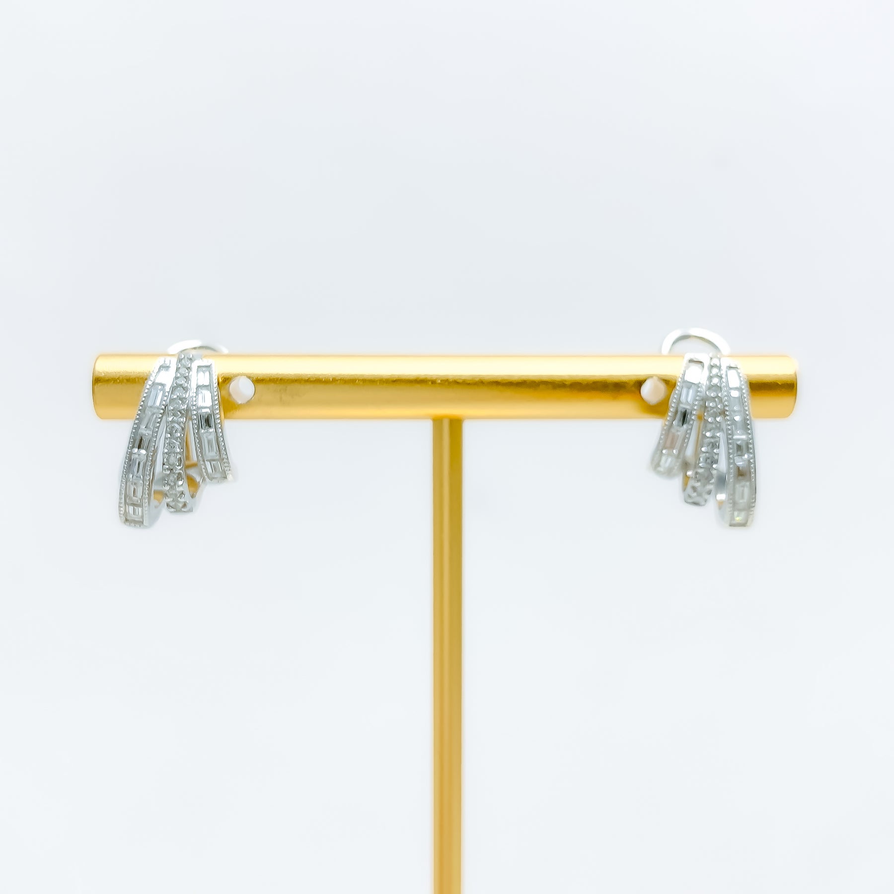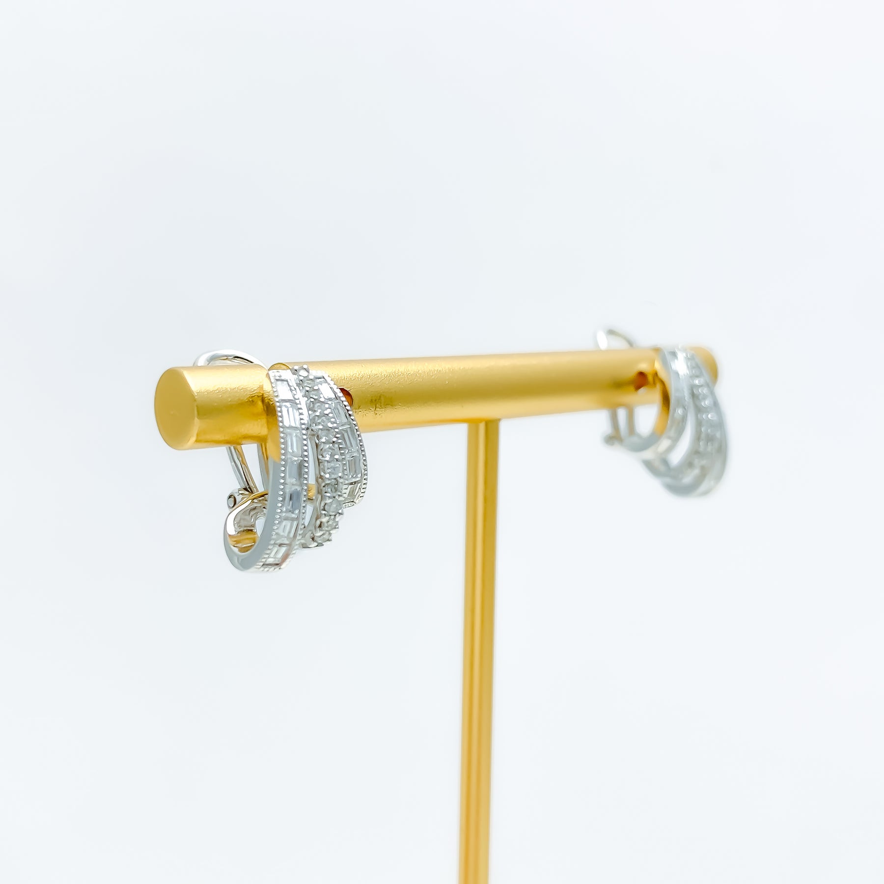 Defined with polished radiance, these 18k white-gold earrings showcase a refined 5.4-gram profile enriched with 0.72ct of VS-clarity G–H diamonds in round and baguette cuts that create a luminous, dressy shimmer. The cool white-gold finish enhances each sparkling facet with crisp depth, giving the 0.6-inch silhouette an elegant and graceful presence. Designed in a classic tops style, they offer a balanced blend of modern brilliance and timeless sophistication suited for many elevated looks. Completed with secure push-back clasps, they bring a gleaming touch of luxurious diamond beauty to any thoughtfully curated collection.