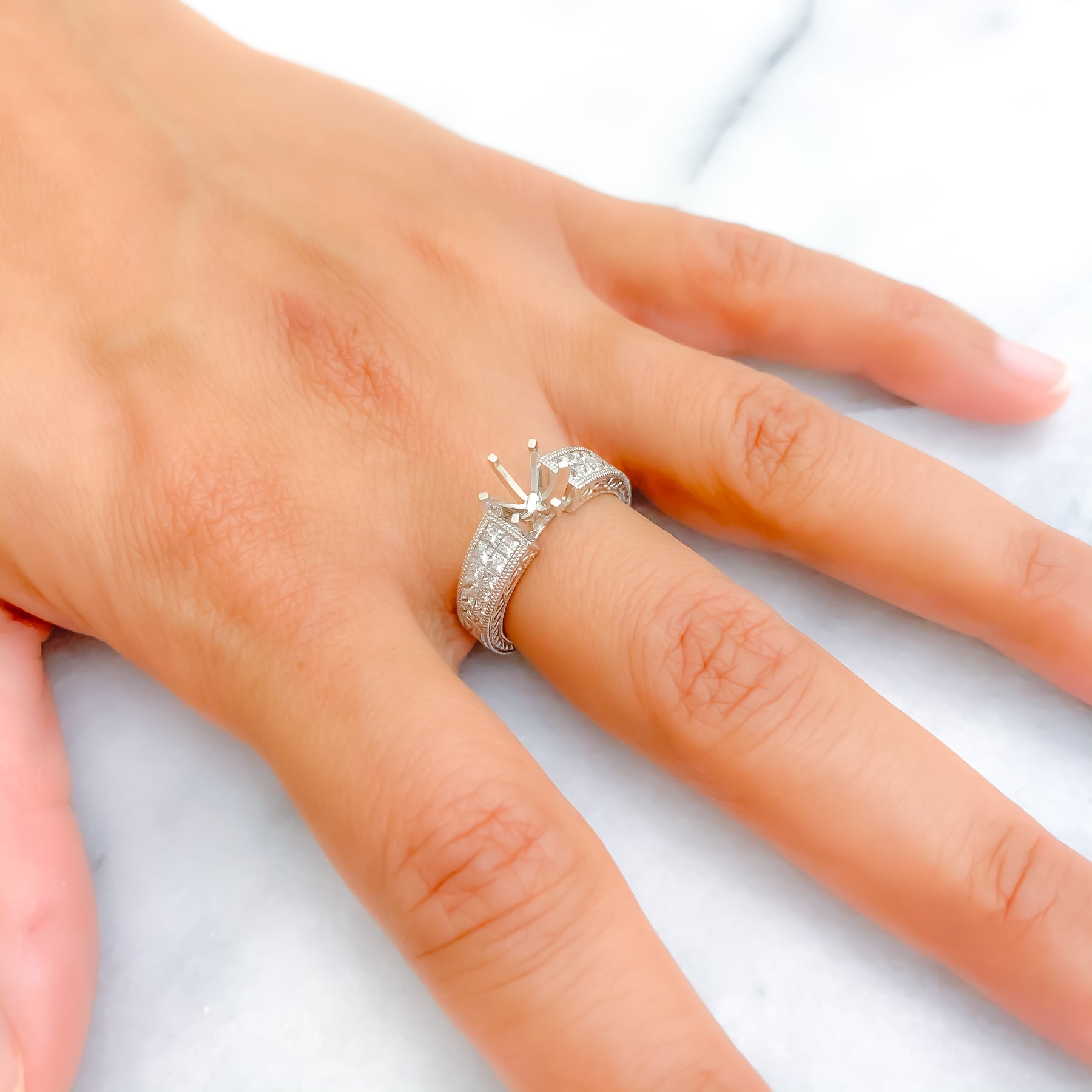 Minimalist Radiant Platinum + Diamond Setting