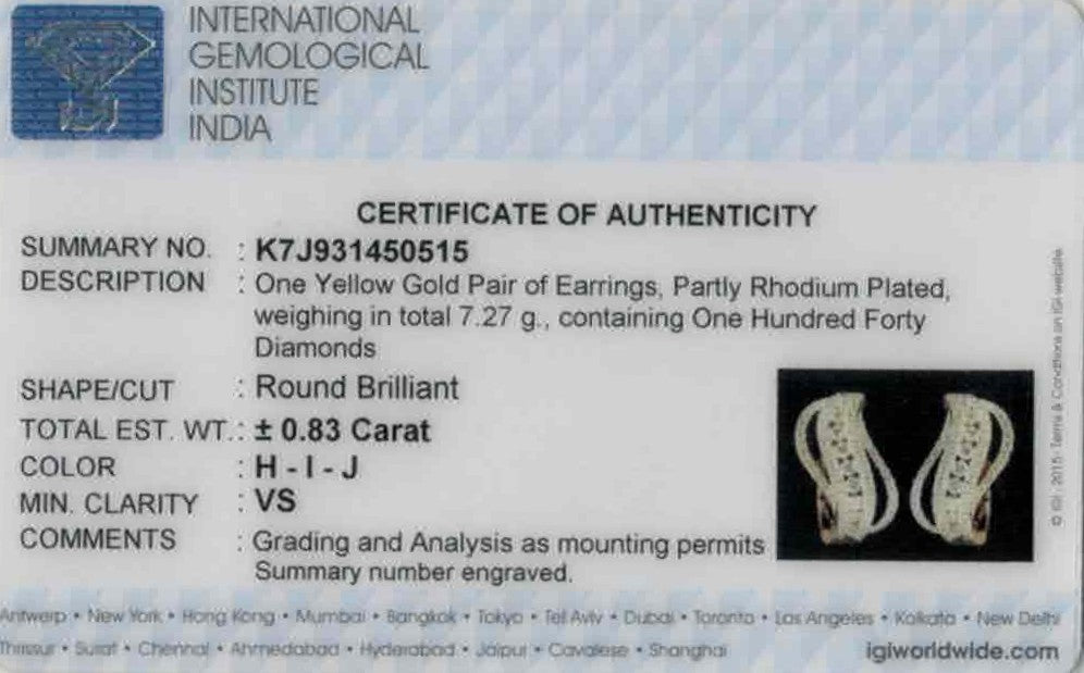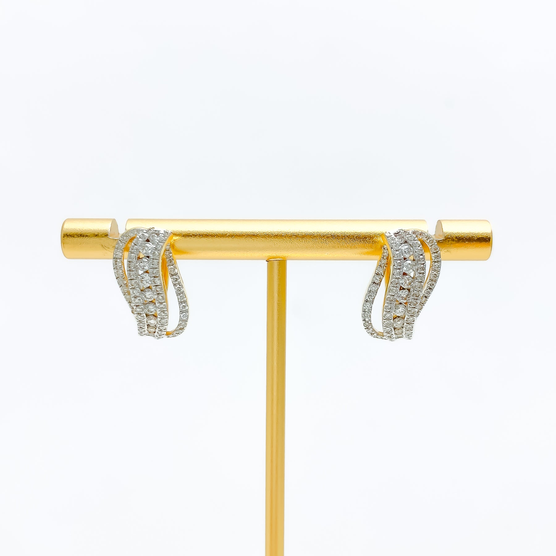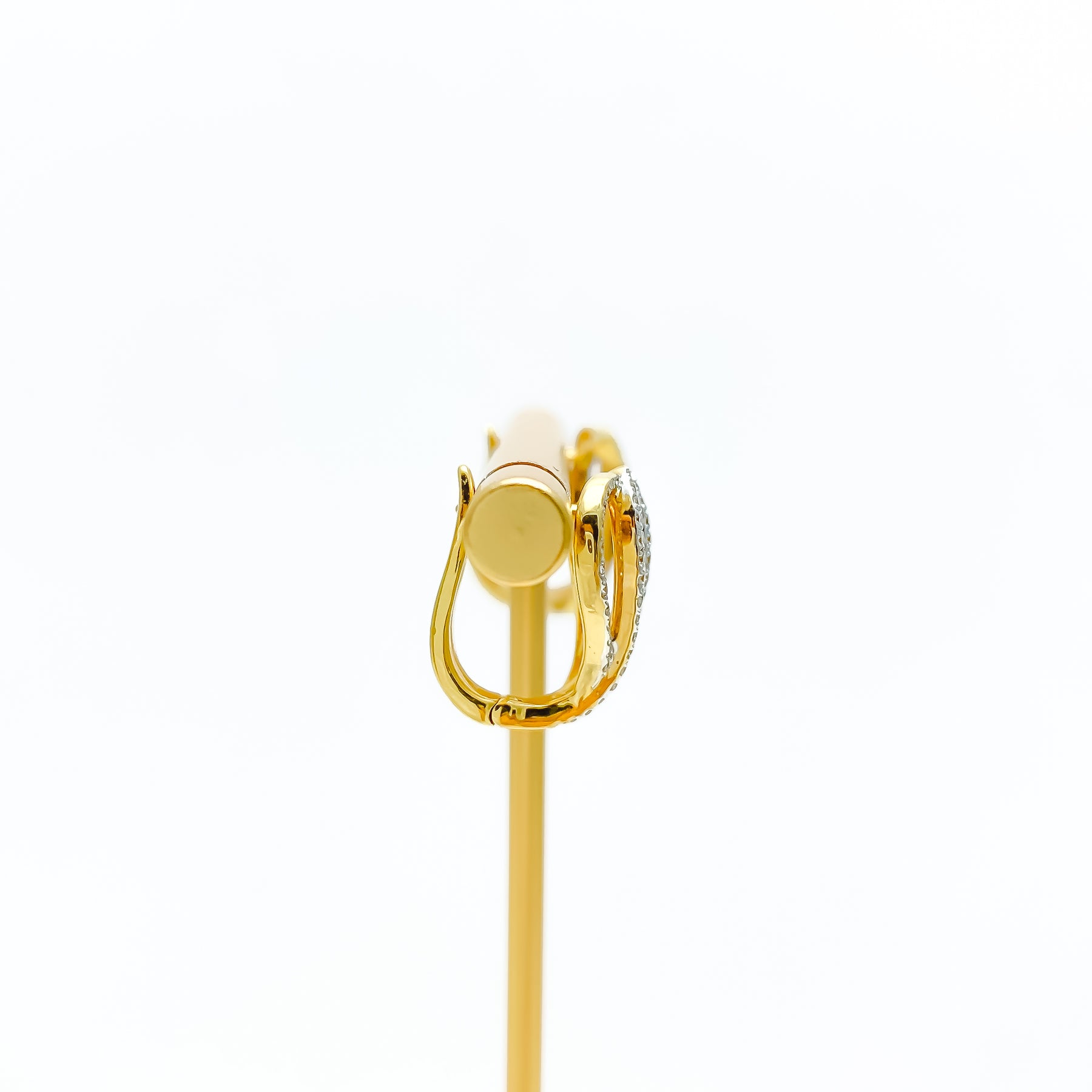 Defined with radiant contouring, these 18k yellow-gold earrings reveal a smooth 7.27-gram profile accented by 0.83ct of VS-clarity diamonds in round brilliant cuts that create a luminous half-curved sparkle. The warm gold finish enriches each stone with glowing dimension, enhancing the refined 0.75-inch silhouette with polished sophistication. Designed in a hybrid tops-and-Bali style, they offer a graceful blend of modern brilliance and timeless charm suited for many elevated looks. Completed with secure push-back clasps, they bring a glistening touch of golden diamond elegance to any thoughtfully curated collection.