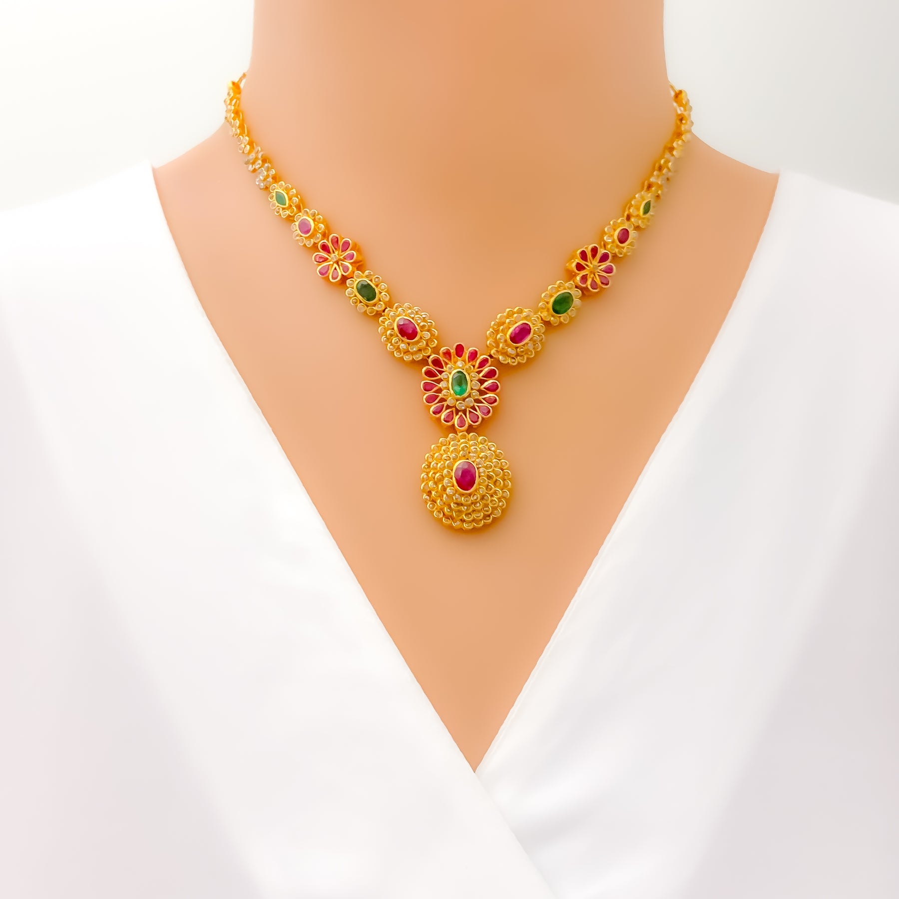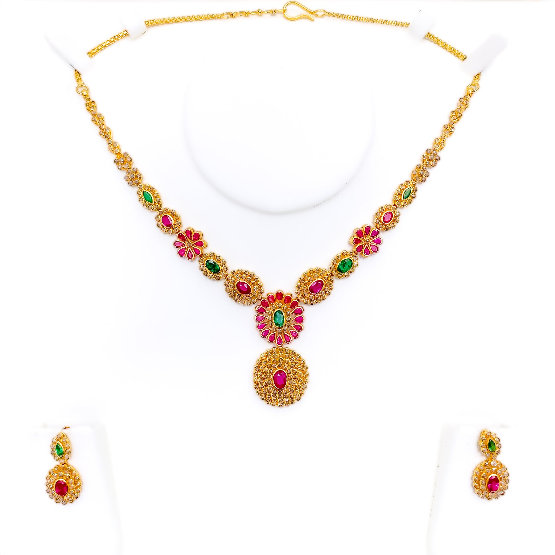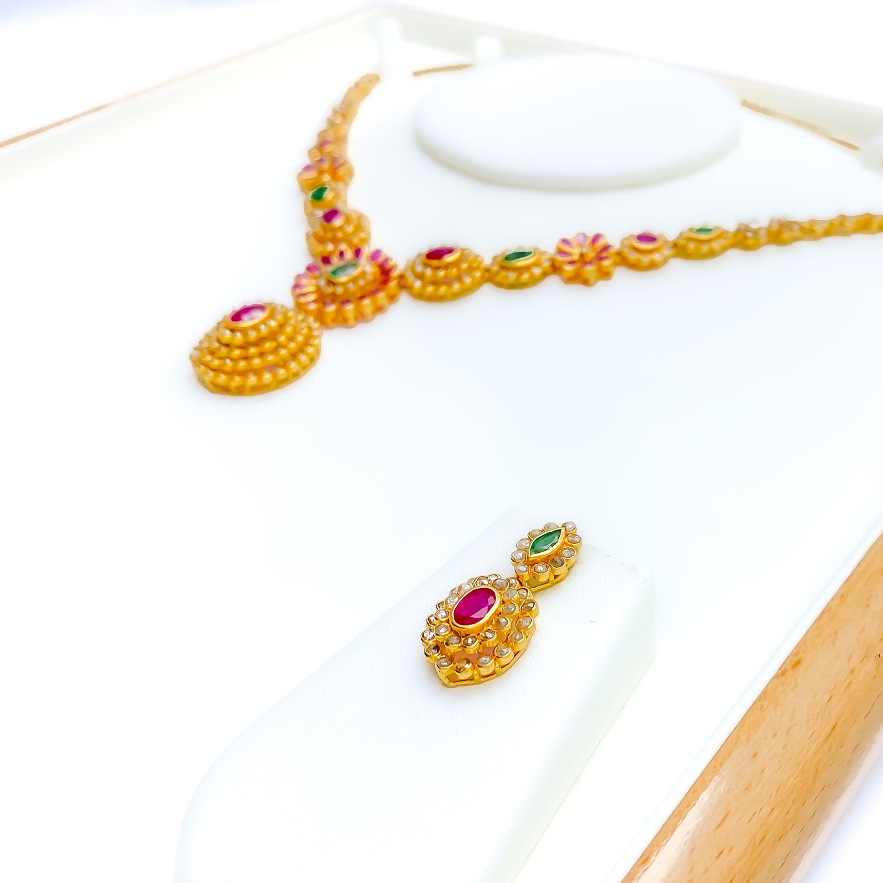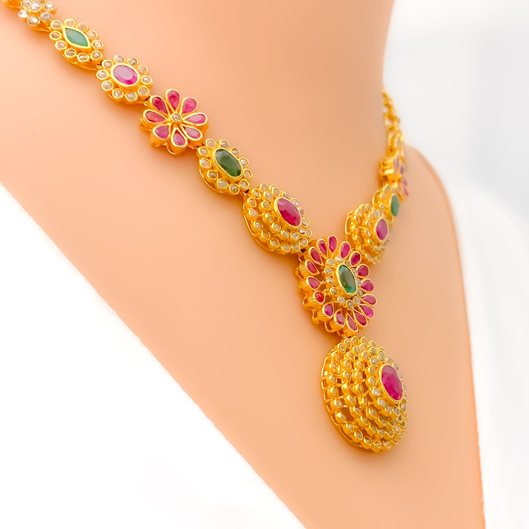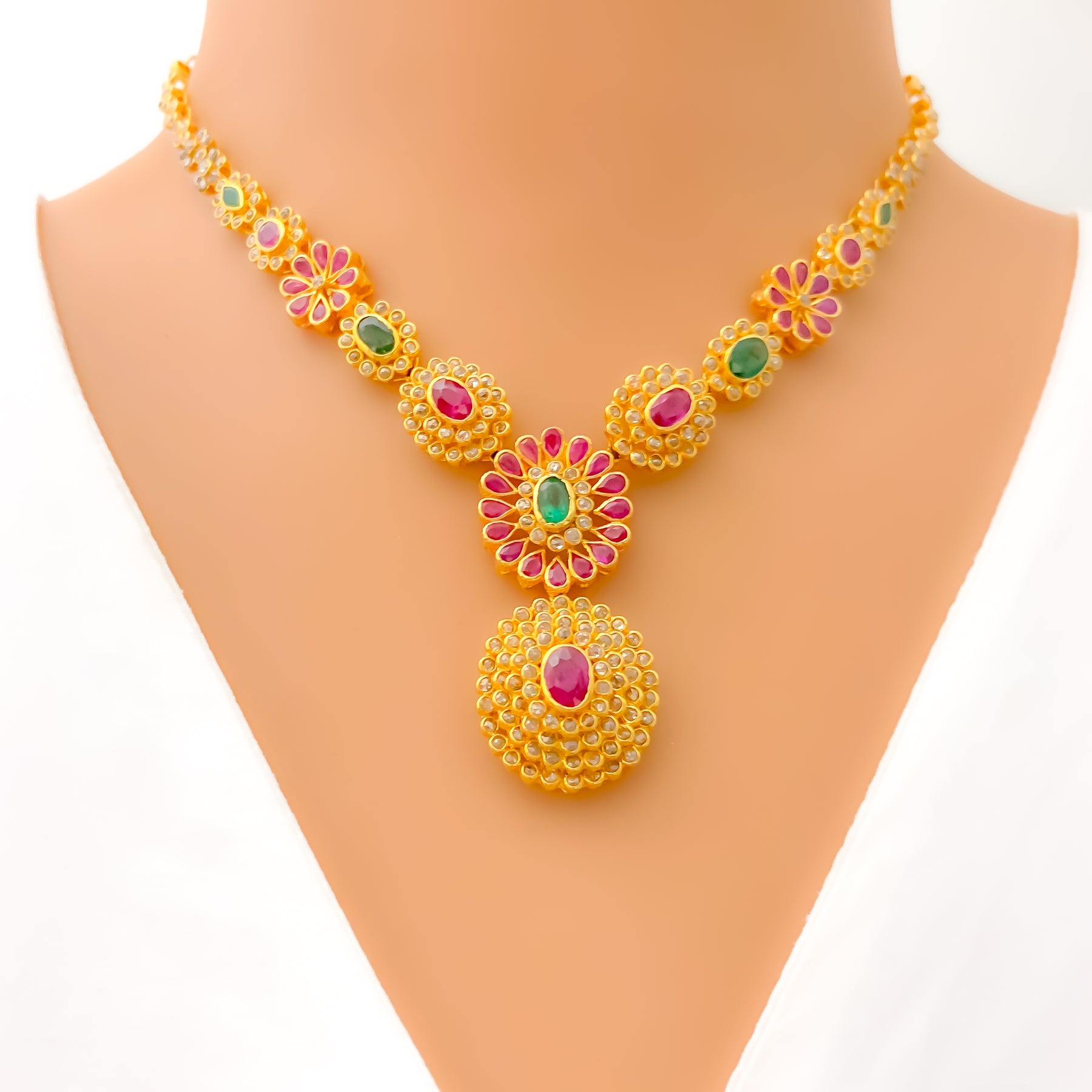 Captivating Iridescent Floral 22k Gold Polki Necklace Set