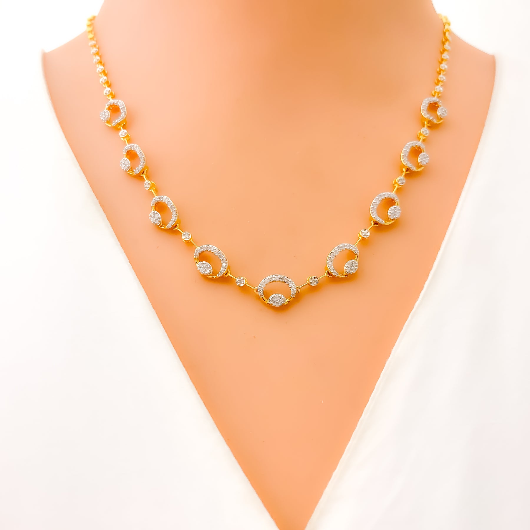 Crafted in radiant 18k yellow gold, this delicate necklace set showcases 1.27ct of round brilliant cut diamonds, prized for their VS clarity and G-H color. Intricate detailing throughout the piece adds texture and dimension, creating an ornate yet wearable statement. The 18" chain is finished with a lobster lock and 2" of adjustable links for versatile styling. Paired with coordinating 1.25" screw-back earrings and GGL certification, this set effortlessly merges fine artistry with elegant sparkle.