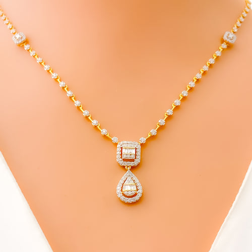 Elegant Triple Square Halo Diamond + 18k Gold Mangal Sutra