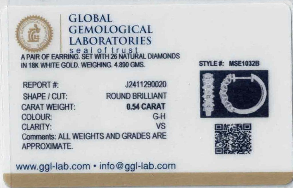 These luxurious Bali earrings shimmer with 0.54ct of round brilliant diamonds that illuminate their refined 0.6-inch silhouette with captivating sparkle. Crafted in white gold and weighing 4.89 grams, the design offers a polished balance of elegance and comfort suitable for both special occasions and elevated everyday wear. Their radiant profile brings graceful movement and glamorous brilliance that enhances modern and classic ensembles alike. Secured with a smooth push-lock mechanism, they serve as a timeless and sophisticated addition to any thoughtfully curated fine-jewelry collection.