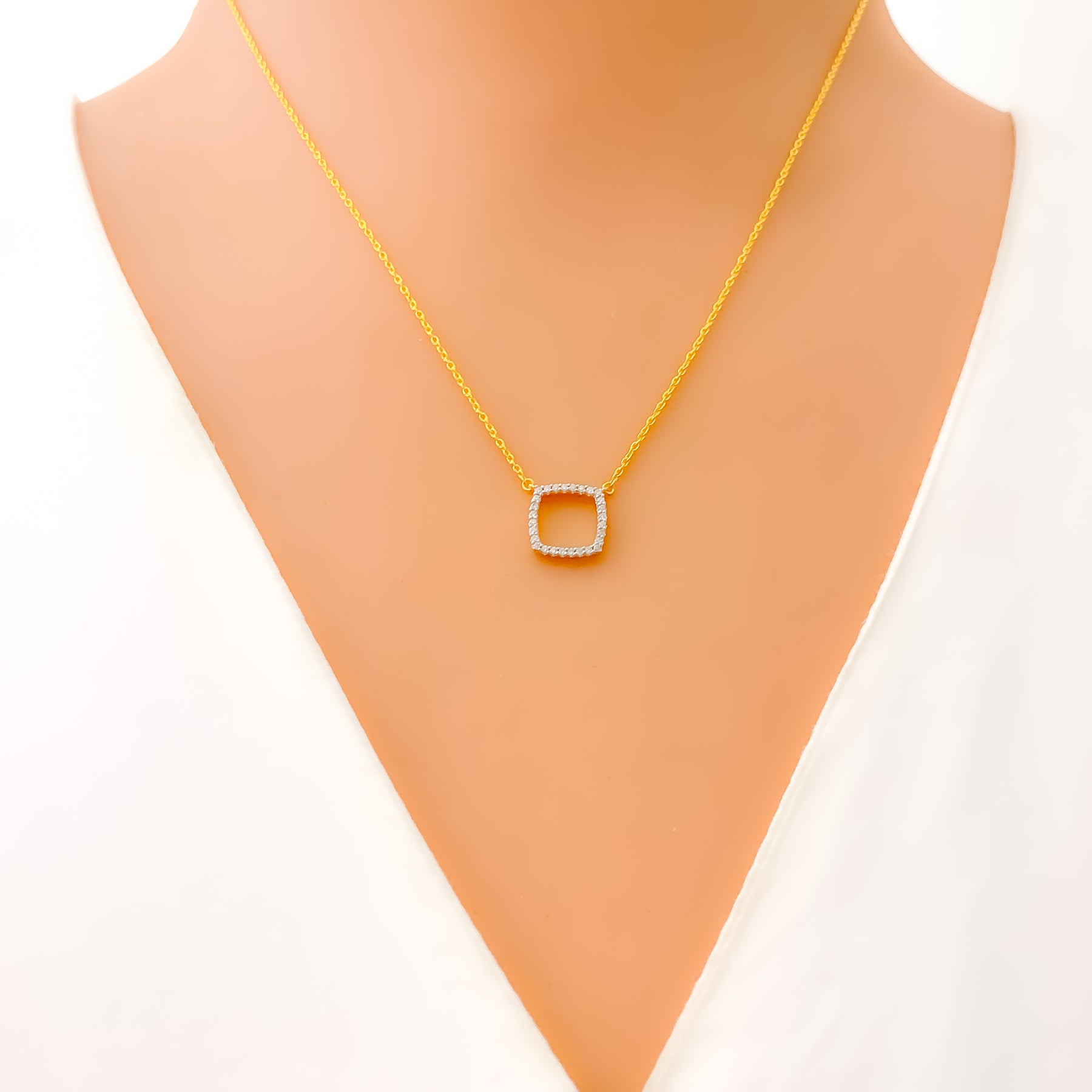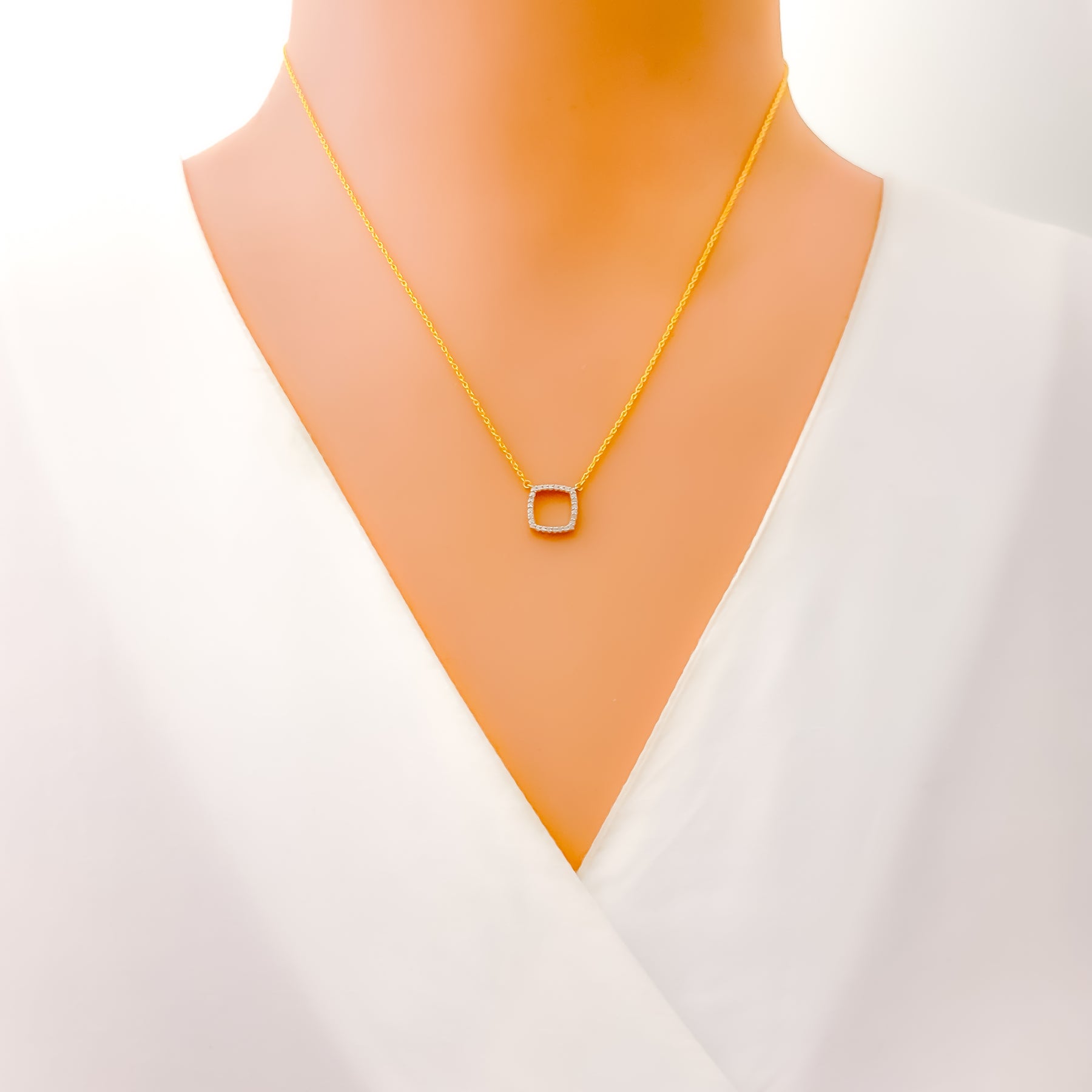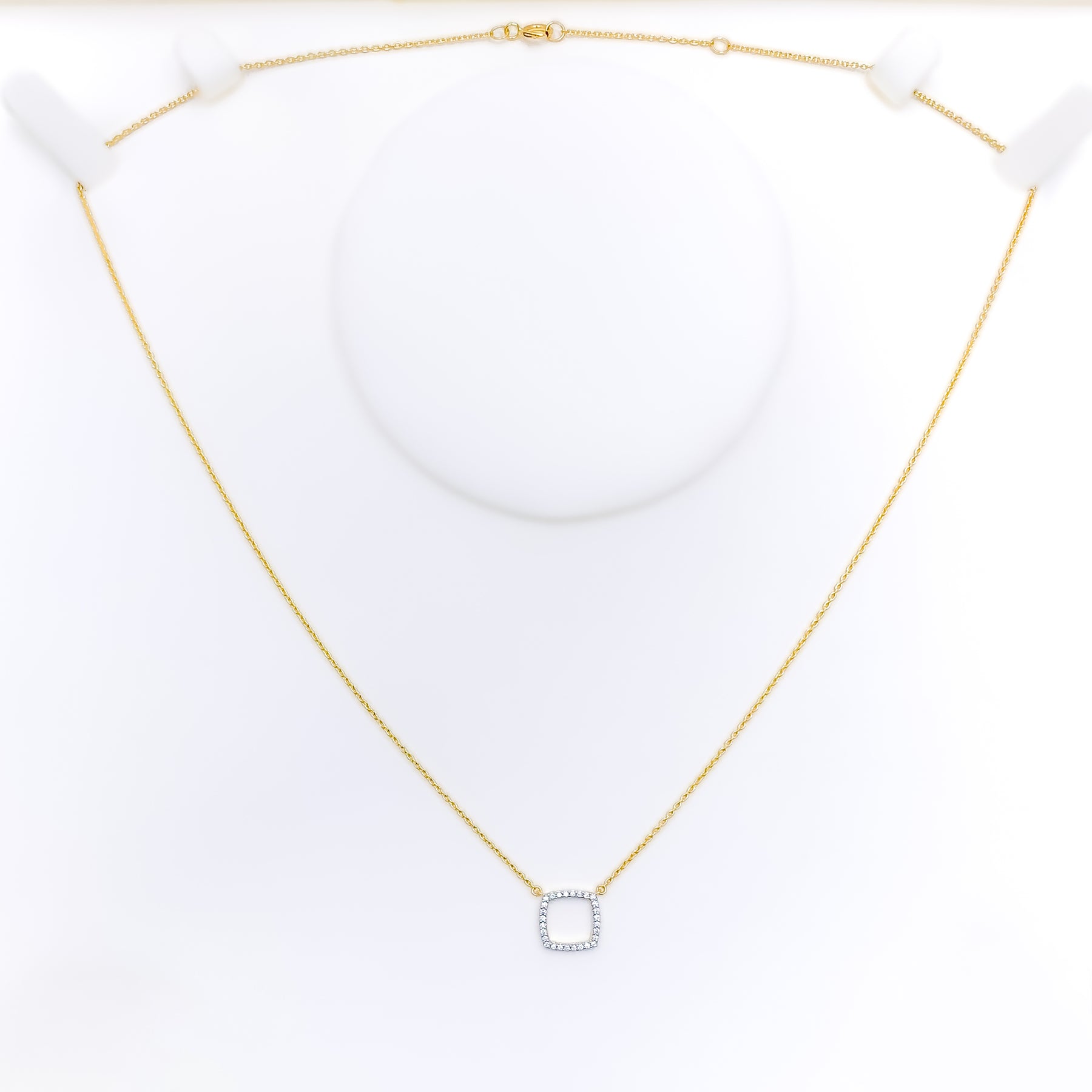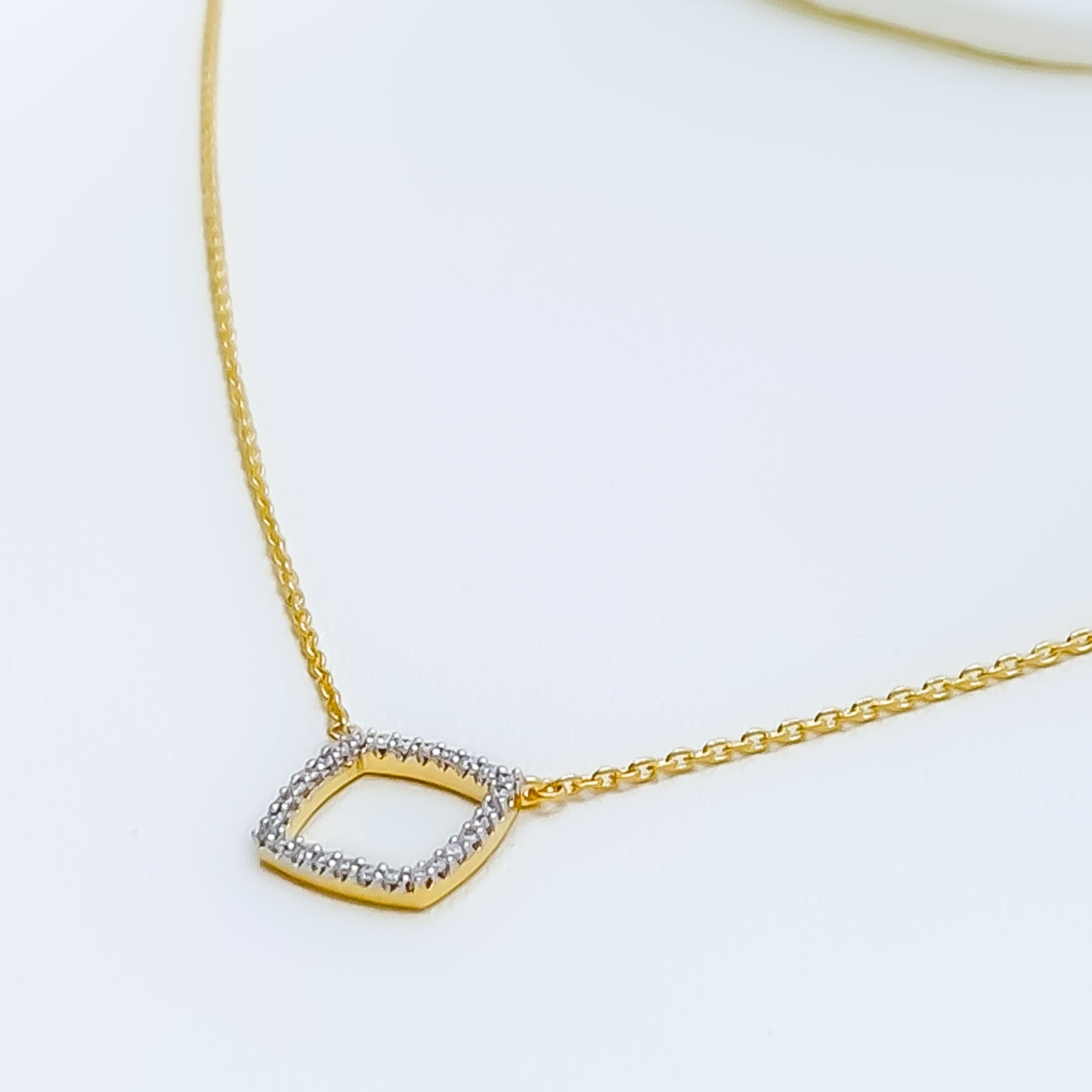 Classic and graceful, this 18k yellow gold necklace weighs 1.9 grams and features a refined pendant set with 0.09ct of round brilliant cut diamonds in G-H color and VS clarity. The 17-inch chain includes 2 inches of adjustable links for a perfect fit and secures with a lobster ring lock. A subtle 0.3-inch drop adds just the right touch of elegance. GGL-certified, this necklace is ideal for those who appreciate understated luxury and enduring style in a versatile, everyday design.