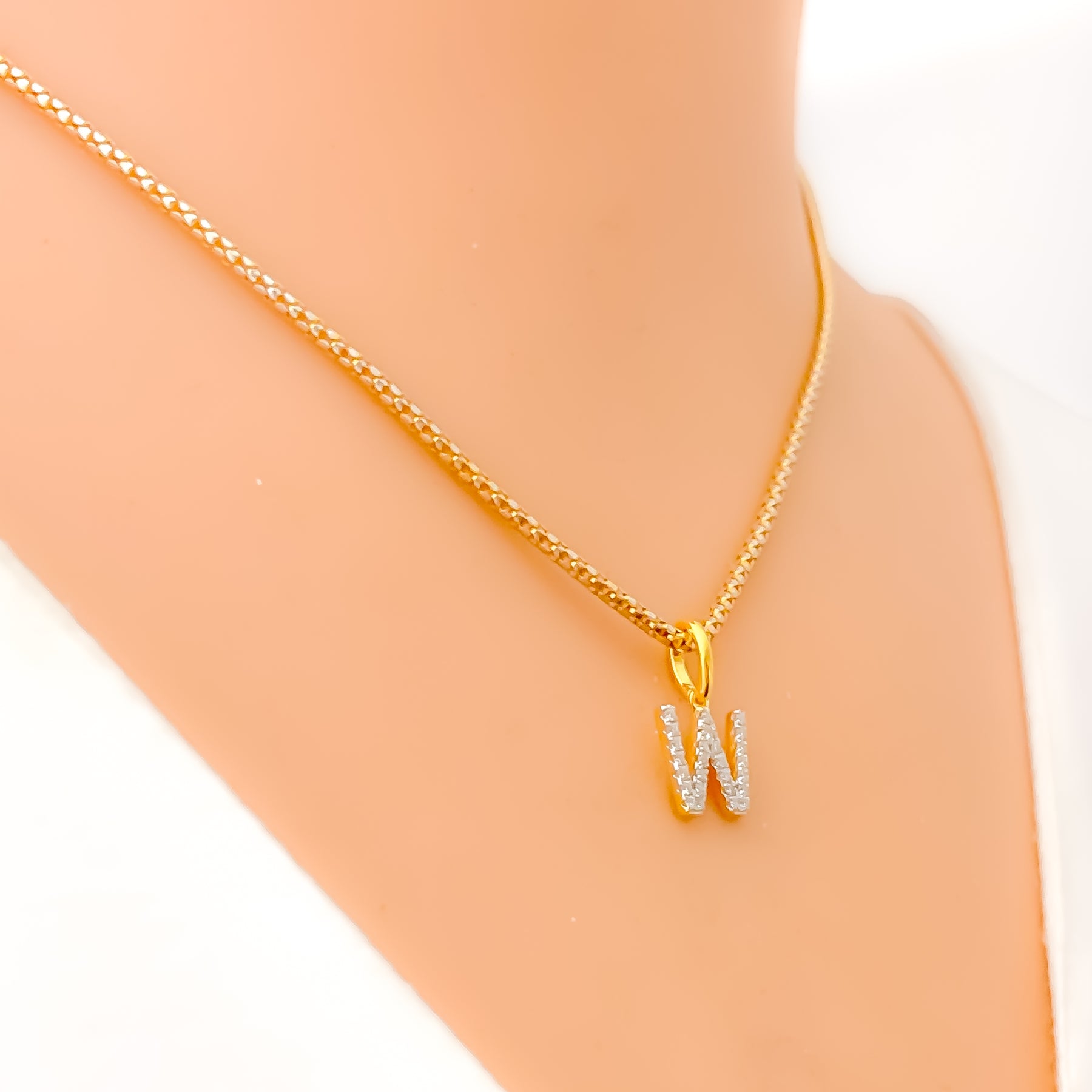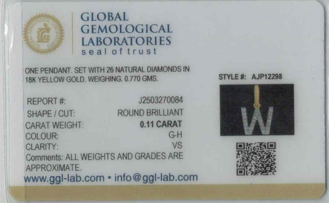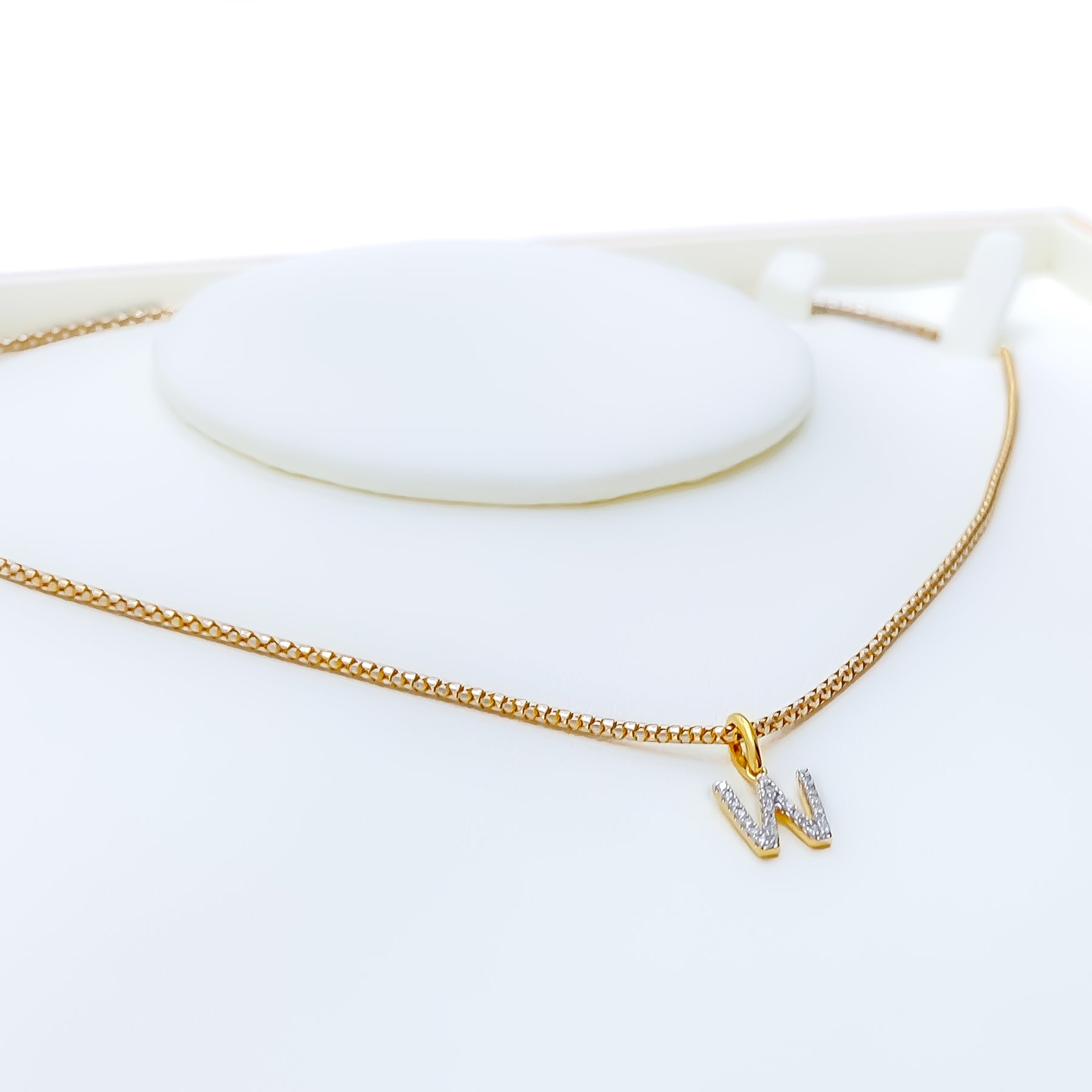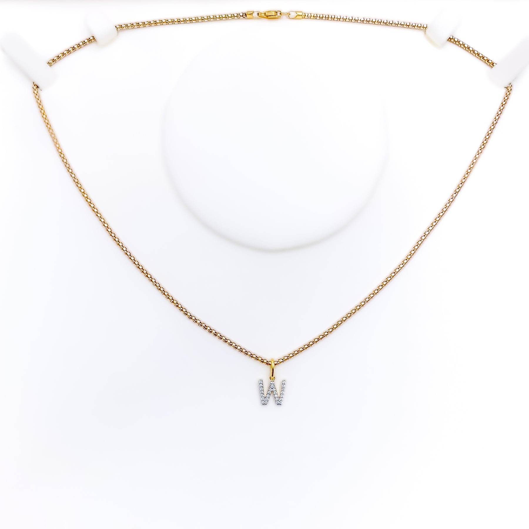 Bold and refined, this 18k yellow gold pendant showcases the letter W set with a dazzling 0.11ct VS-quality diamond for standout brilliance. Weighing 0.77 grams and measuring 0.6 inches in length, it offers a striking yet elegant expression of personalized luxury. The radiant gold finish enhances its timeless charm. Chain not included, and it is GGL certified for trusted quality and authenticity.