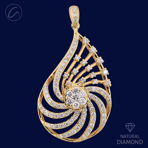 Stylish Brilliant Tree Drop 18k Gold + Diamond Pendant Set