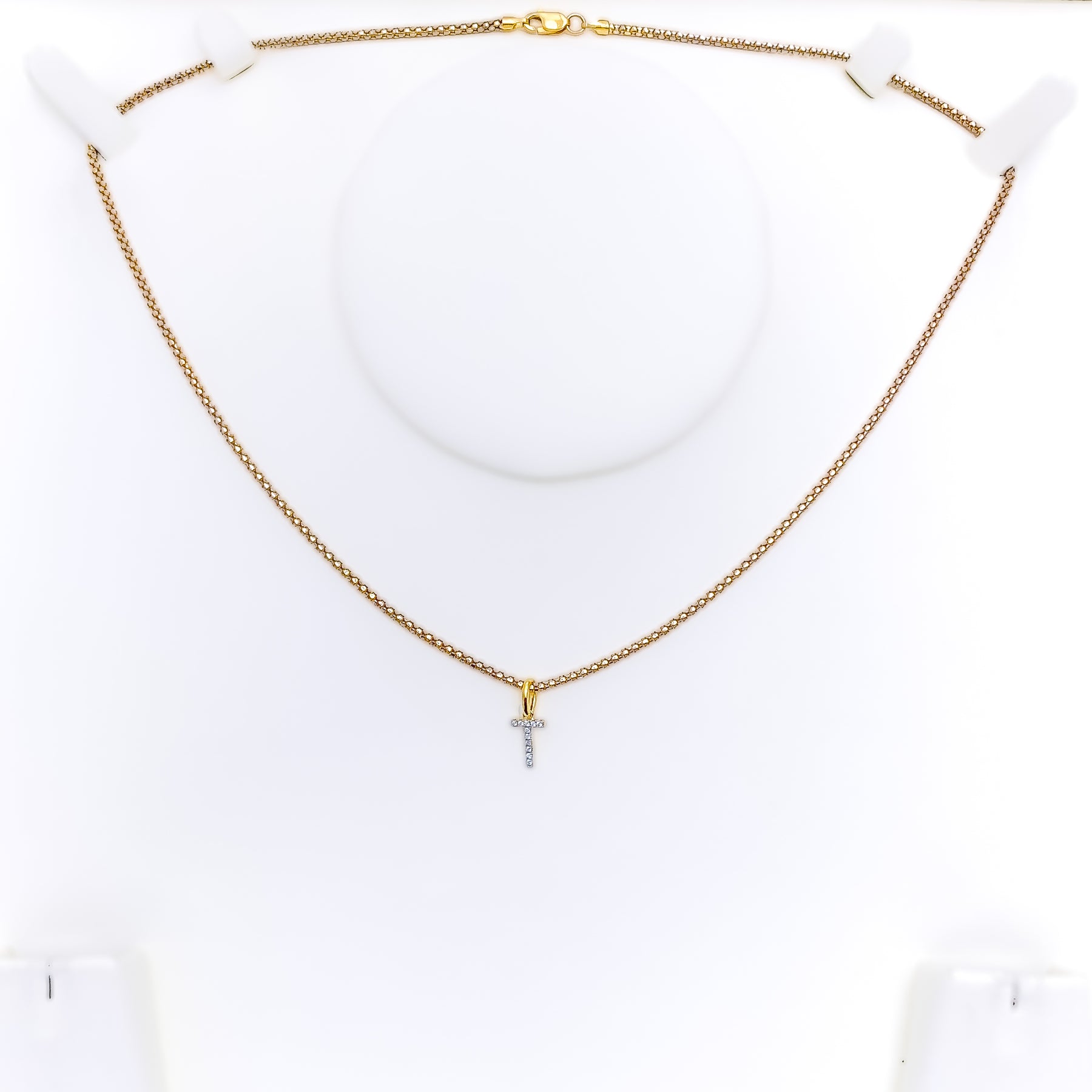 Elegant and personal, this 18k yellow gold pendant features the letter T adorned with a sparkling 0.04ct VS-quality diamond. Weighing 0.46 grams and measuring 0.6 inches in length, it offers a refined touch of brilliance in a compact form. The polished gold finish enhances its classic appeal. Chain not included, and it is GGL certified for verified quality and authenticity.