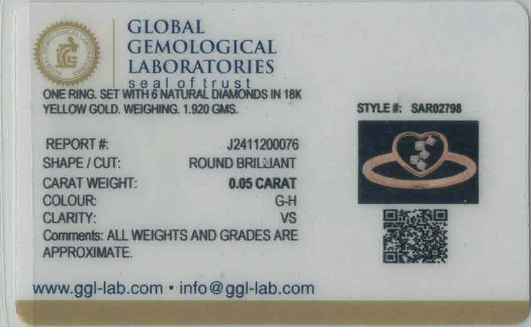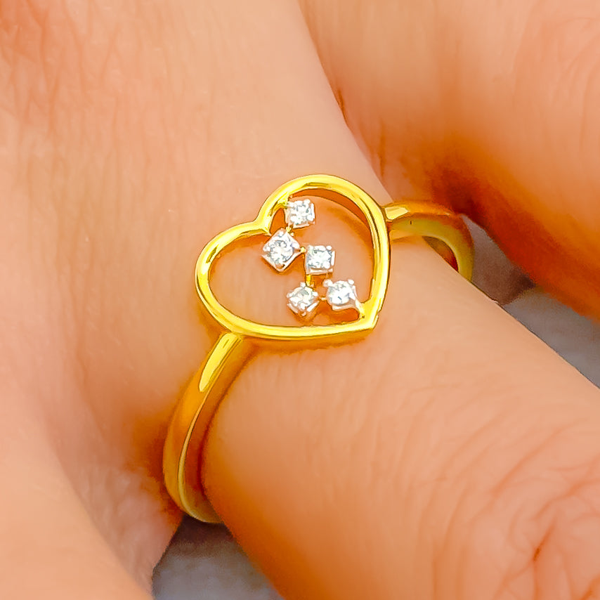 Merging subtle romance with modern finesse, this 18k yellow-gold ring showcases a dainty heart silhouette accented by a 0.05ct round brilliant diamond in refined G–H color and VS clarity for a soft yet captivating sparkle. Its 1.92-gram weight creates a lightweight, graceful feel that sits comfortably on the hand while maintaining an elevated presence. Sized at 7 with full re-sizing available, it provides flexibility for the perfect personalized fit. The smooth contemporary finish adds charm and versatility, making it an ideal everyday luxury piece with a touch of heartfelt elegance.