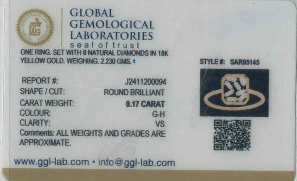 Fusing contemporary refinement with radiant allure, this 18k yellow-gold ring highlights a sleek 0.17ct baguette diamond arrangement in crisp G–H color and VS clarity for a beautifully elongated, luminous sparkle. Its 2.23-gram weight offers a smooth, balanced feel that enhances comfort while preserving a luxurious presence on the hand. Designed in size 7 with full re-sizing availability, it ensures an adaptable and personalized fit for long-term wear. A polished, modern silhouette elevates its charm, making it an effortlessly elegant addition to any fine-jewelry wardrobe.