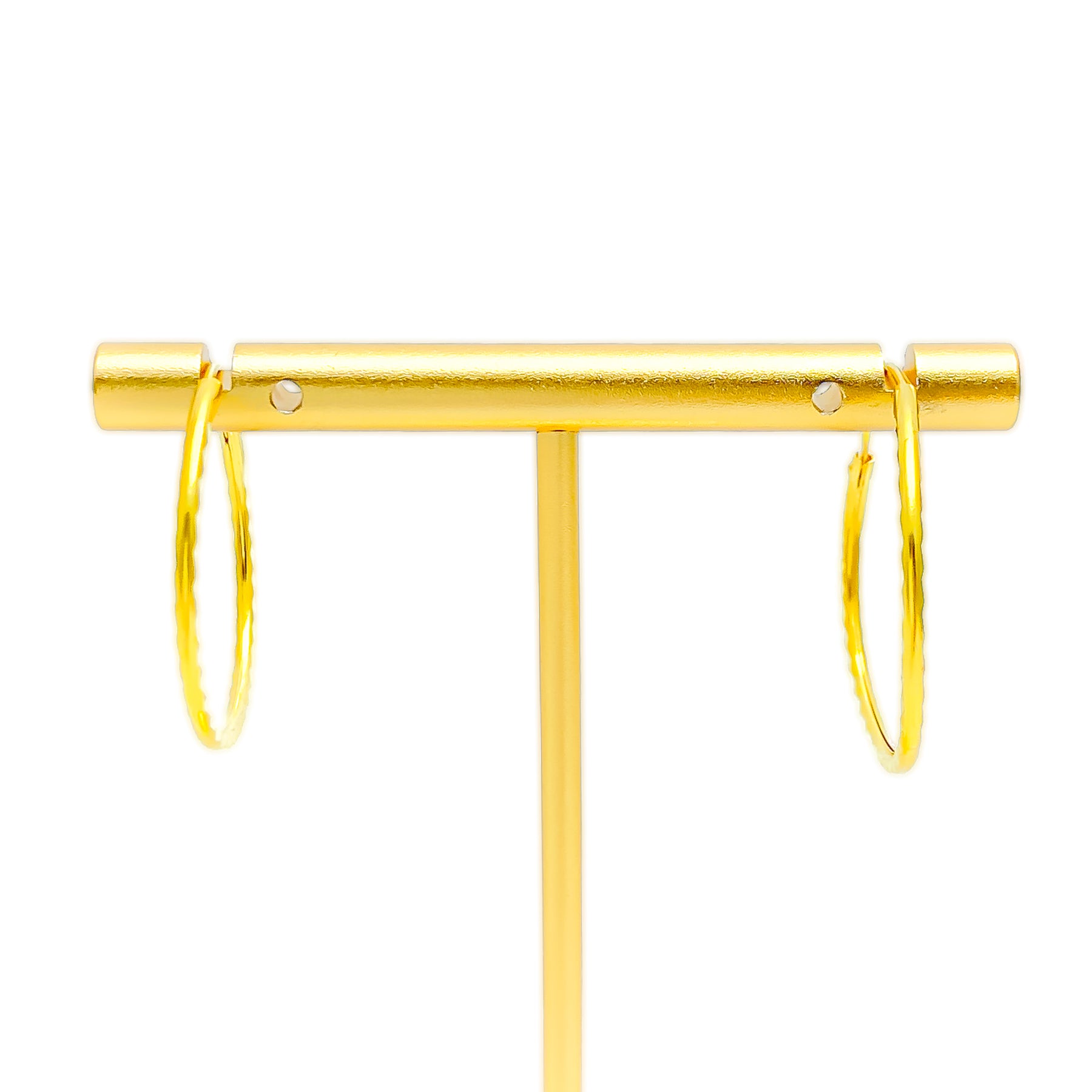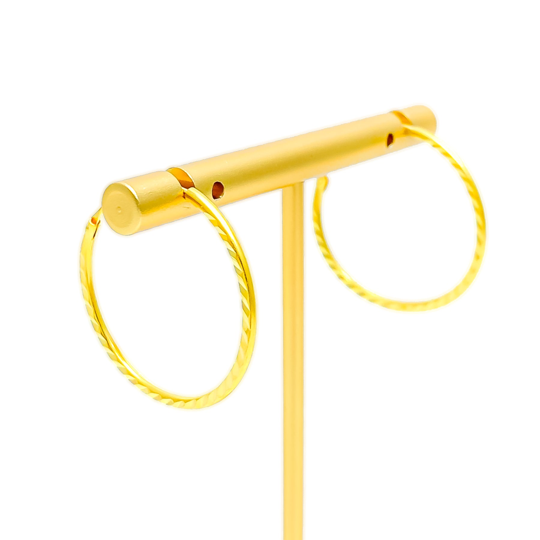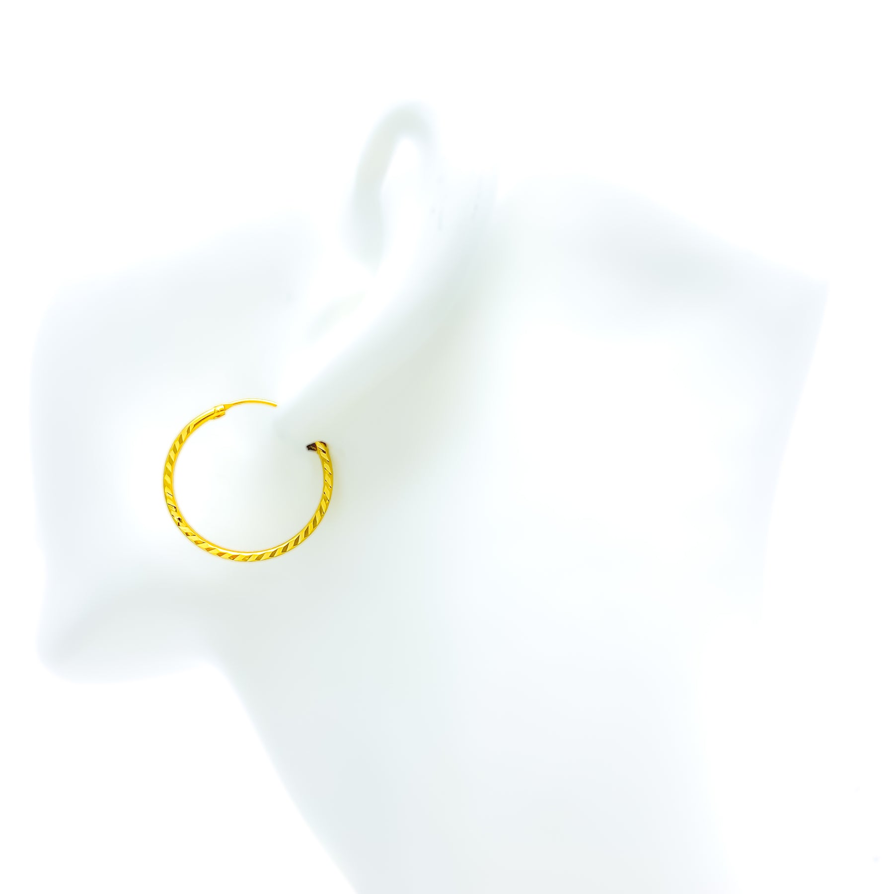 Timeless and refined, these 22k yellow gold hoop earrings weigh 2.0 grams and feature a 1" diameter with a smooth, polished finish. Their classic Bali-inspired design offers enduring elegance and lightweight comfort. A graceful staple meant to shine effortlessly across seasons and occasions.