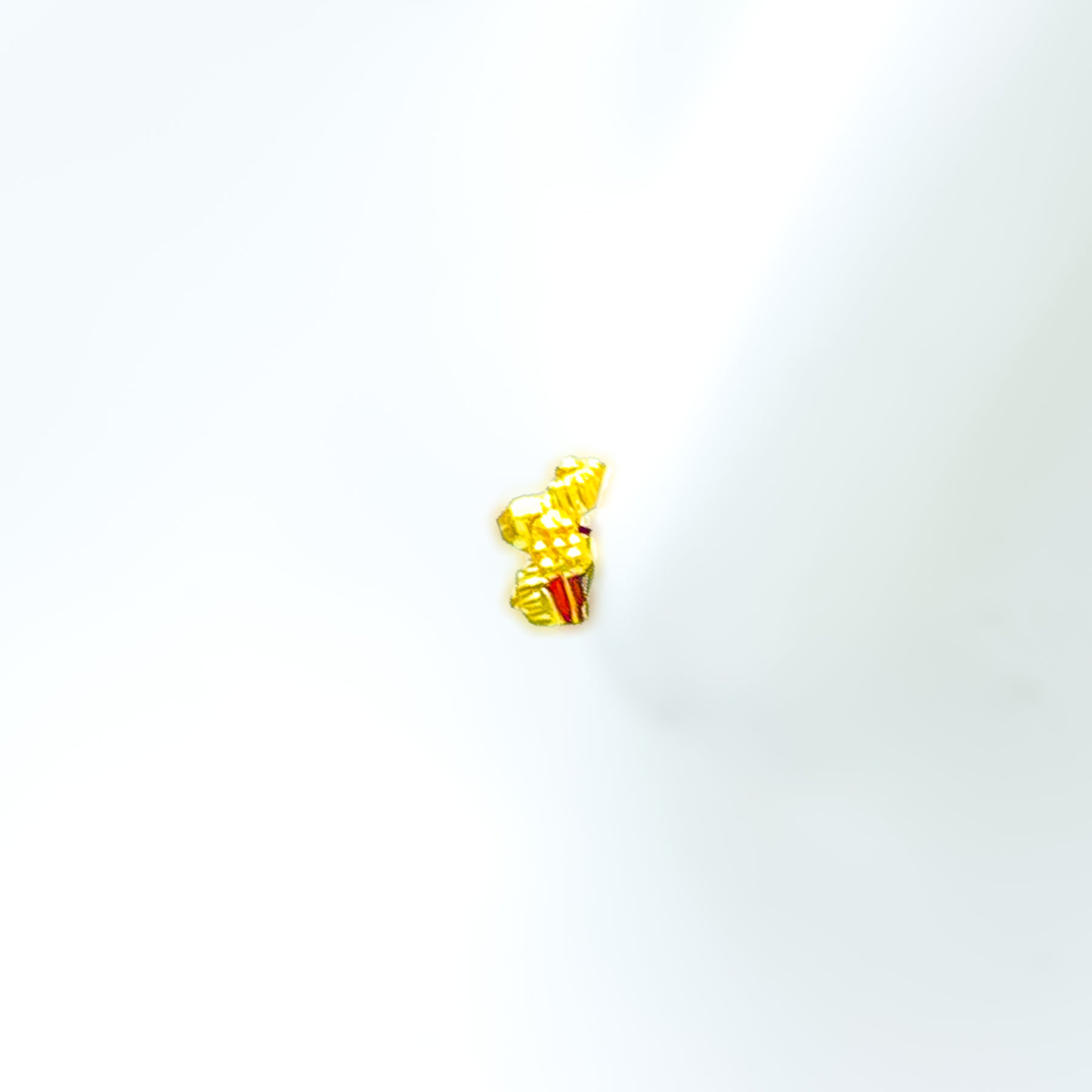 Bright and cheerful, these 22k yellow gold baby top earrings bring a vivid sparkle to a petite, elegant frame. Weighing 1.0 gram and measuring 0.2 inches in diameter, they offer a playful touch with a polished finish. Their lively design adds charm without overwhelming the look. Secured with a screw back, they’re perfect for daily wear with a dash of flair.