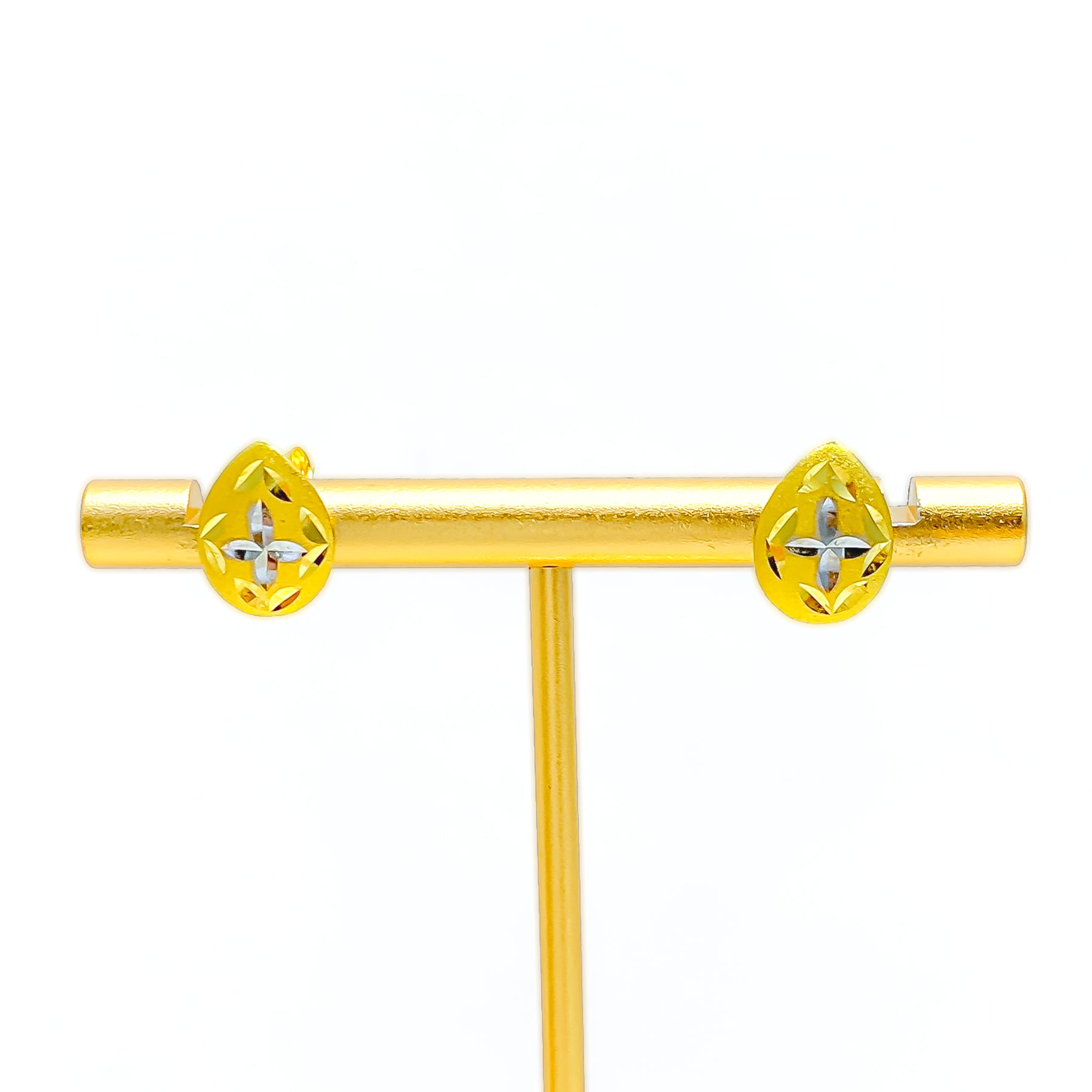 Radiating charm, these elegant tops are crafted in rich 22k yellow gold for a luminous, luxurious finish. Their petite yet eye-catching design makes them a versatile choice for both casual and special occasions. The smooth polish adds an ethereal glow that enhances any ensemble. Secured with push back posts, they promise comfort and ease for all-day wear.