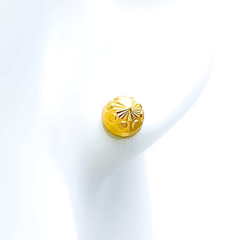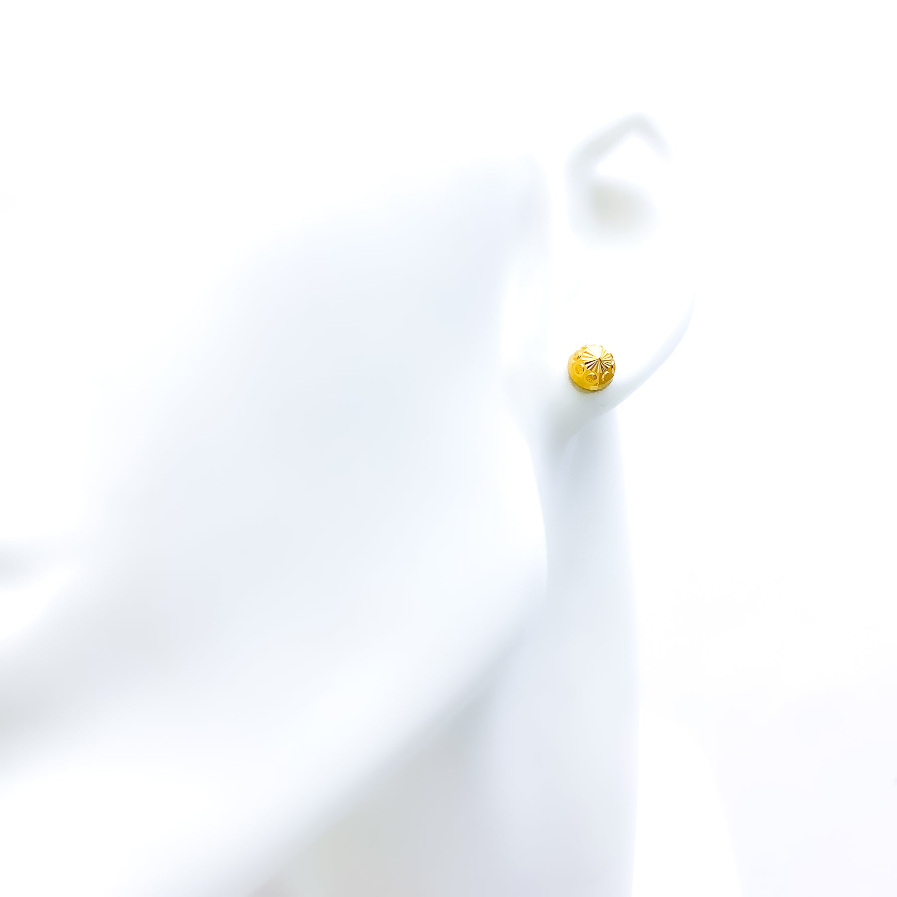 These radiant top earrings highlight a luminous yellow gold finish that brightens their petite 0.25-inch silhouette with eye-catching clarity. Weighing 1.9 grams, the design offers a feather-light feel while still providing a polished presence suited for everyday elegance. Their vivid character adds a touch of modern charm that enhances both simple outfits and more refined ensembles with effortless ease. Completed with secure screw backs, they bring a timeless and versatile accent to any thoughtfully curated jewelry collection.