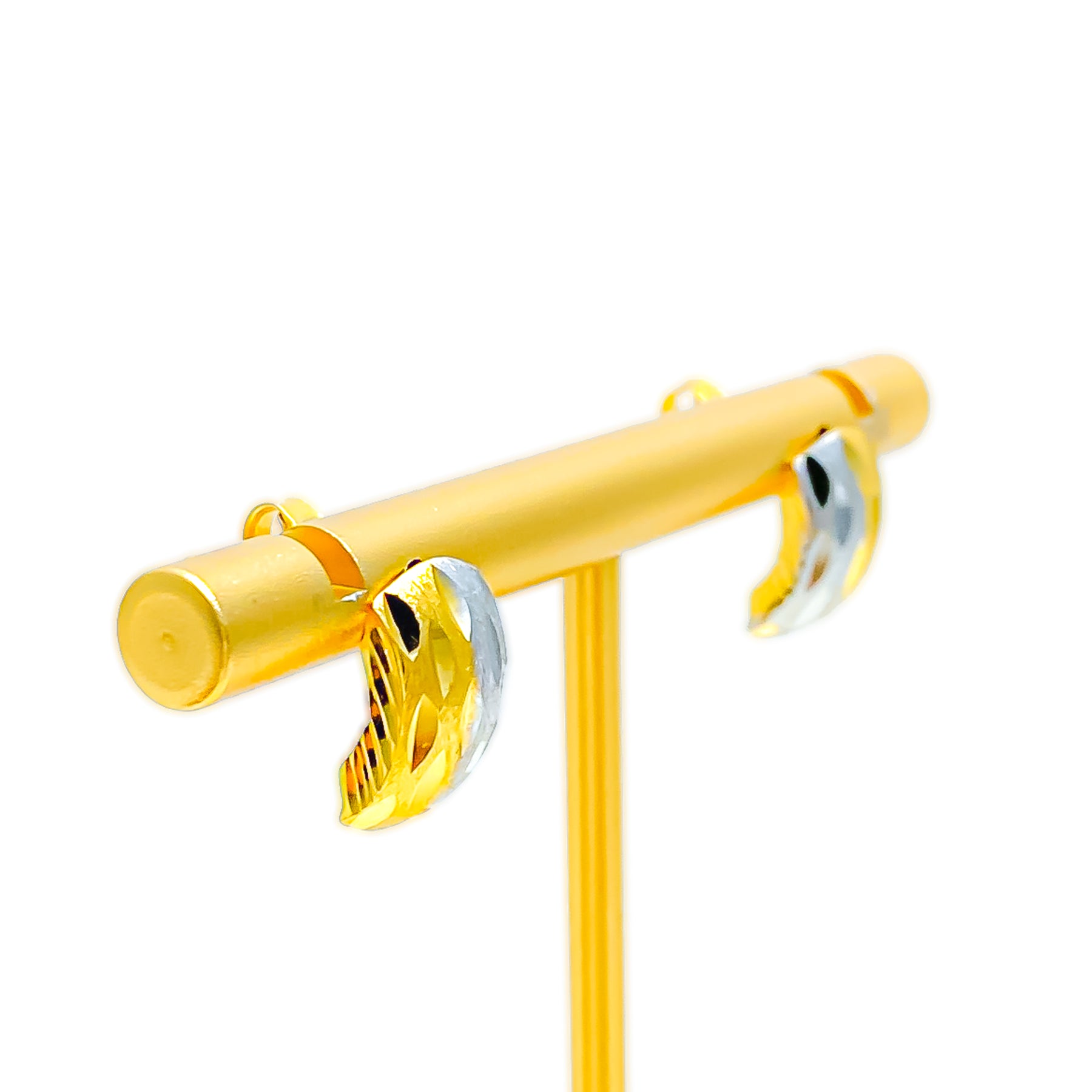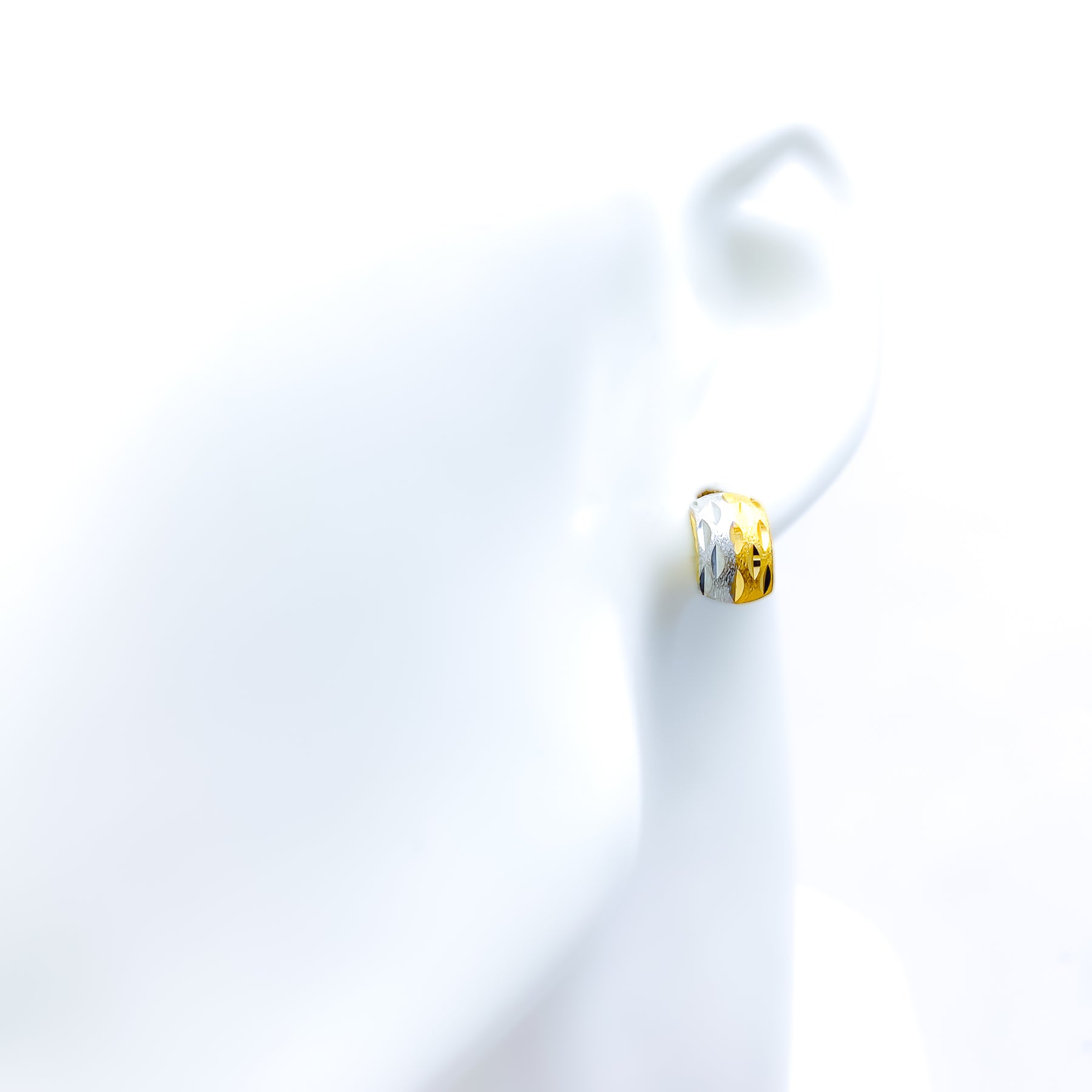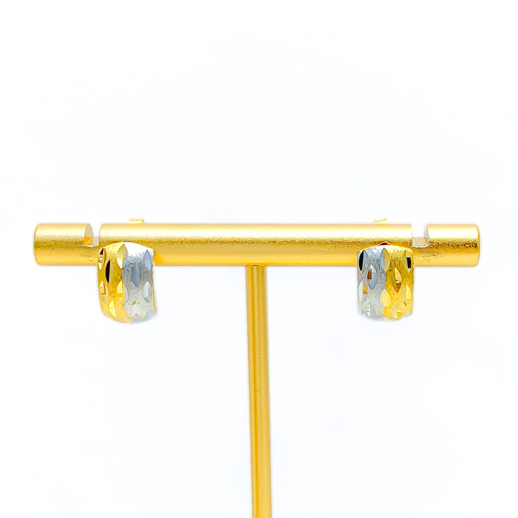 Infused with vibrant charm, these 22k yellow gold top earrings showcase a captivating multi-color design. Their petite size offers a subtle yet stylish accent perfect for everyday wear. The push-back closure ensures a comfortable and secure fit. A delightful choice for adding a pop of elegance to any outfit.