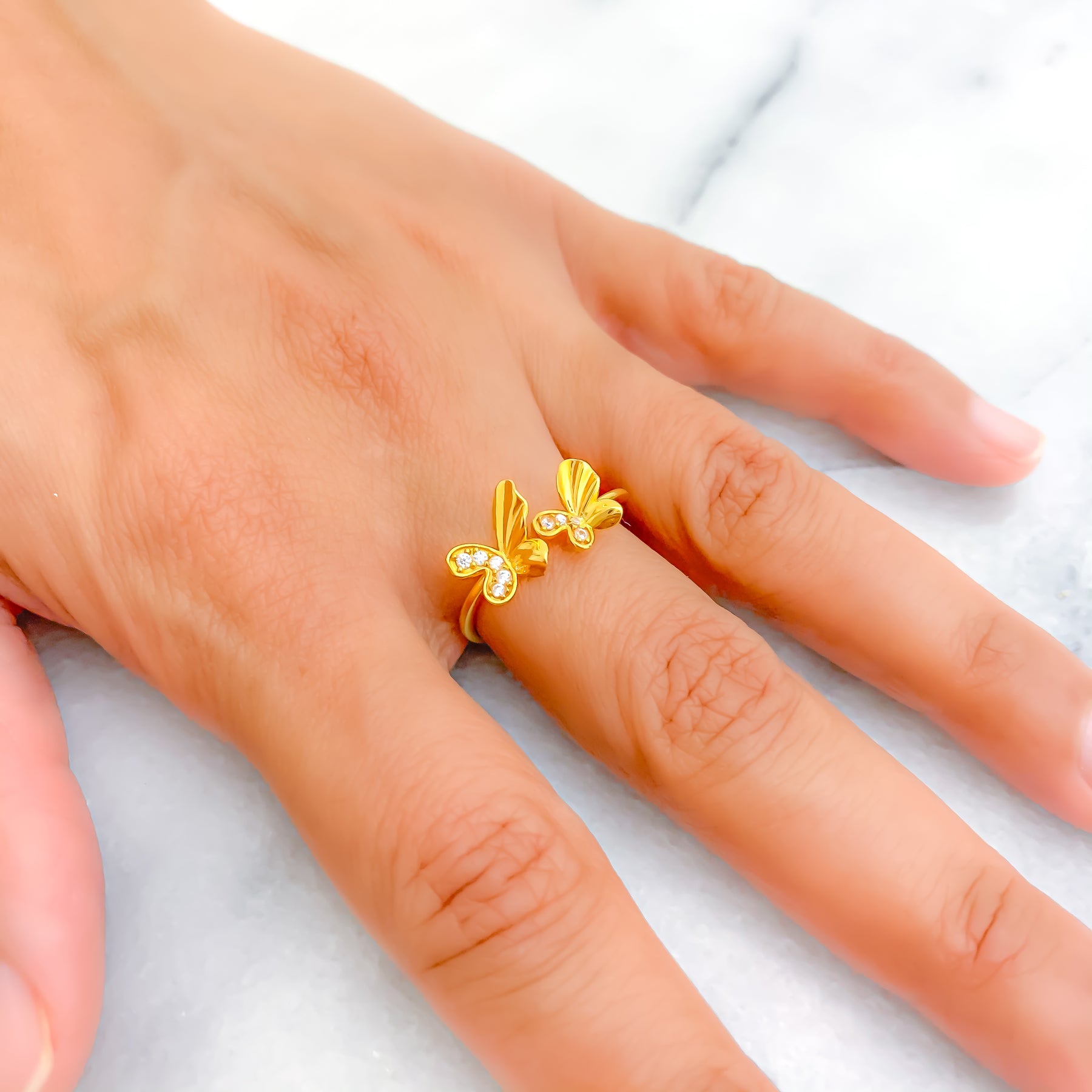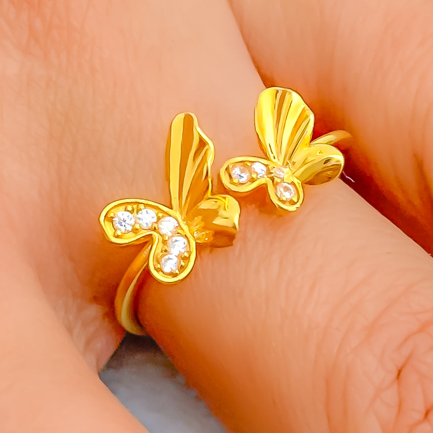 Delicately styled, this graceful ring features softly shimmering cubic zirconia set in warm 21k yellow gold for an elegant glow. Weighing 1.8 grams, it offers an airy, lightweight feel that’s perfect for everyday wear. The refined silhouette adds subtle sparkle without overpowering your look. Designed in size 8.25 with resizing available, it ensures a comfortable, personalized fit.