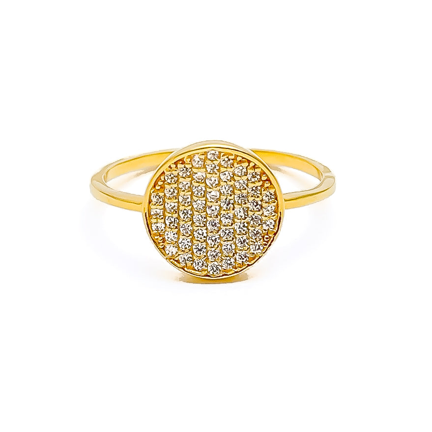 Radiating refined elegance, this polished ring highlights luminous cubic zirconia set against warm 21k yellow gold for a graceful sparkle. Weighing 2.3 grams, it offers a lightweight yet noticeable presence ideal for everyday sophistication. The smooth silhouette enhances its modern charm while maintaining timeless appeal. Sized at 7.5 with resizing available, it ensures a comfortable, personalized fit for versatile styling.