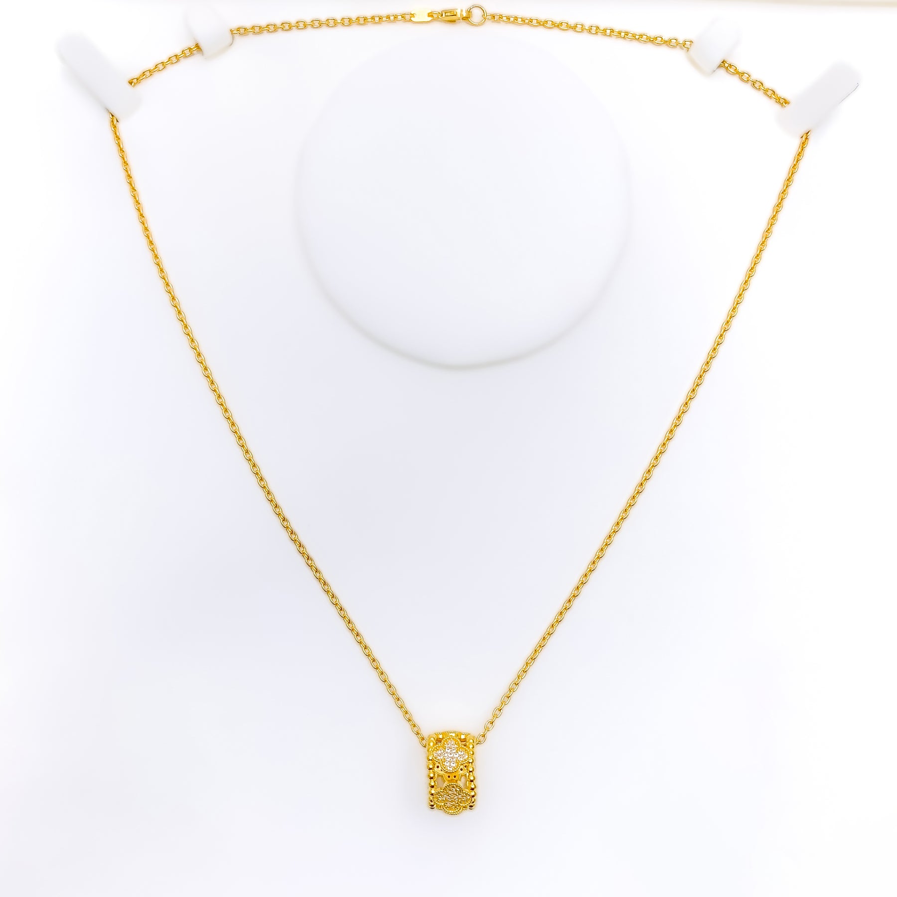Dazzling Elegant Floral 21k Gold CZ Necklace