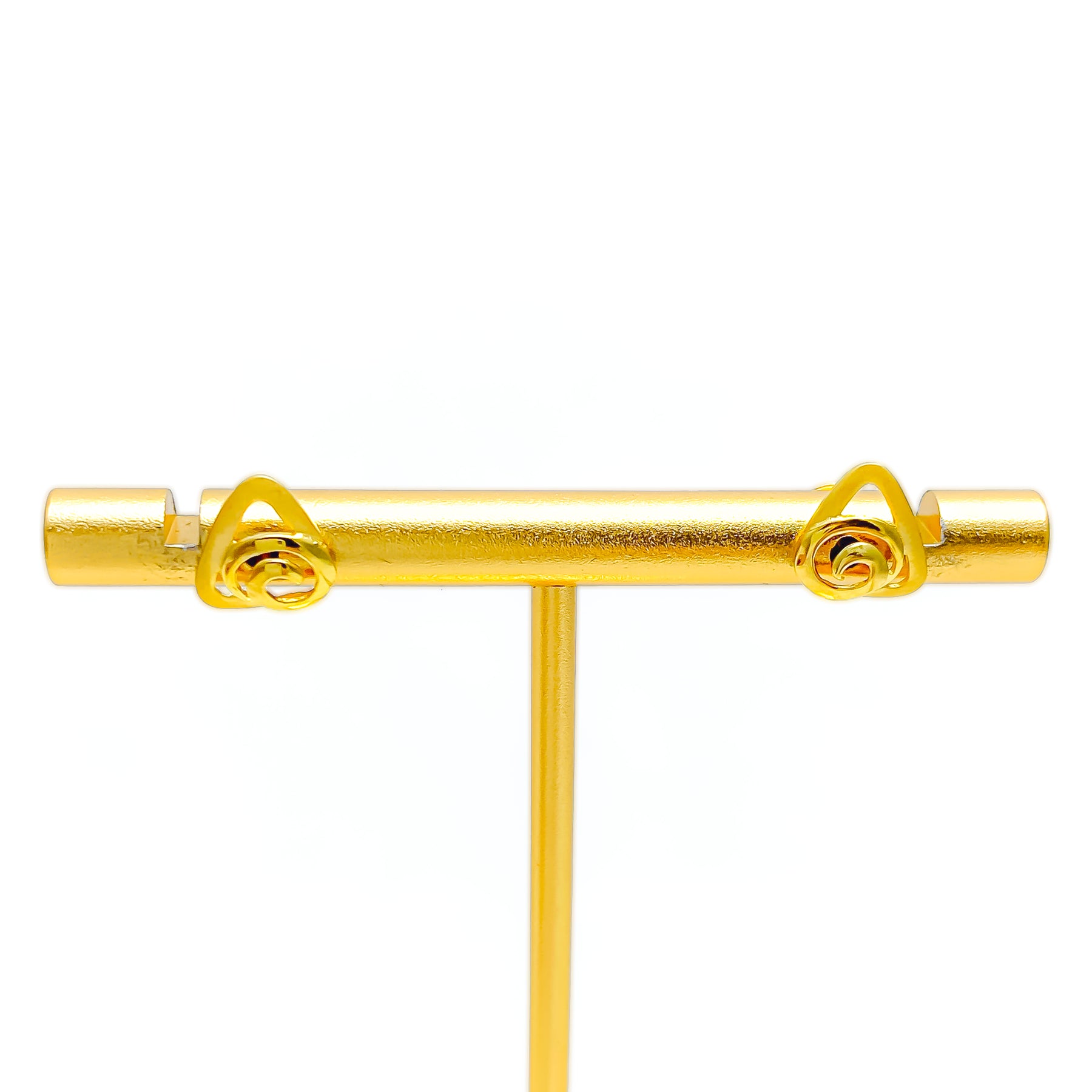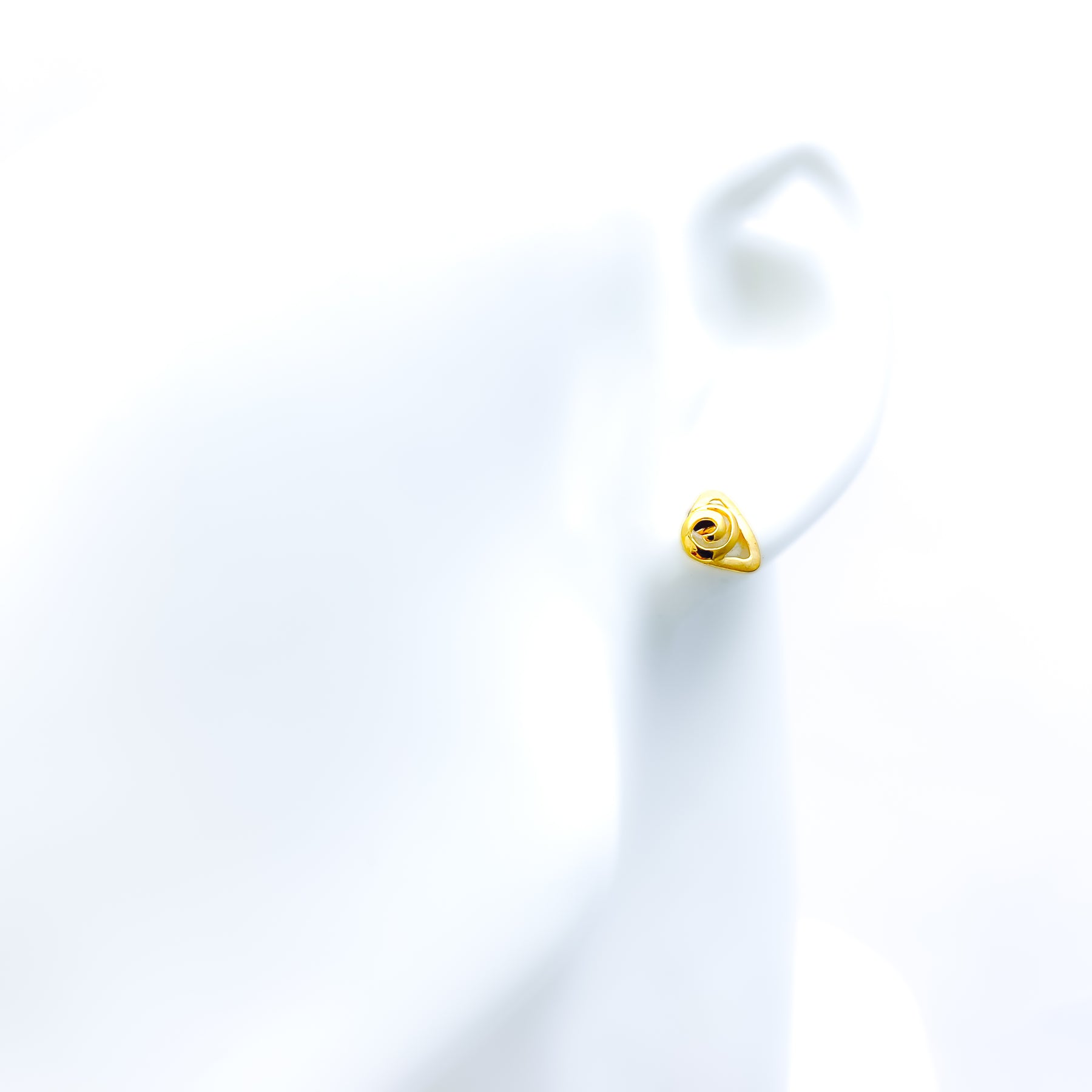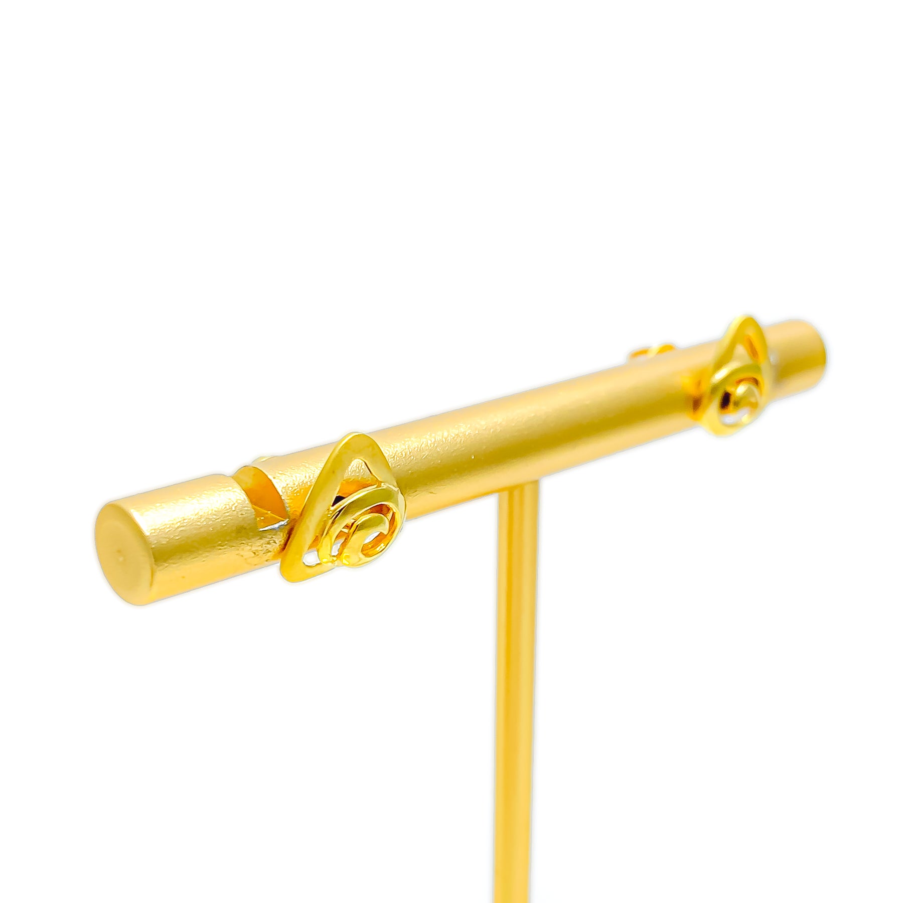 Artfully crafted, these 22k gold earrings feature a modern abstract design that radiates refined charm. Weighing 1.2 grams, their 0.3-inch form shines with a polished yellow gold finish. The minimalist silhouette adds subtle sophistication. Perfect for those who appreciate elegant, contemporary simplicity.