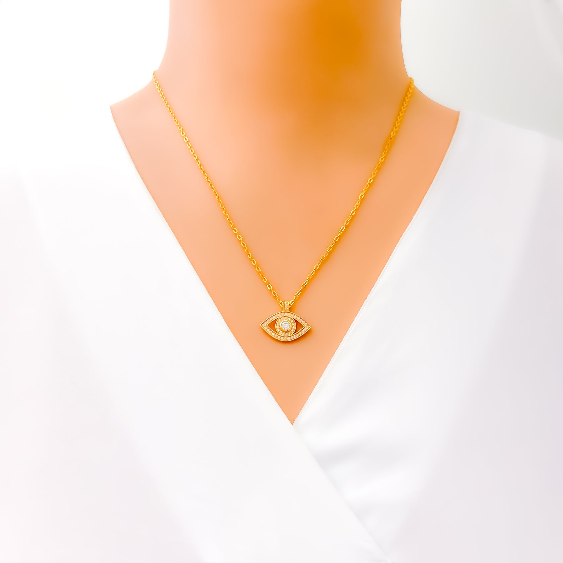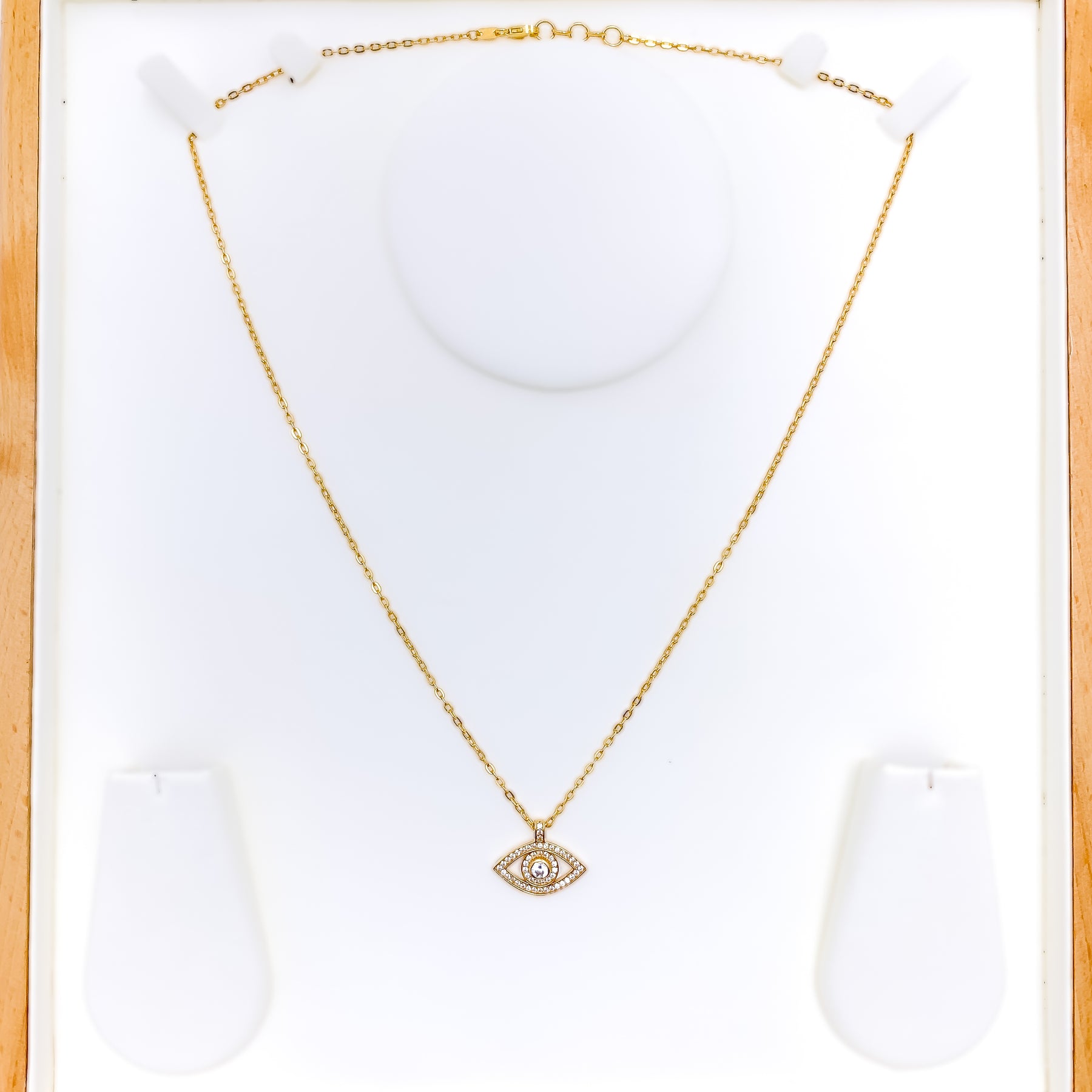 Extravagant Evil Eye 21k Gold CZ Necklace