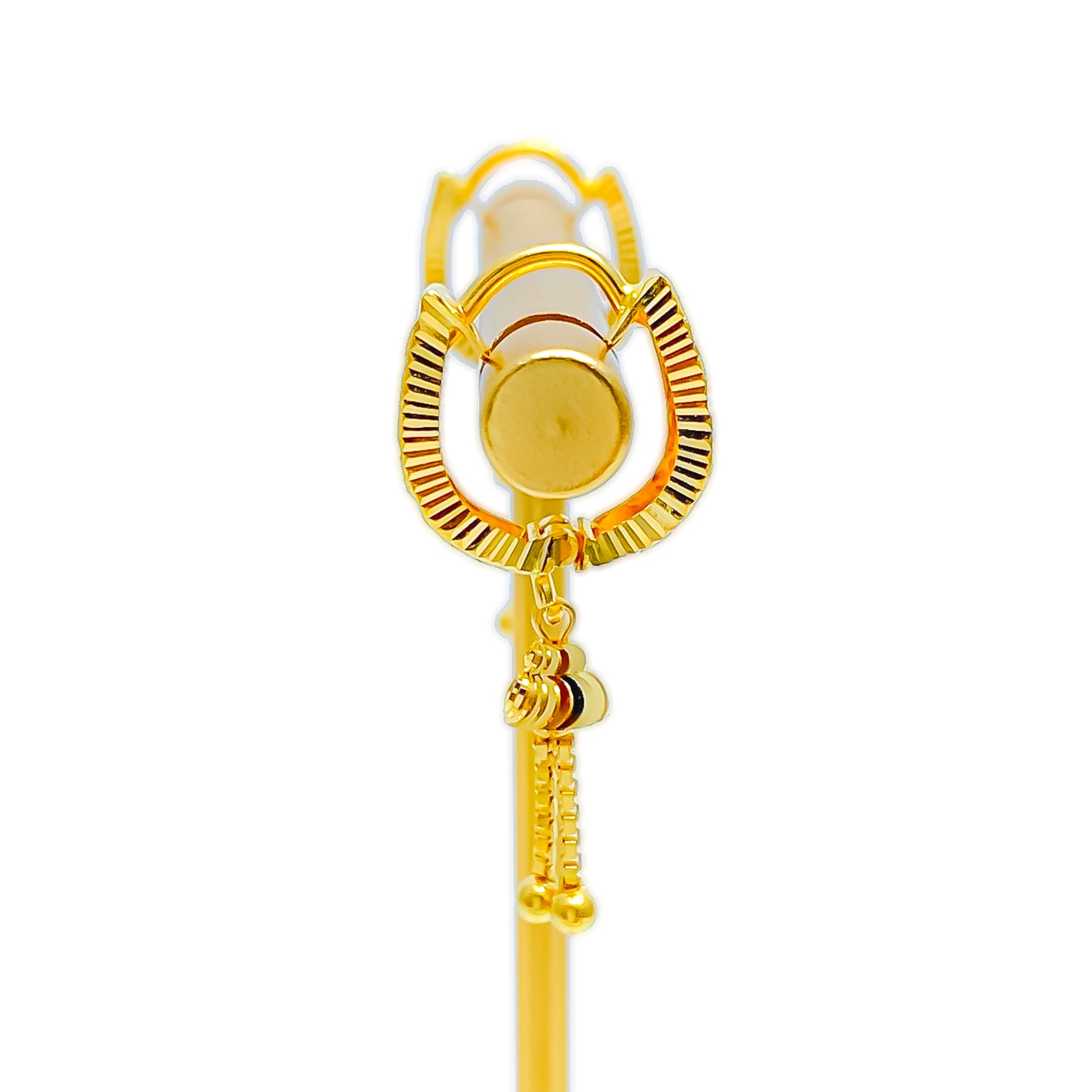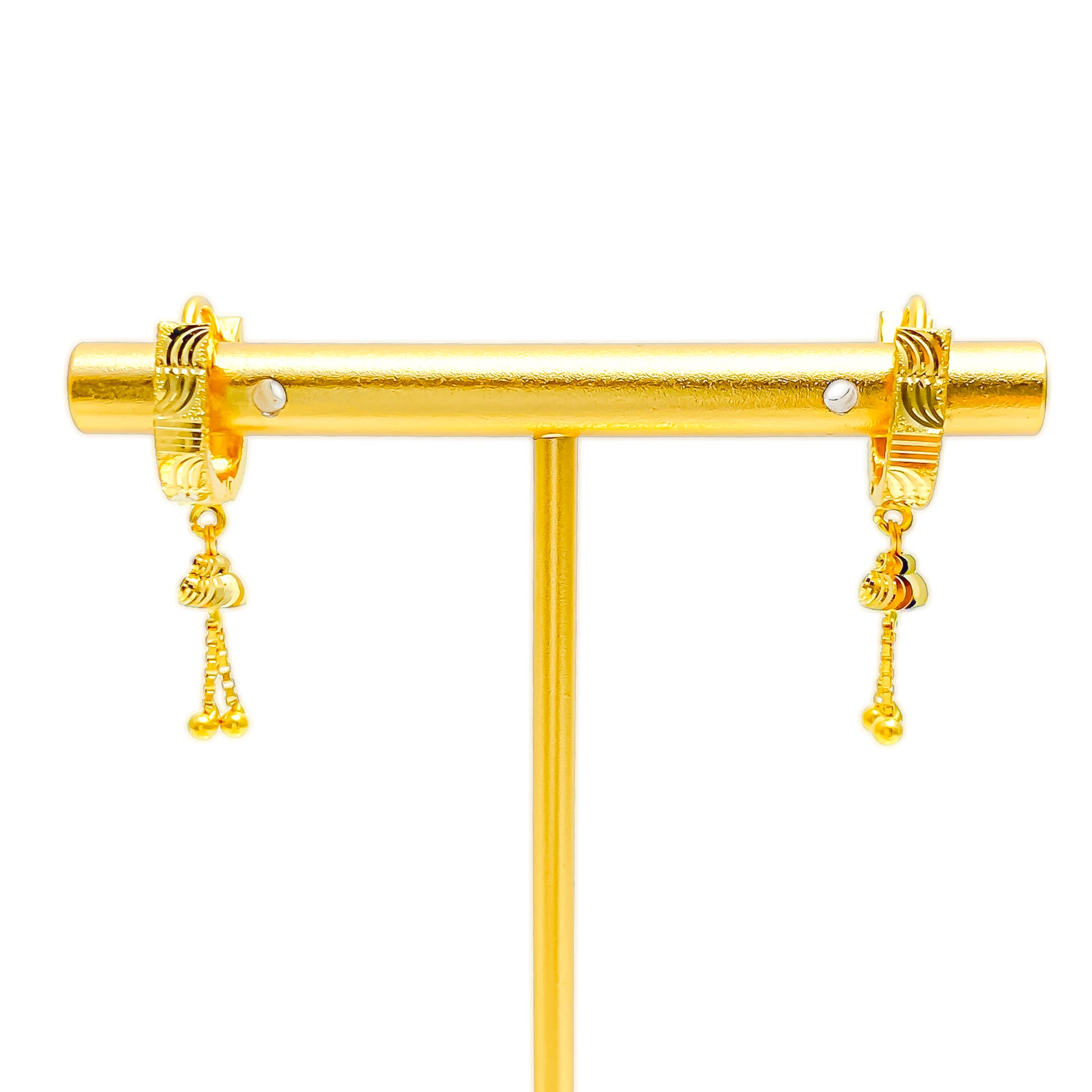 Radiating graceful allure, these glowing snug earrings bring a polished yellow-gold finish to a beautifully elongated 1.2" silhouette. Weighing 2.8 grams, they offer a comfortable yet noticeable presence ideal for daily elegance. The refined French clip closure adds security with effortless wear. Perfectly charming and versatile, they elevate every look with timeless 22k brilliance.