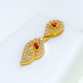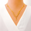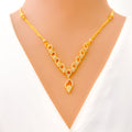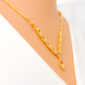 Radiating refined sparkle, this 22k gold necklace set weighs 15.8 grams and features a delicate arrangement of CZ stones that add enchanting brilliance. The 20-inch necklace includes a subtle 0.6-inch drop and 0.6-inch adjustable links, offering a tailored drape secured with a lobster lock. Coordinating 0.75-inch earrings with screw-back posts mirror the necklace’s graceful allure. Finished in glowing yellow gold, this charming set is perfect for those seeking a blend of timeless elegance and gentle shimmer for any special occasion.