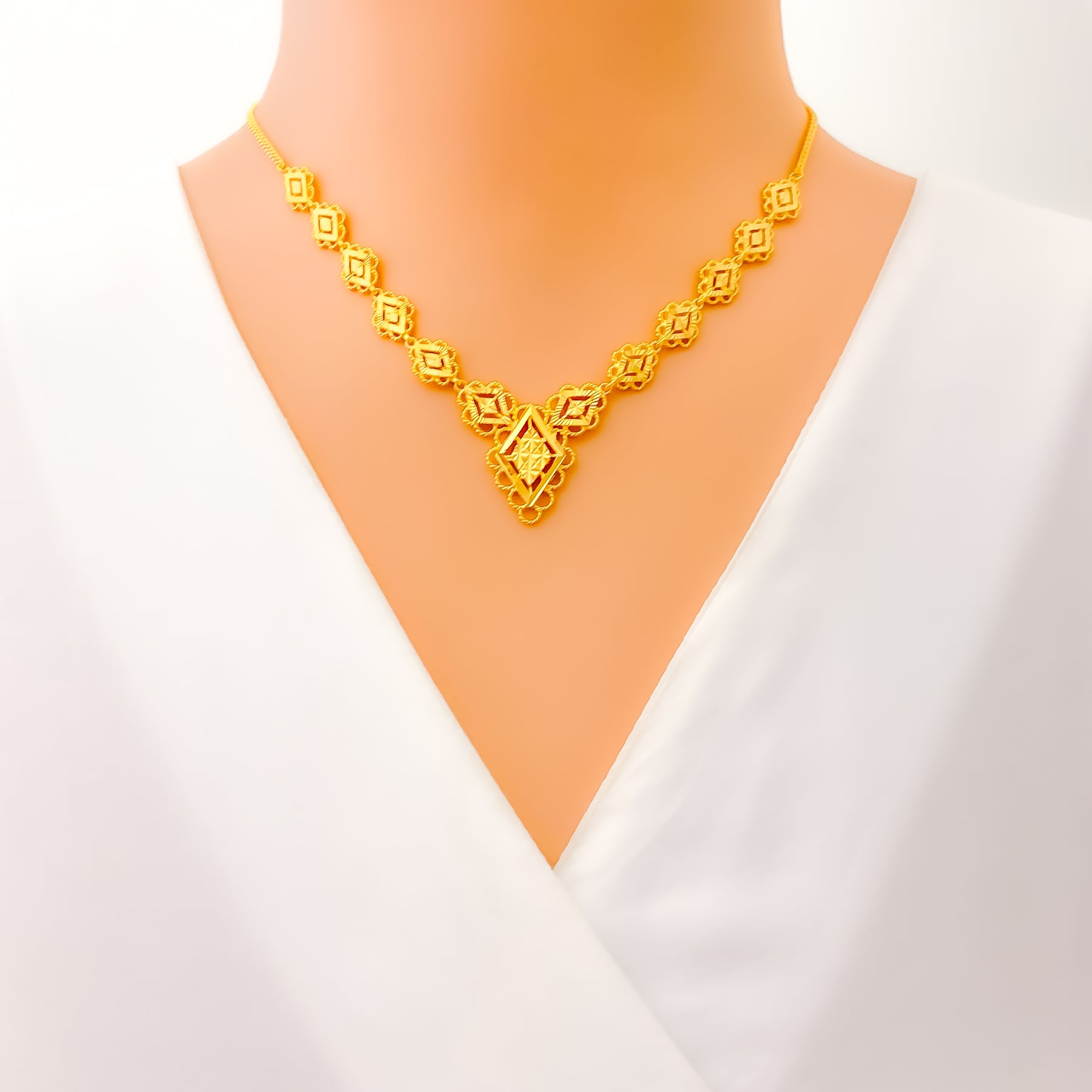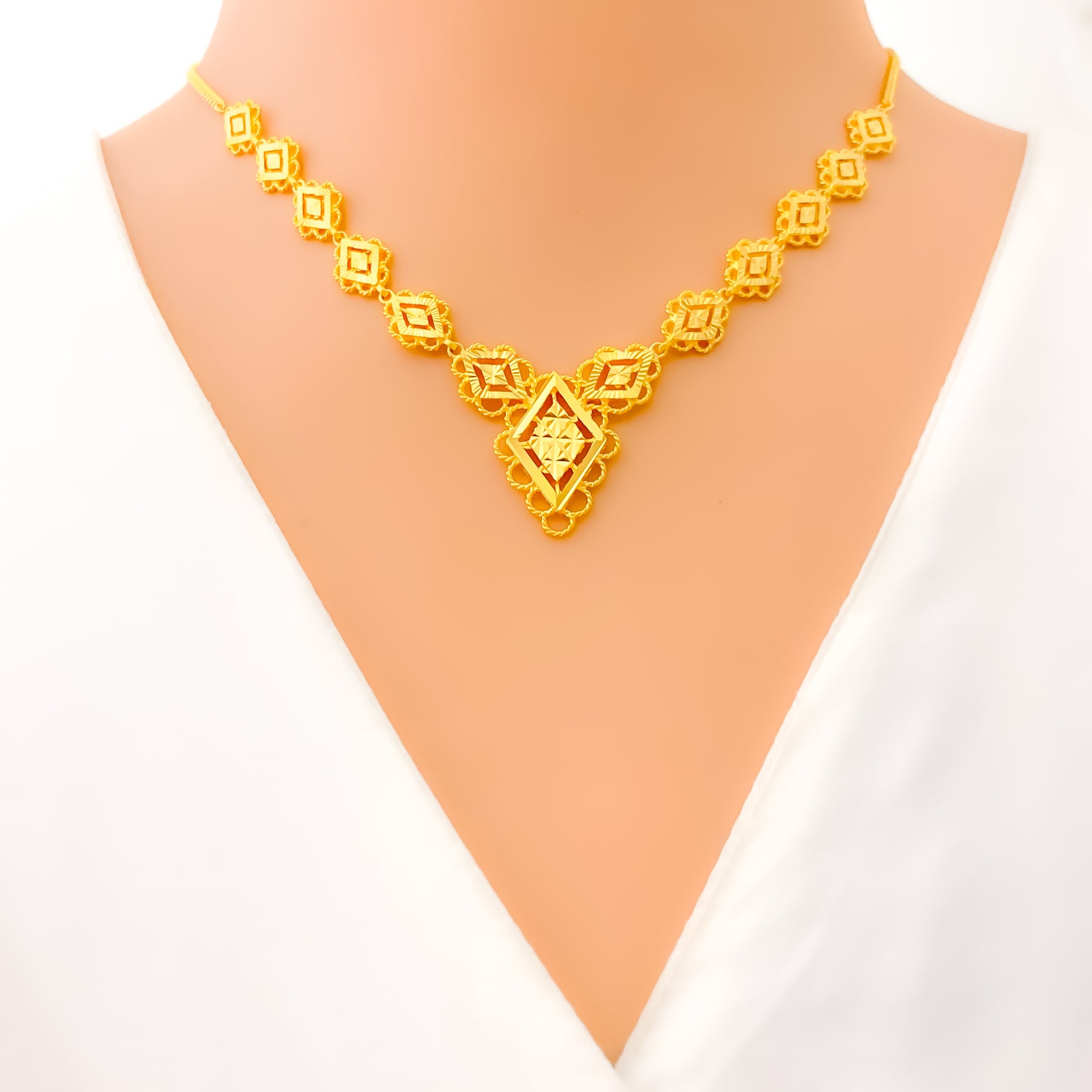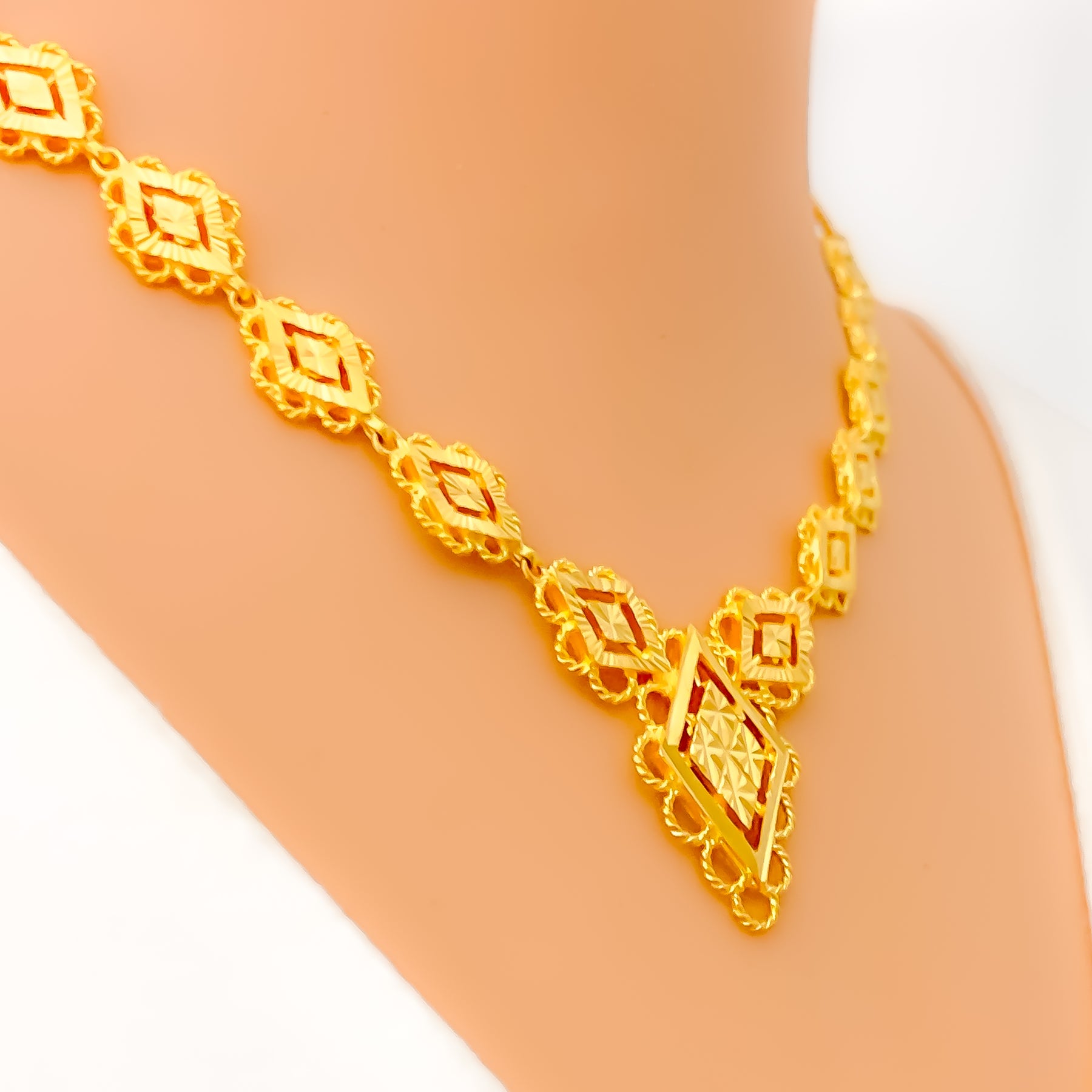 Gorgeous Tapering 22k Gold Netted Necklace Set