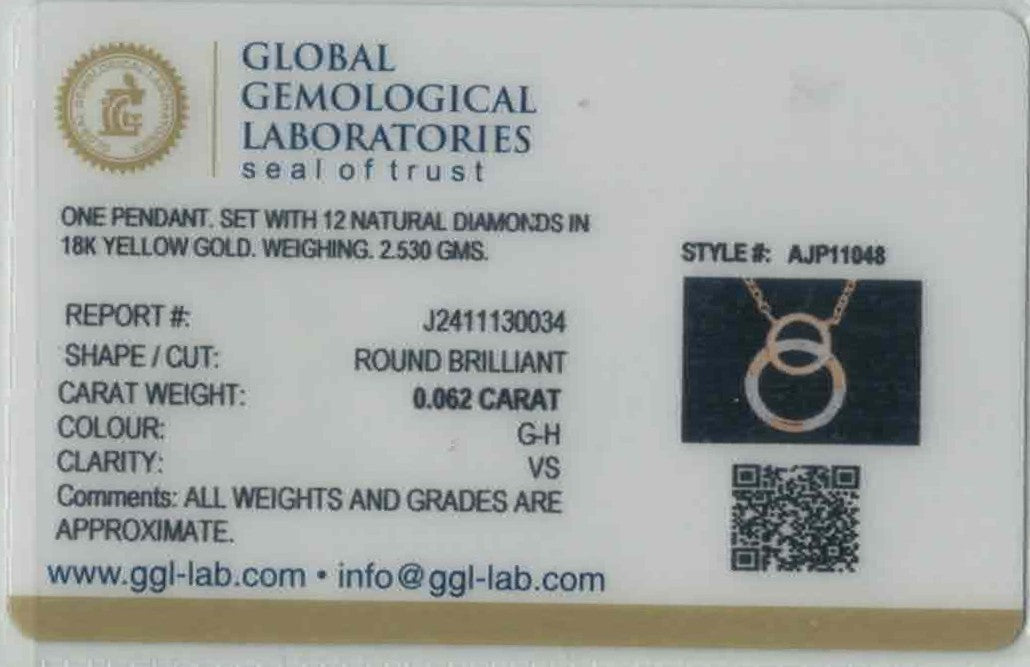 Gracefully crafted, this 18k yellow gold diamond necklace glows with refined beauty and delicate brilliance. Weighing 2.53 grams, it exudes a perfect balance of sophistication and lightness. The 0.062ct of G-H color, VS quality round brilliant-cut diamonds shimmer with timeless radiance. Measuring 18 inches with adjustable links, it’s a graceful accent of classic luxury.