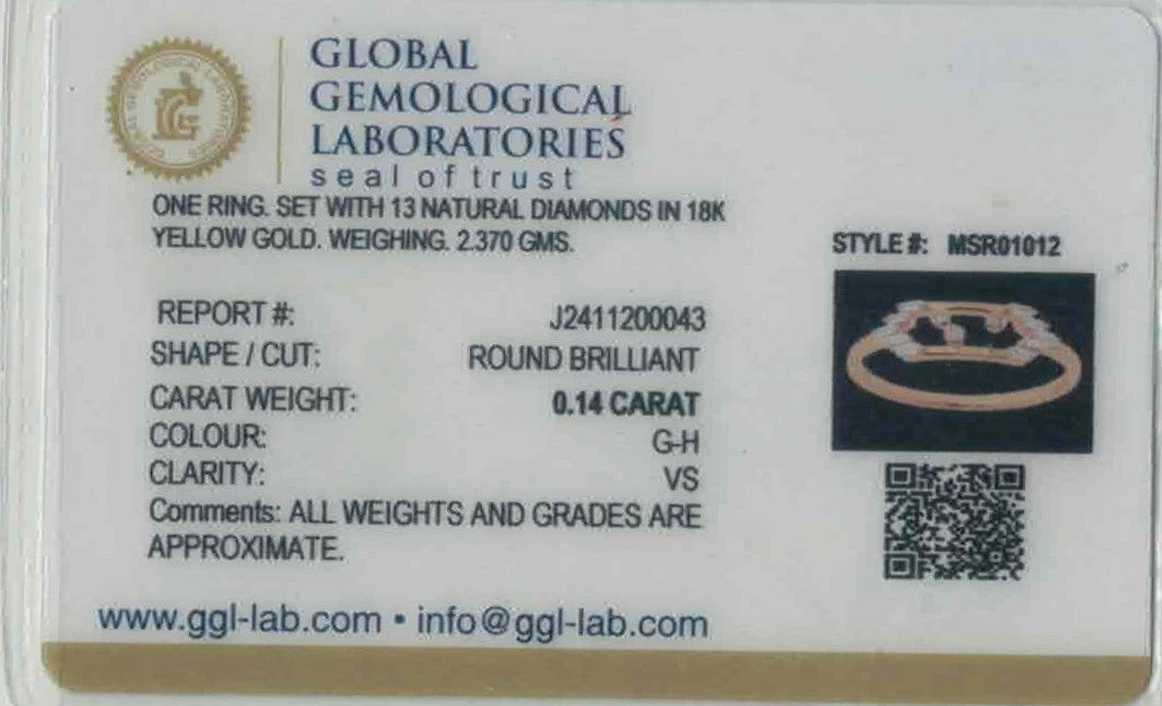 Highlighted with radiant sophistication, this 18k gold ring showcases a polished 2.37-gram profile shaped around a sleek rectangular motif enriched by 0.14ct of VS-quality G–H diamonds in round and baguette cuts. Its warm yellow-gold finish deepens each sparkling facet with glowing dimension and contemporary charm suited for many refined looks. Designed in size 7 with re-sizing available, it offers adaptable comfort and versatile styling for both everyday elegance and elevated occasions. Perfect for adding a glamorous touch of diamond brilliance to any thoughtfully curated collection.