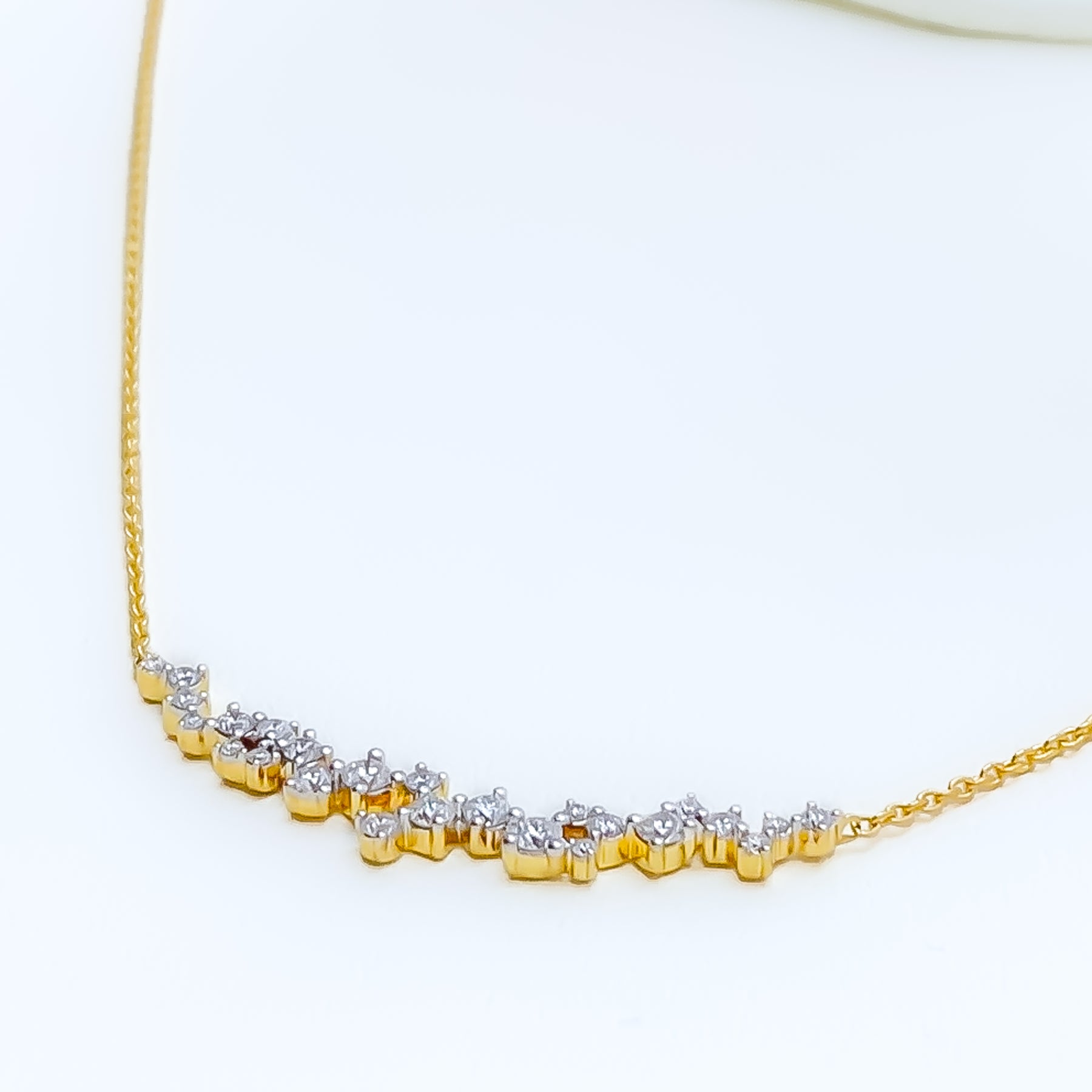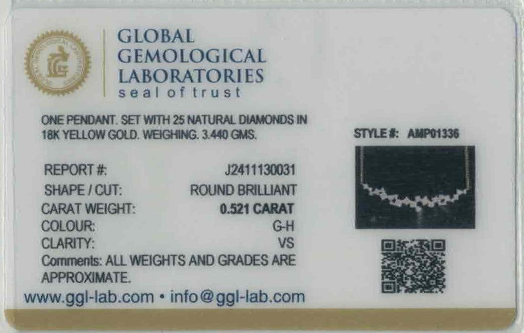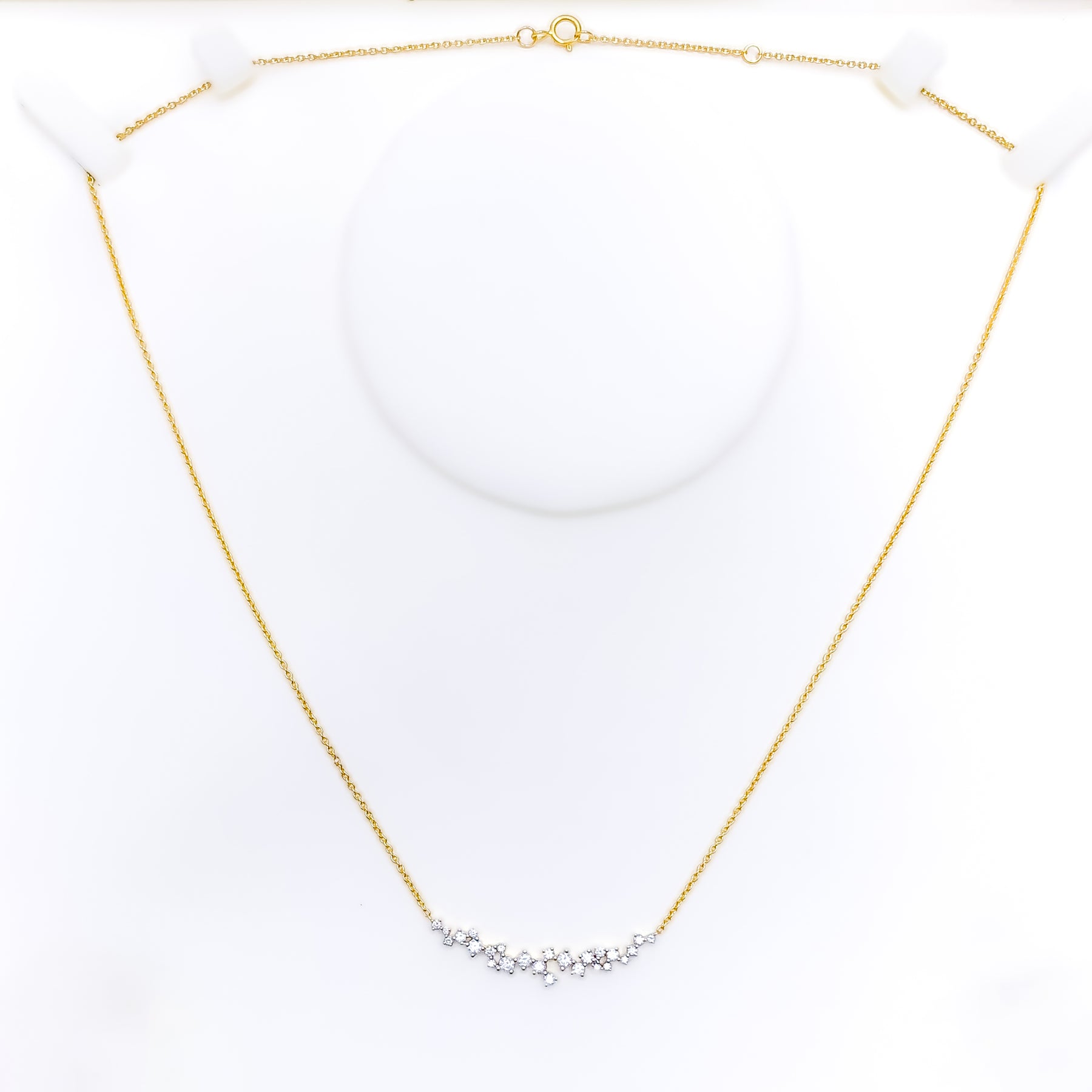 Finely crafted, this 18k yellow gold diamond necklace radiates brilliance with its modern design and refined detailing. Weighing 3.44 grams, it offers a perfect blend of luxury and sophistication. The 0.521ct of G-H color, VS quality round brilliant-cut diamonds shimmer with radiant sparkle. Measuring 18 inches with adjustable links, it’s a striking expression of timeless elegance.