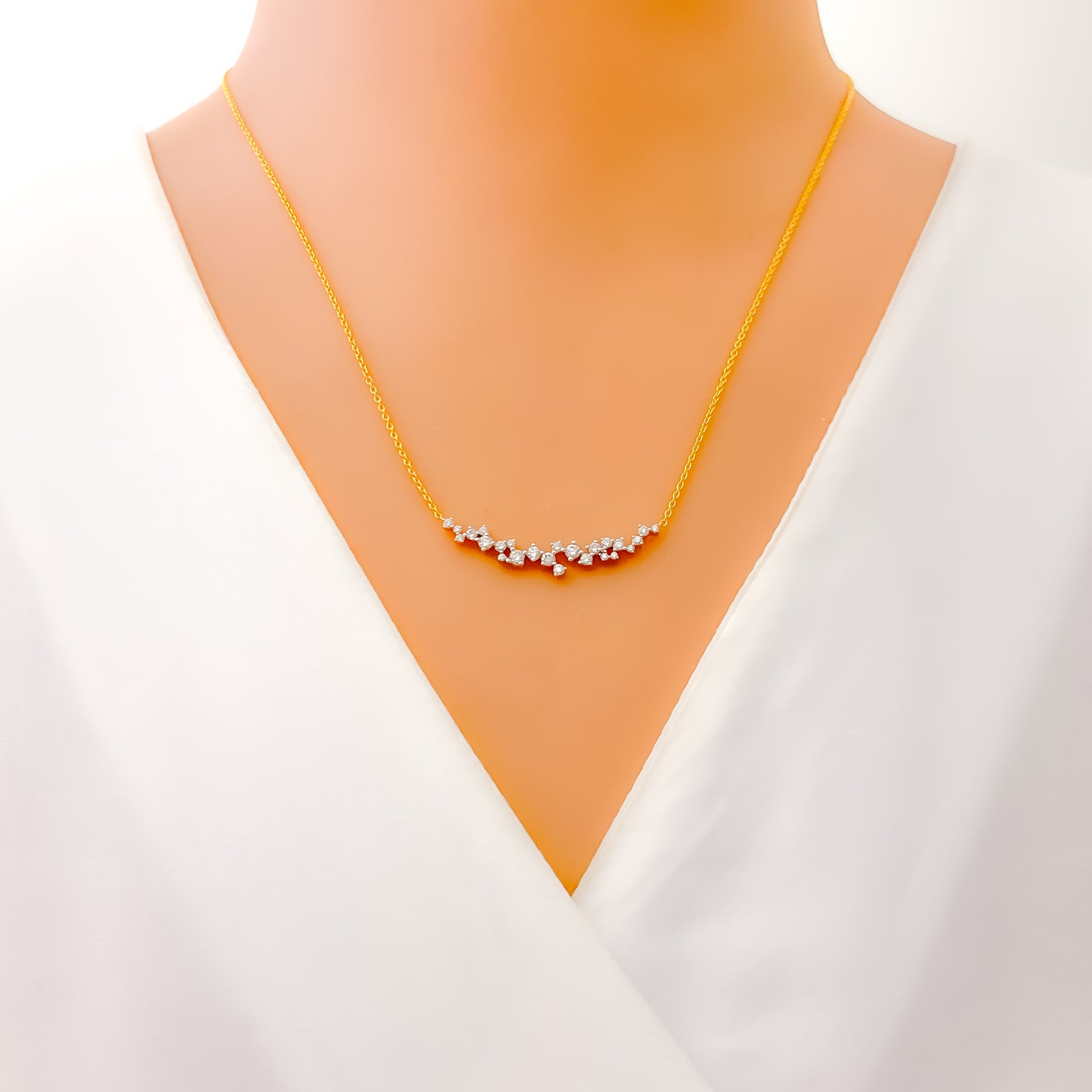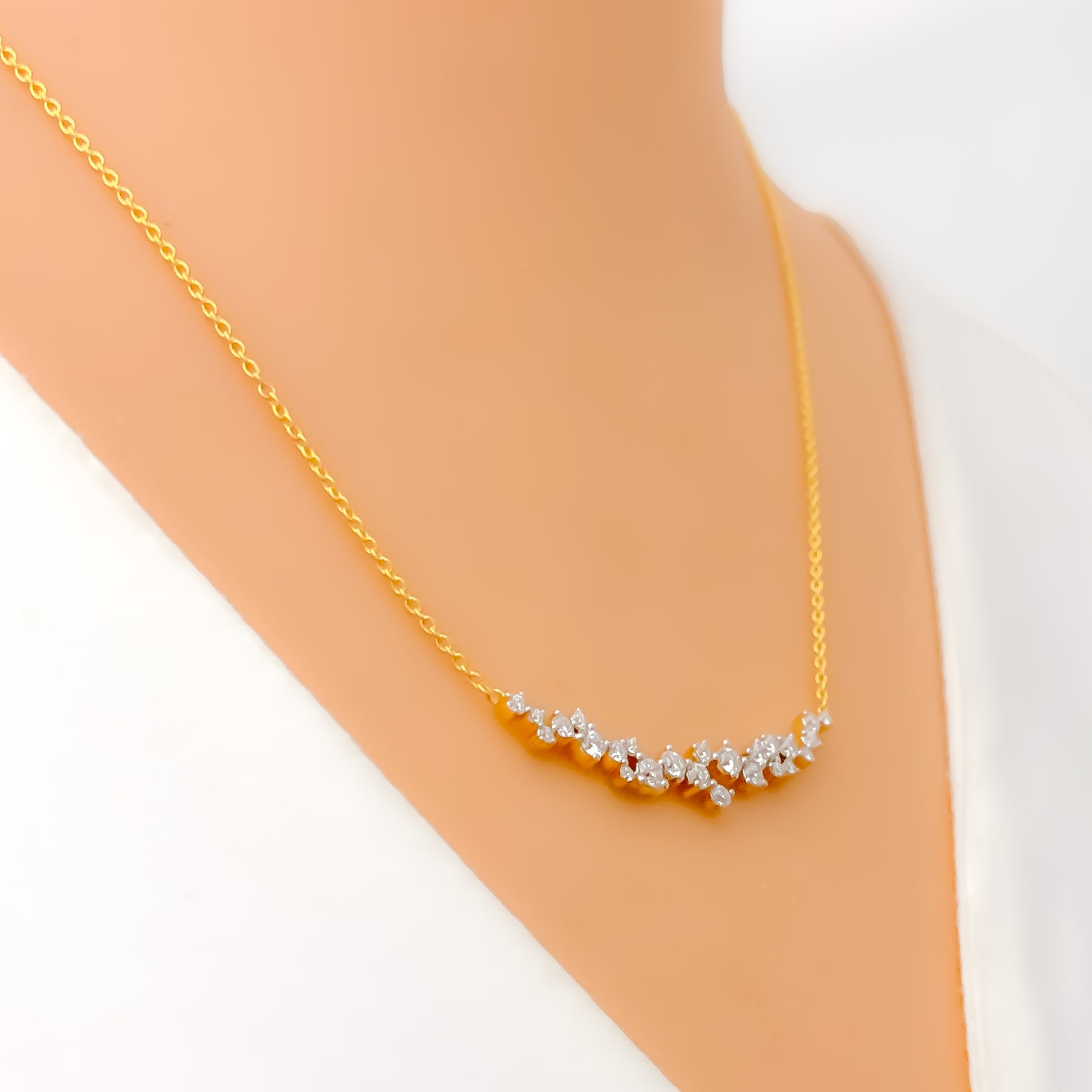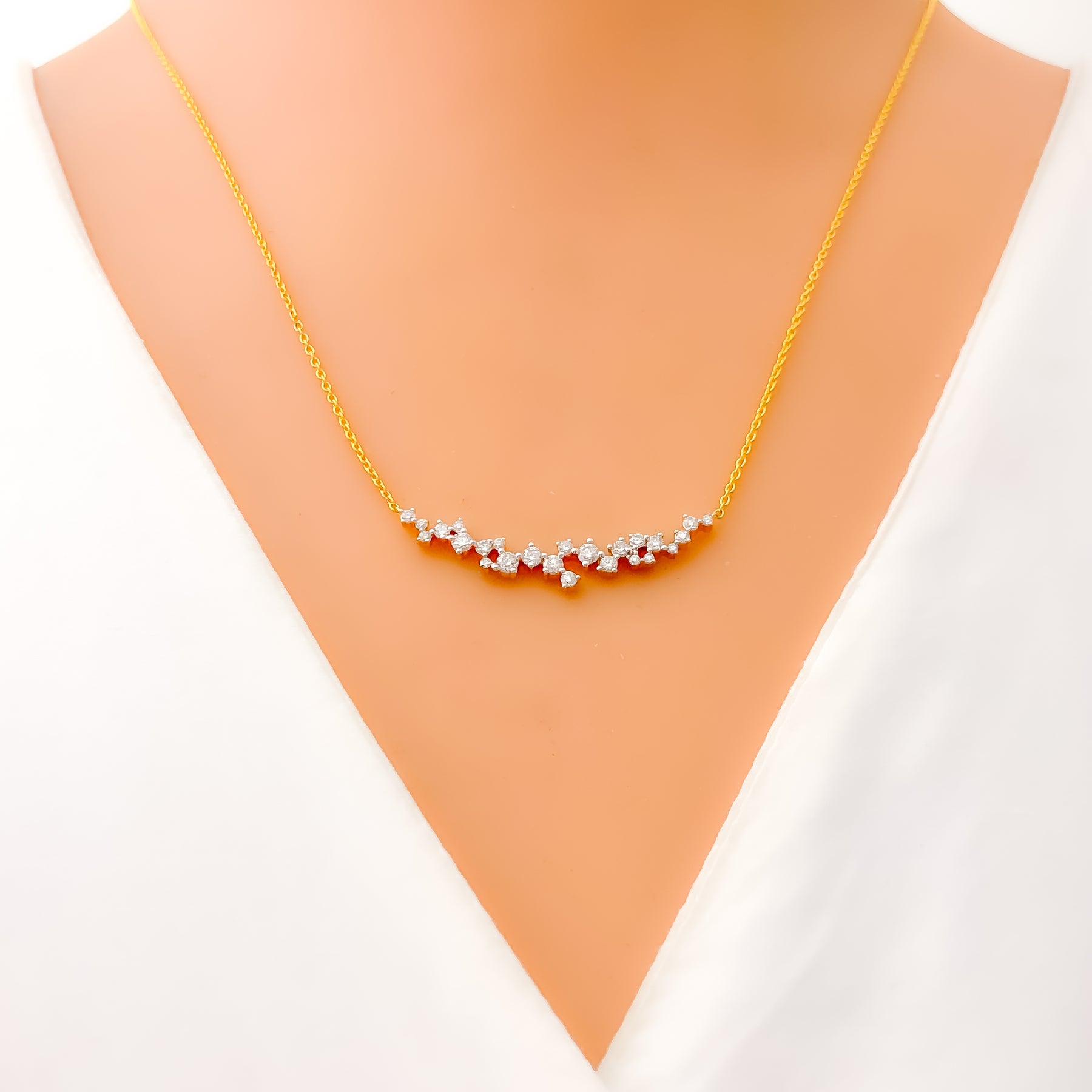 Finely crafted, this 18k yellow gold diamond necklace radiates brilliance with its modern design and refined detailing. Weighing 3.44 grams, it offers a perfect blend of luxury and sophistication. The 0.521ct of G-H color, VS quality round brilliant-cut diamonds shimmer with radiant sparkle. Measuring 18 inches with adjustable links, it’s a striking expression of timeless elegance.