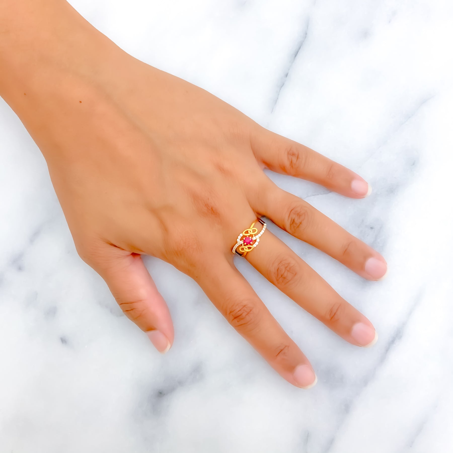 Crafted for everyday elegance, this 22k gold ring shines with a brilliant yellow gold finish and radiant CZ accents. Weighing 2.2 grams, it offers a refined balance of style and comfort. The 6.75 ring size is resizable for a flawless fit. A charming piece ideal for subtle sophistication and timeless flair.