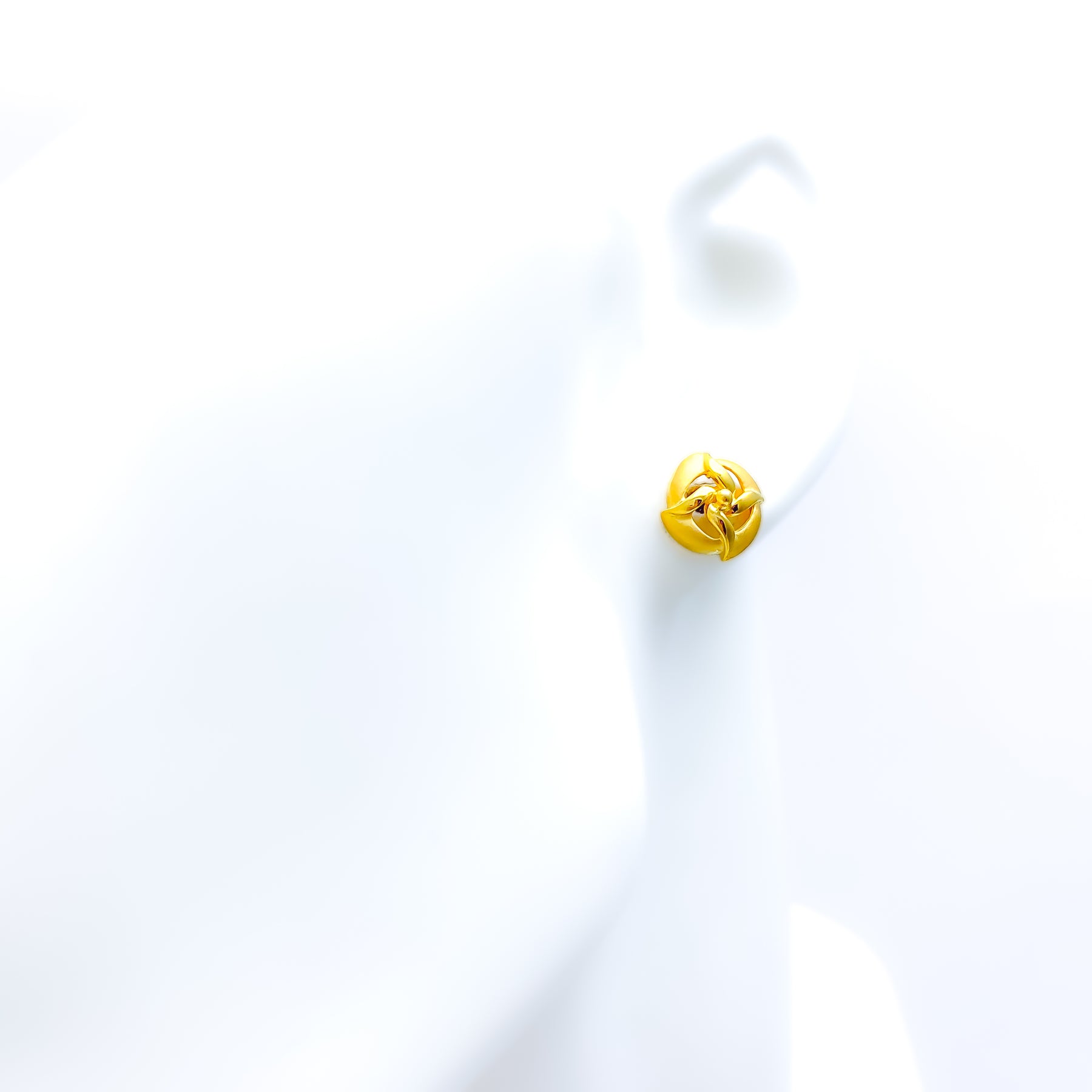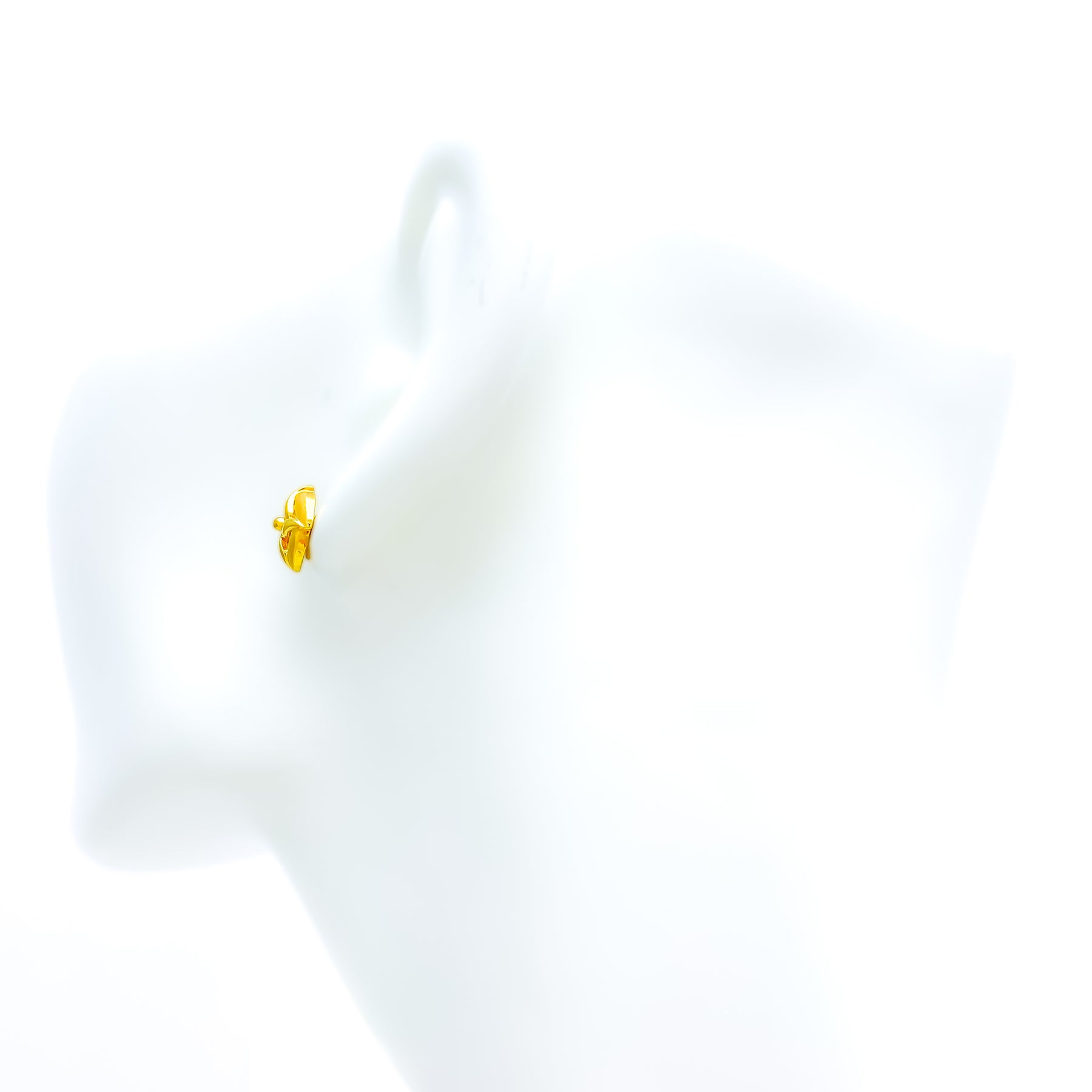 Crafted in 22k yellow gold with a weight of 3.4 grams, these versatile tops radiate polished elegance. The sleek finish enhances their refined silhouette, offering a graceful blend of simplicity and sophistication. Measuring 0.4 inches in length, they provide timeless style for daily wear. Secured with screw-back posts, they ensure comfort and enduring appeal.