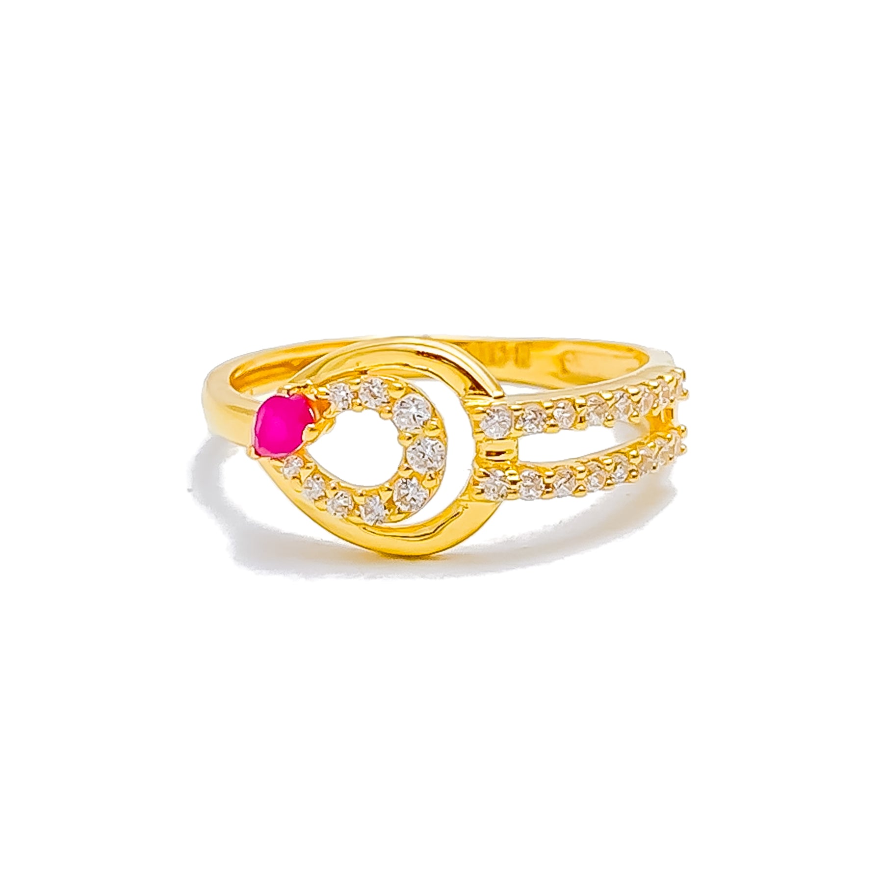This exquisite ring highlights the beauty of 22k yellow gold with an added brilliance of cubic zirconia. Weighing 2.5 grams, it strikes a perfect balance between elegance and everyday wear. Designed in size 6.5, it also offers re-sizing for a comfortable and tailored fit. A graceful piece that blends sophistication with timeless charm.