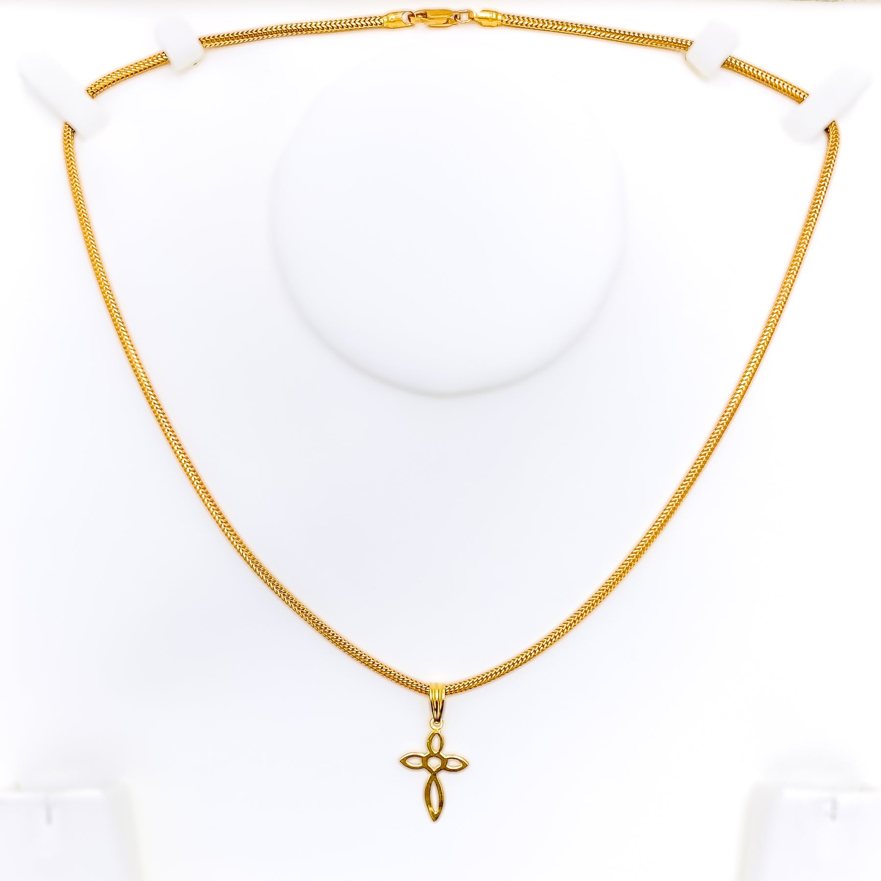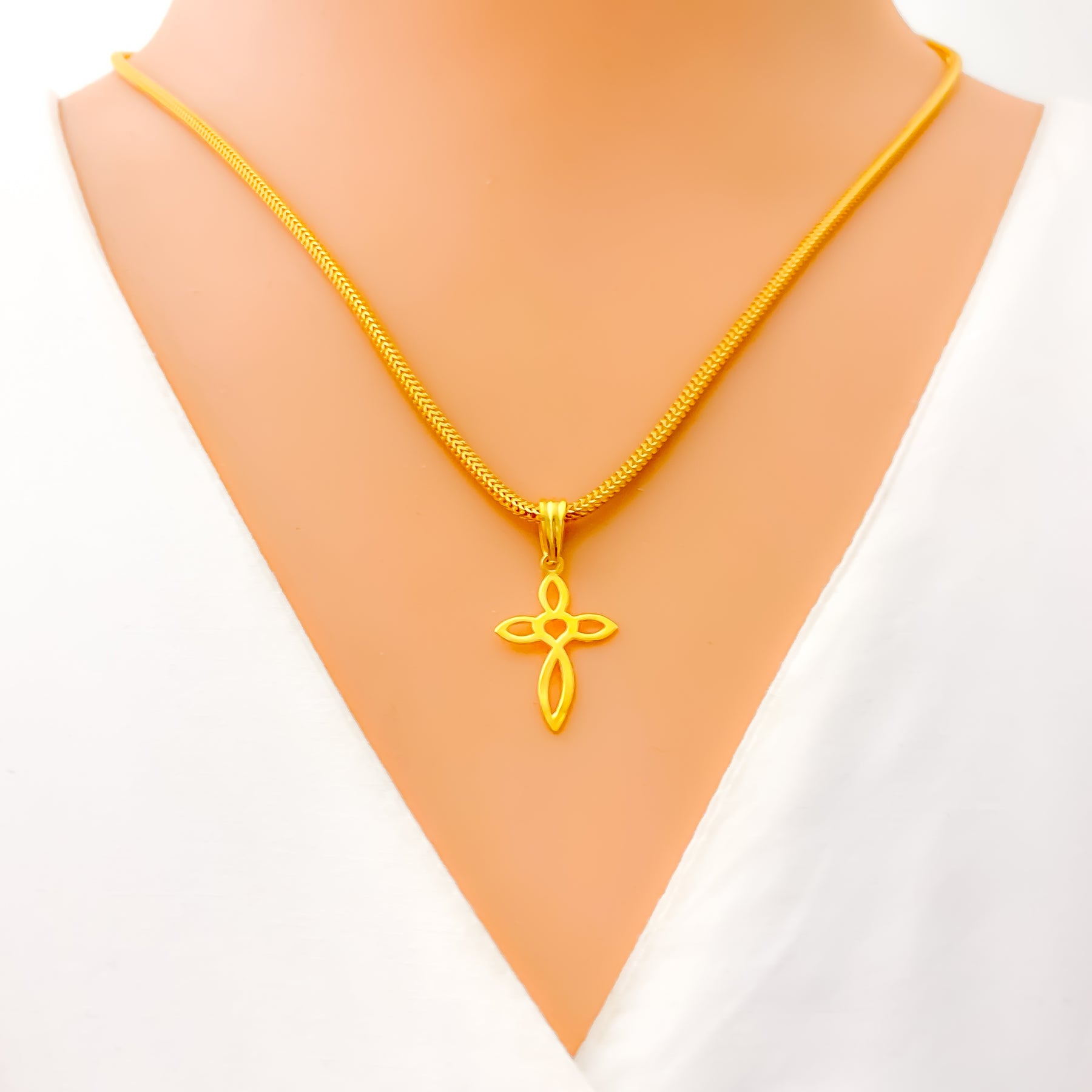 This radiant 22k yellow gold cross pendant exudes a classic yet striking charm. Its polished surface catches the light beautifully, enhancing the warmth of its golden hue. Sized at 1.1", it offers a subtle yet meaningful presence. A timeless symbol of faith and elegance for any jewelry collection.