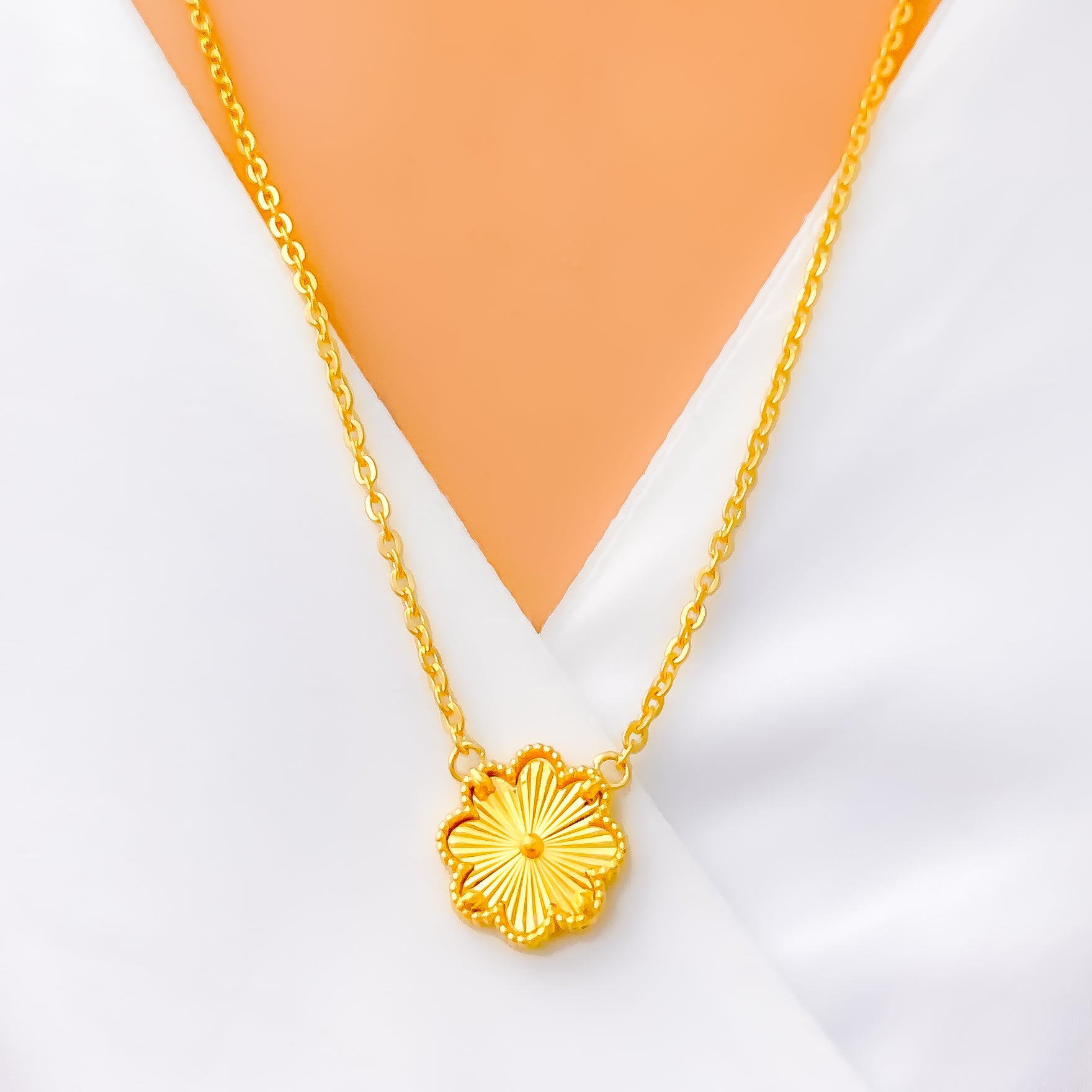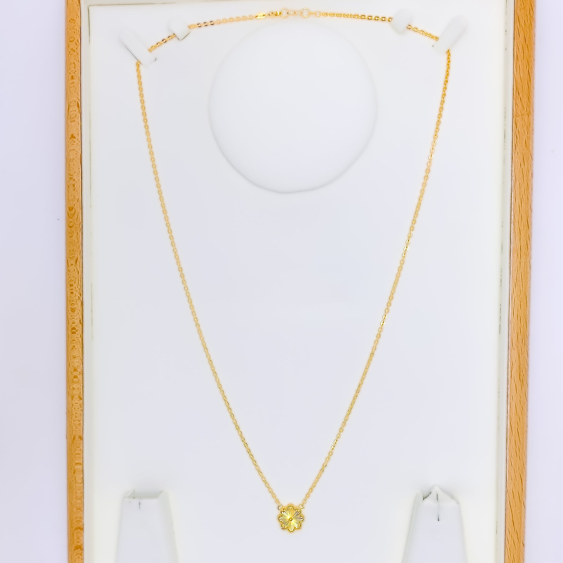 Decorative Floral 21k Gold Striped Necklace