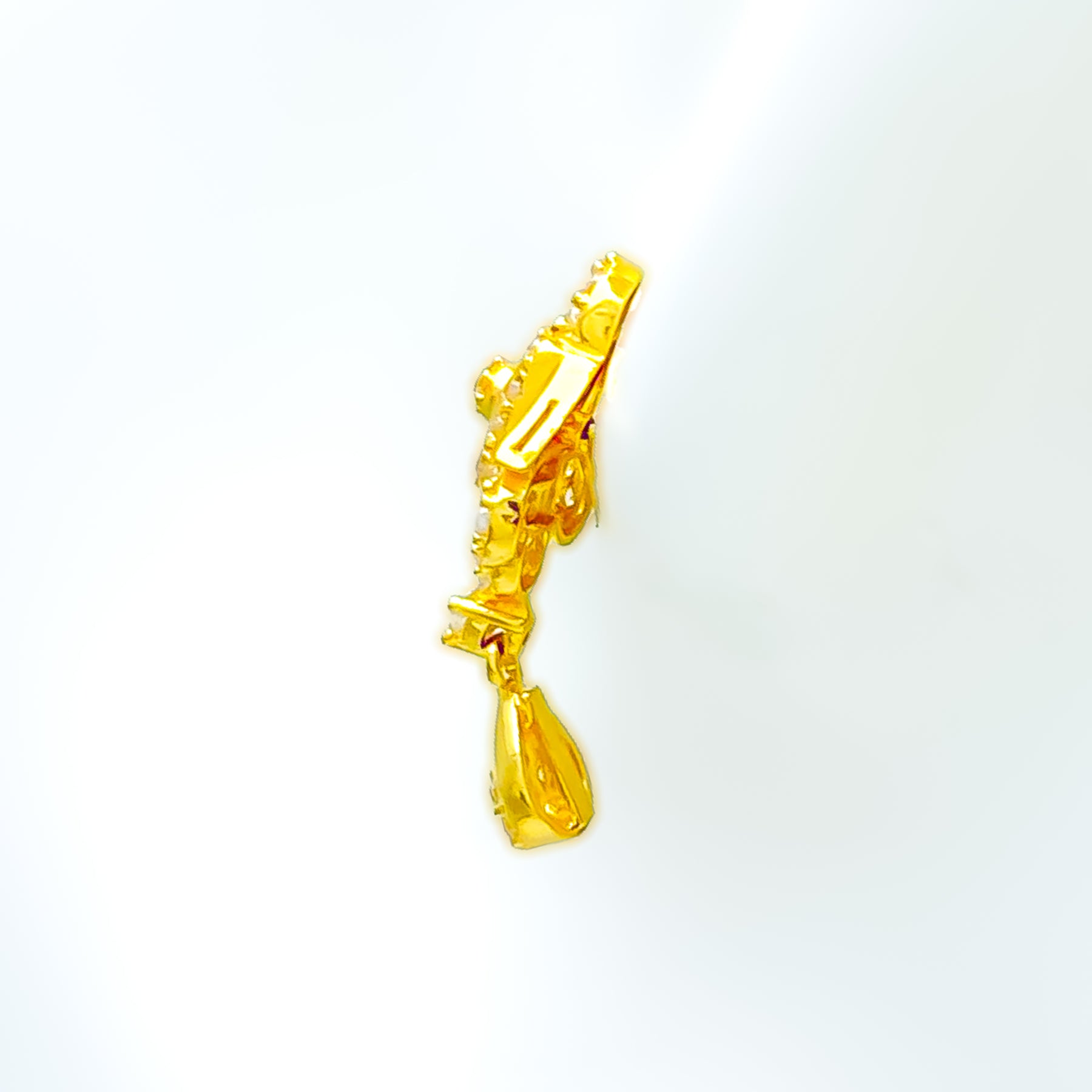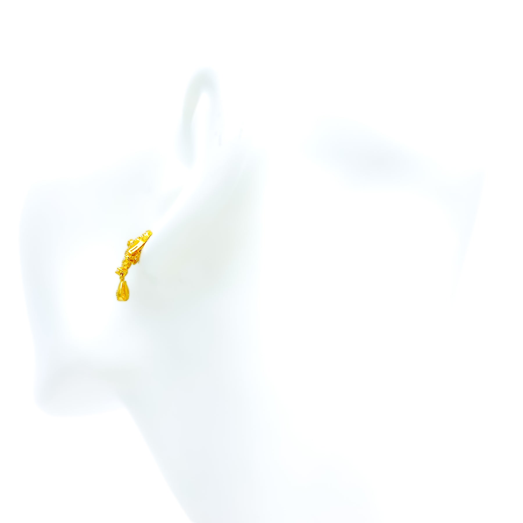 Charming and graceful, these 22k gold earrings shimmer with cubic zirconia brilliance and a warm yellow gold sheen. Weighing 4.2 grams, their delicate hanging design adds fluid motion and refined sparkle. The 0.4-inch tops exude understated glamour. Perfect for both festive occasions and elegant everyday wear.