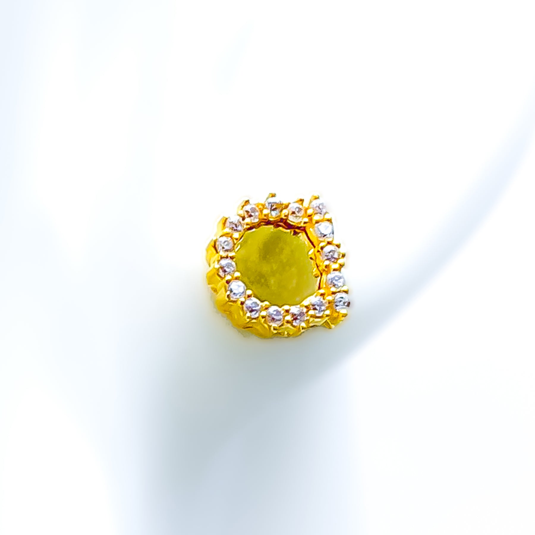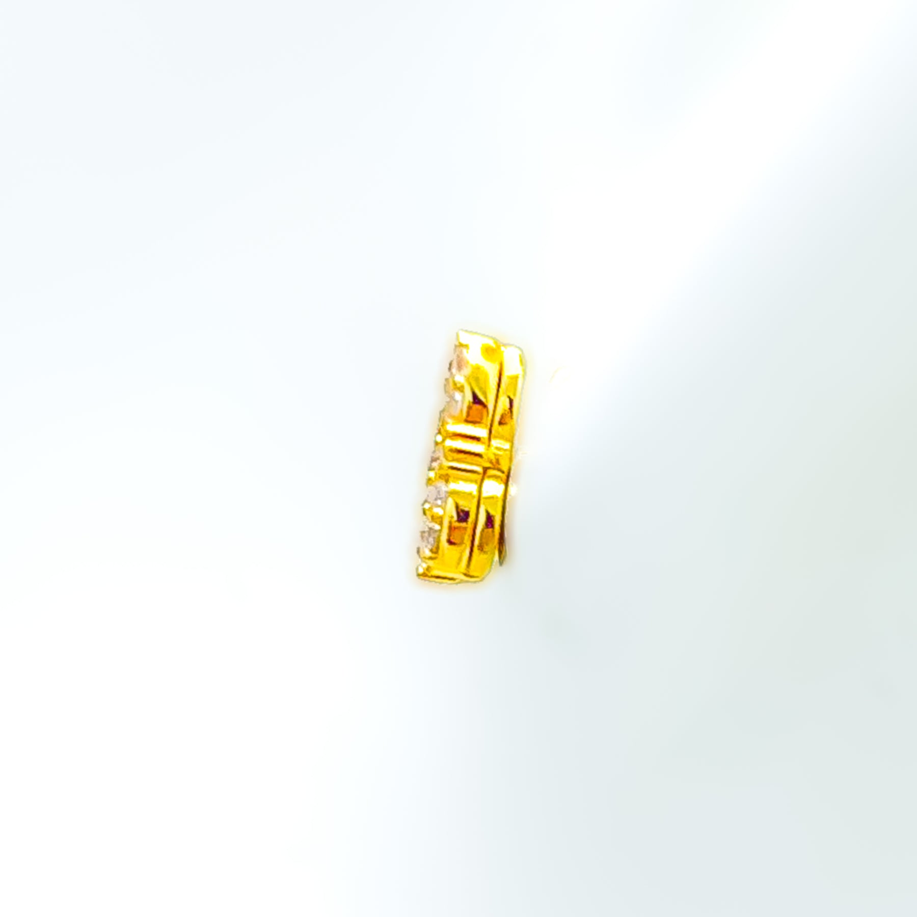 Exquisitely crafted, these 21k gold earrings radiate sophistication with their smooth finish and polished allure. Weighing 2.4 grams, they offer a graceful balance of luxury and elegance. The luminous yellow gold surface enhances their refined brilliance and warmth. Measuring 0.3 inches in diameter, they’re a chic expression of timeless beauty.
