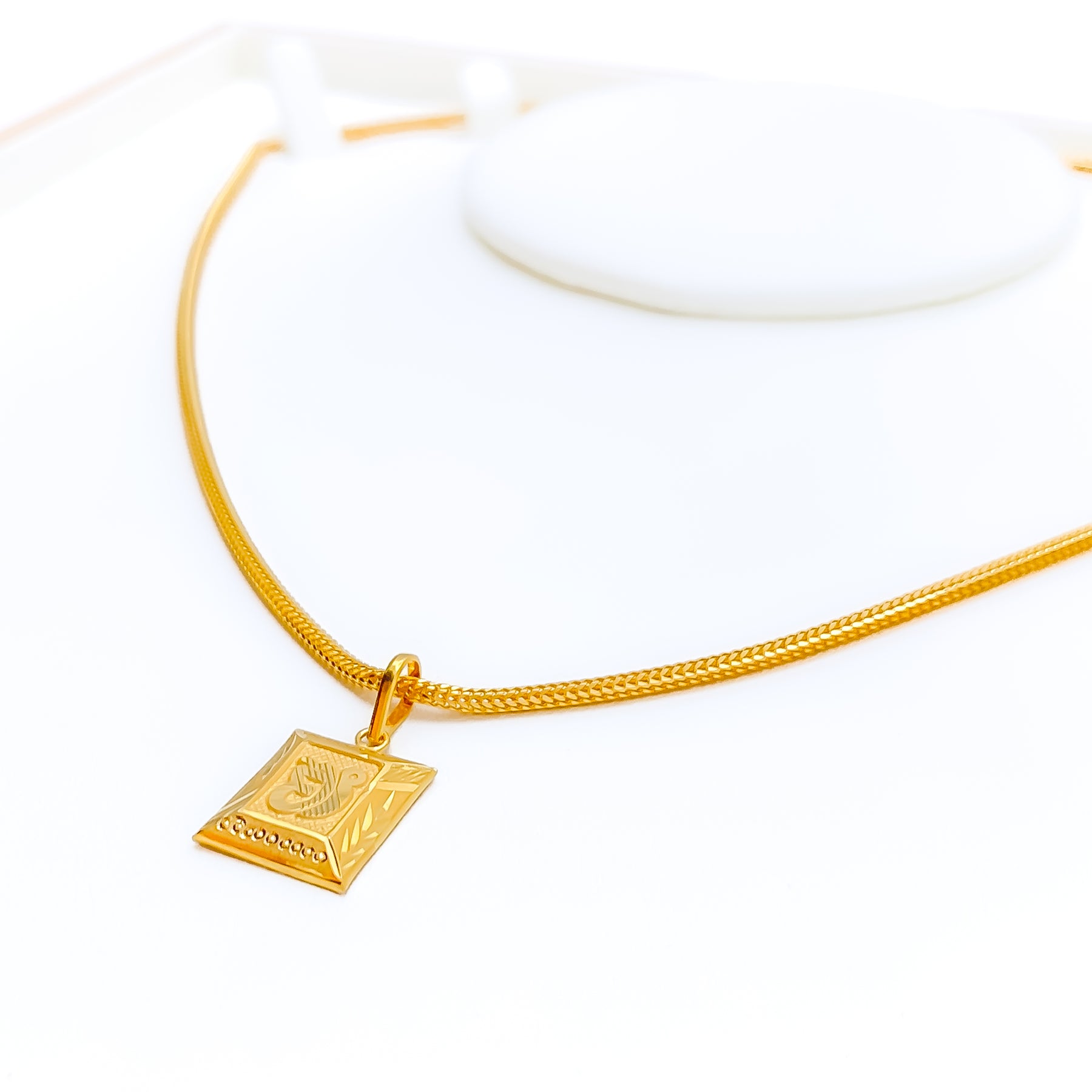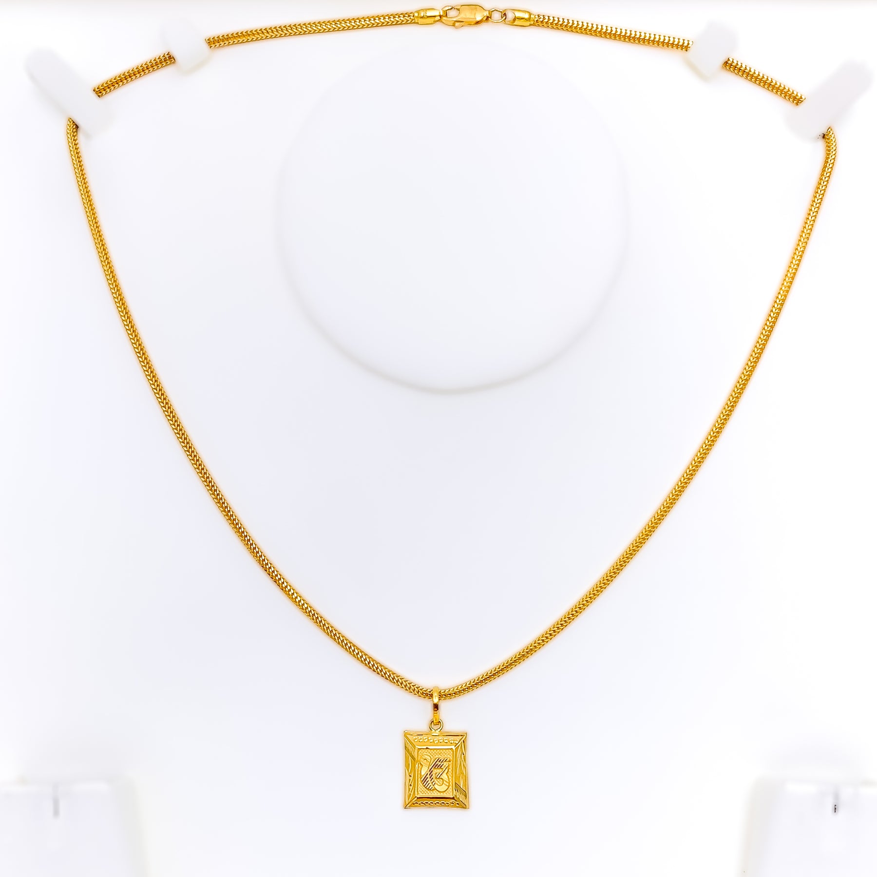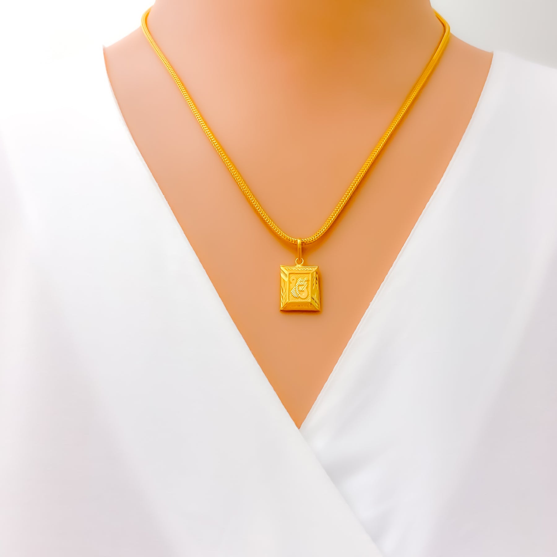 This finely crafted 22k yellow gold Khanda pendant weighs 0.9 grams, embodying devotion with elegant simplicity. Measuring 0.8 inches in length, it carries spiritual significance while offering a refined, lightweight design. The polished finish enhances its radiant glow, making it suitable for both daily wear and special occasions. With no chain included, it allows versatile pairing with your favorite styles.
