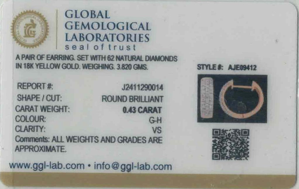 Crafted in 18k yellow gold with a weight of 3.82 grams, these refined bali earrings radiate elegant brilliance. Adorned with 0.43 carats of round brilliant VS diamonds in G-H color, they sparkle with timeless sophistication. The polished finish enhances their graceful silhouette, blending modern refinement with everyday charm. Measuring 0.4 inches in length and secured with a push lock, they are a versatile jewel for any collection.