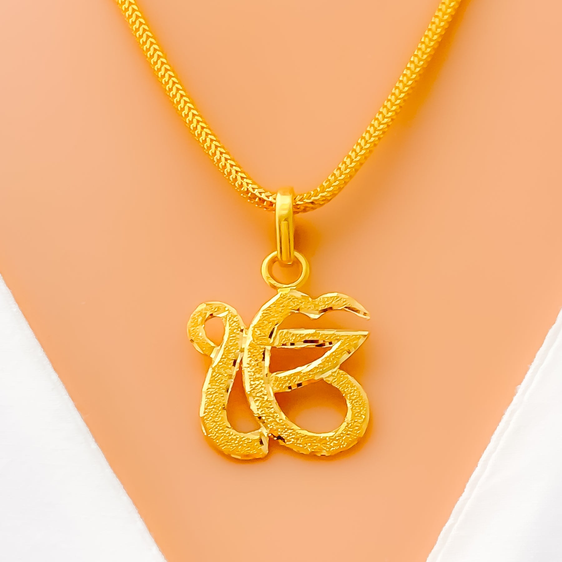 Crafted in radiant 22k yellow gold, this Khanda pendant carries a weight of 3.1 grams, balancing elegance with meaningful symbolism. Its 1.2-inch length offers a refined size, making it suitable for both daily wear and ceremonial occasions. The polished finish enhances its graceful detail, giving it a timeless appeal. Without a chain included, it allows versatility to pair seamlessly with any preferred style.