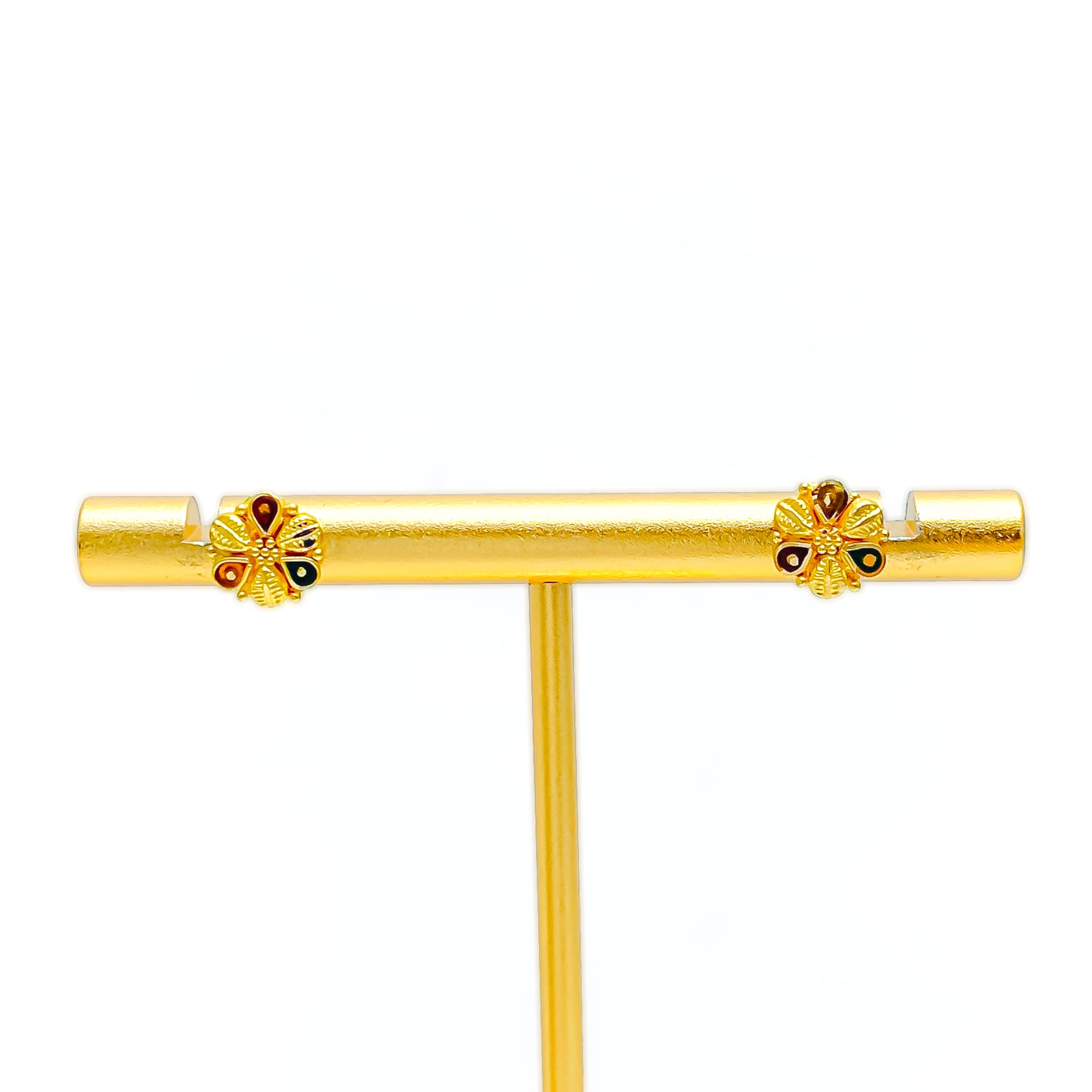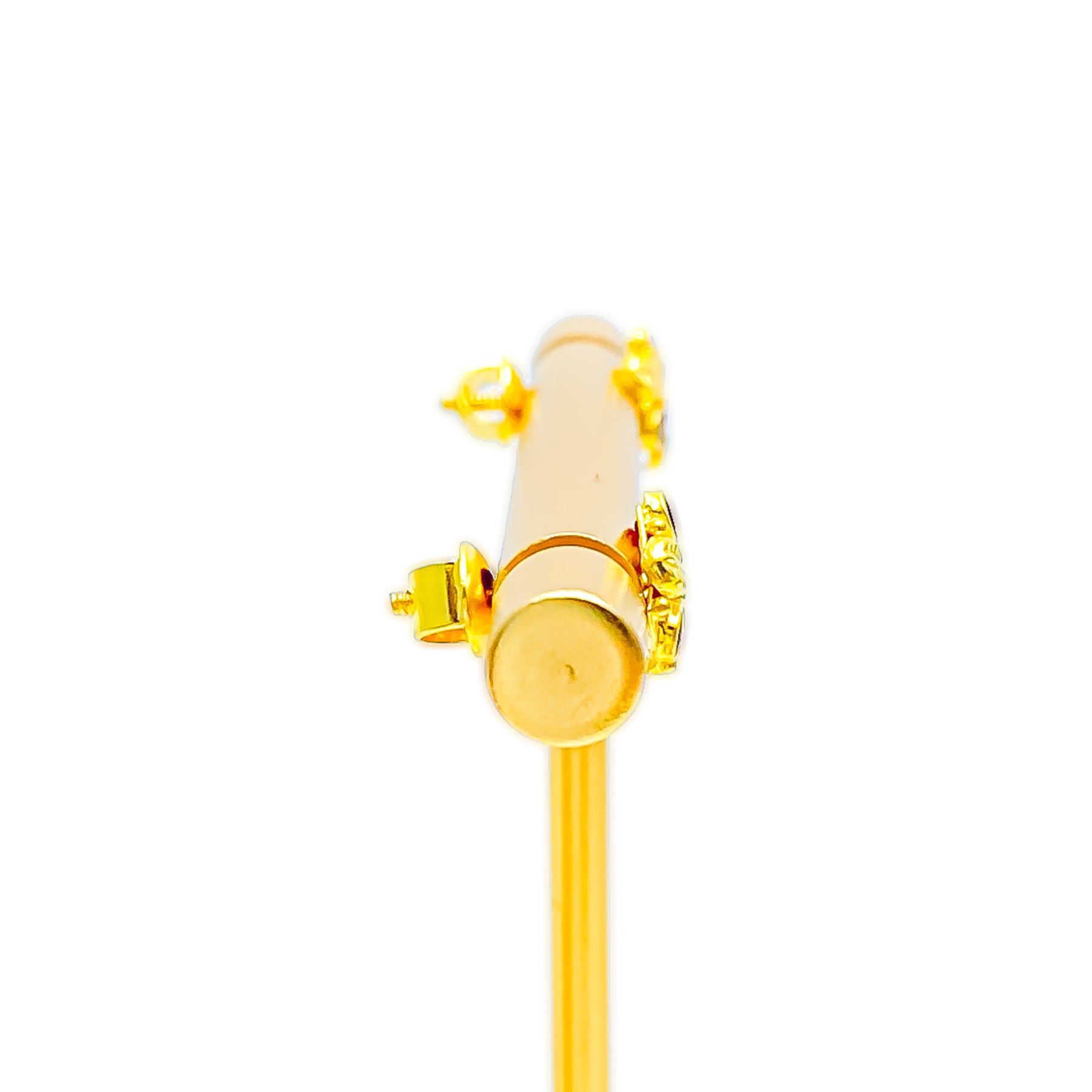 This chic pair of 22k yellow gold earrings, weighing 1.5 grams, features a trendy tops design that radiates fashionable elegance. The polished finish enhances their golden brilliance, offering timeless charm. With a 0.25" diameter and secure screw-back posts, they present a subtle yet refined presence. A versatile accessory that beautifully blends classic sophistication with modern style, perfect for both daily wear and festive occasions.