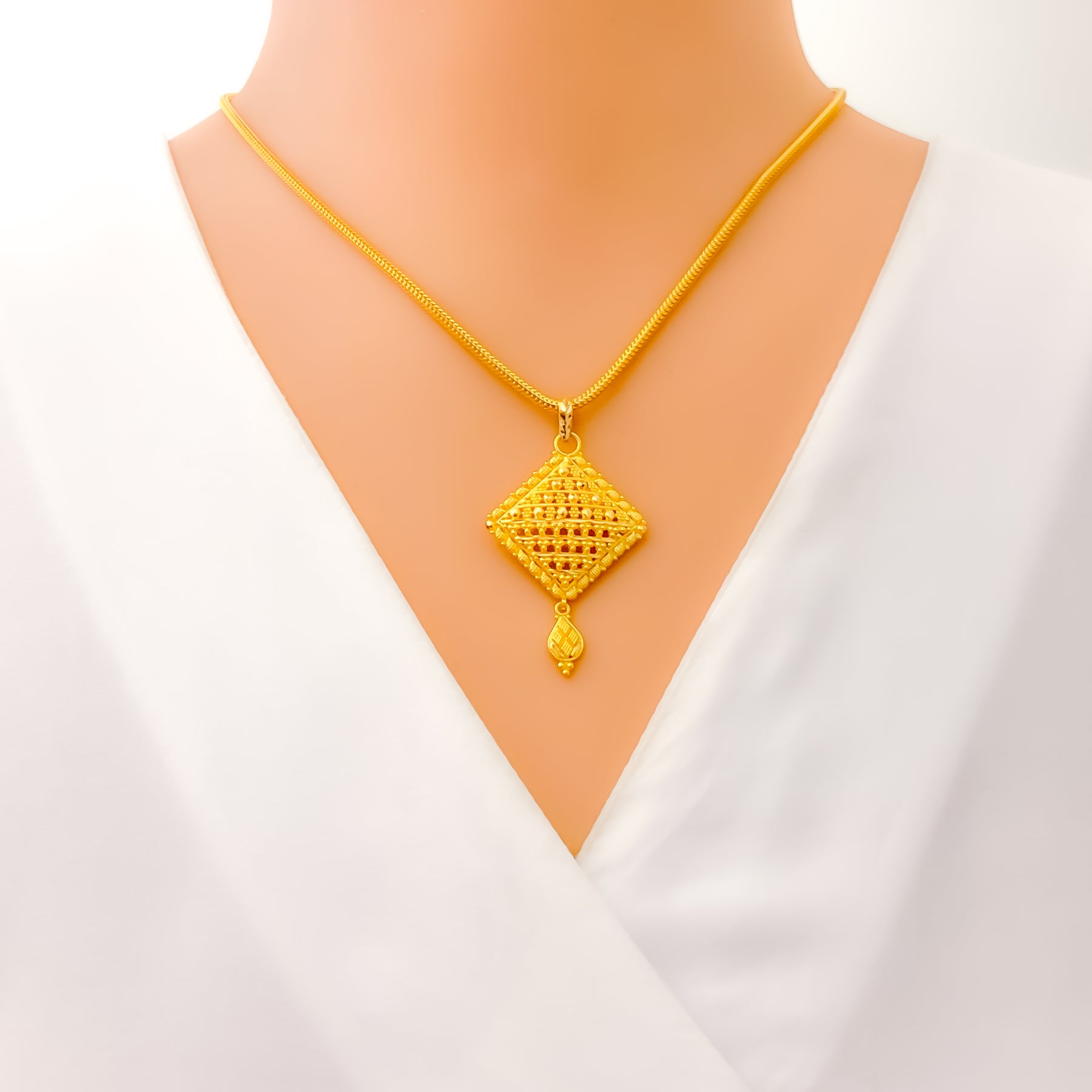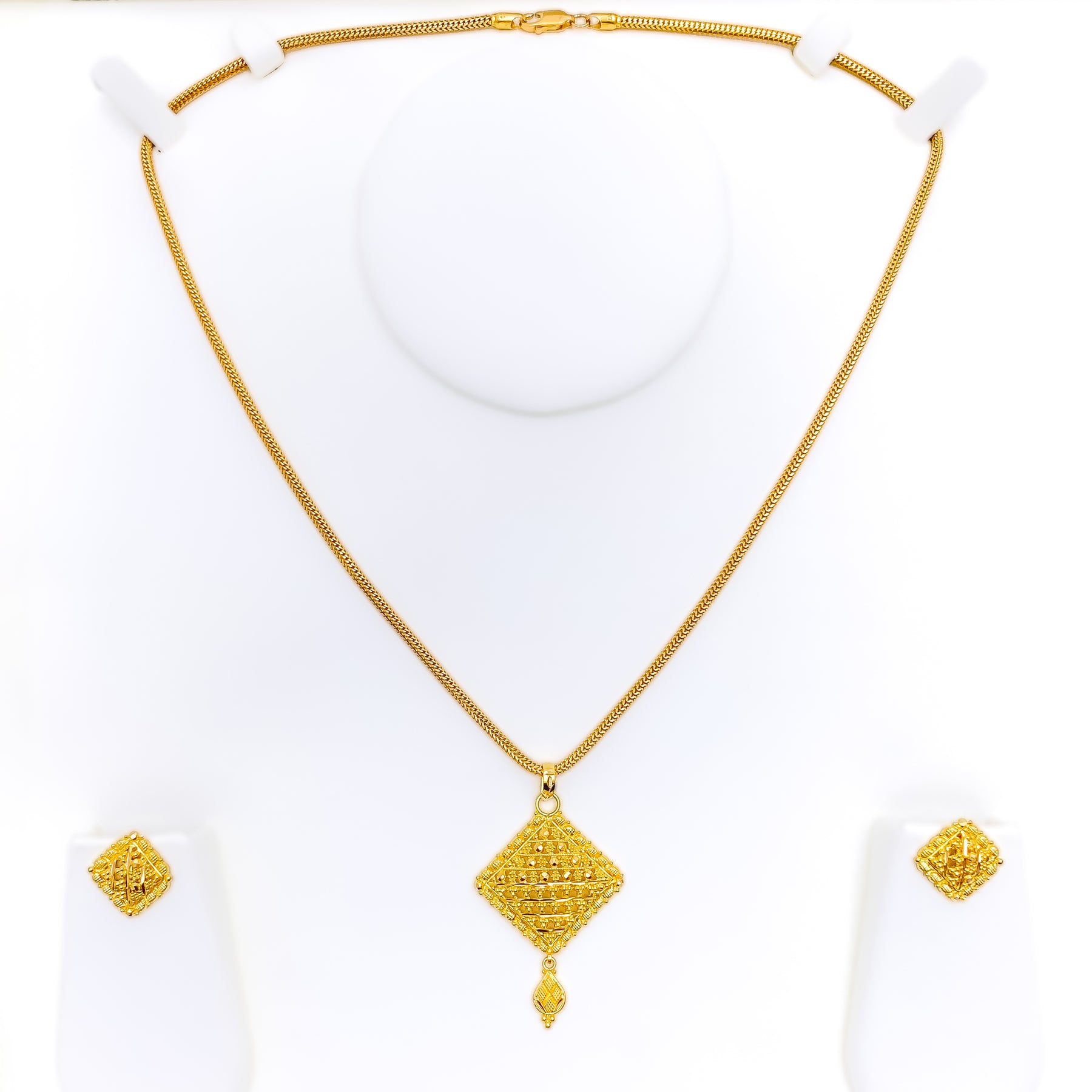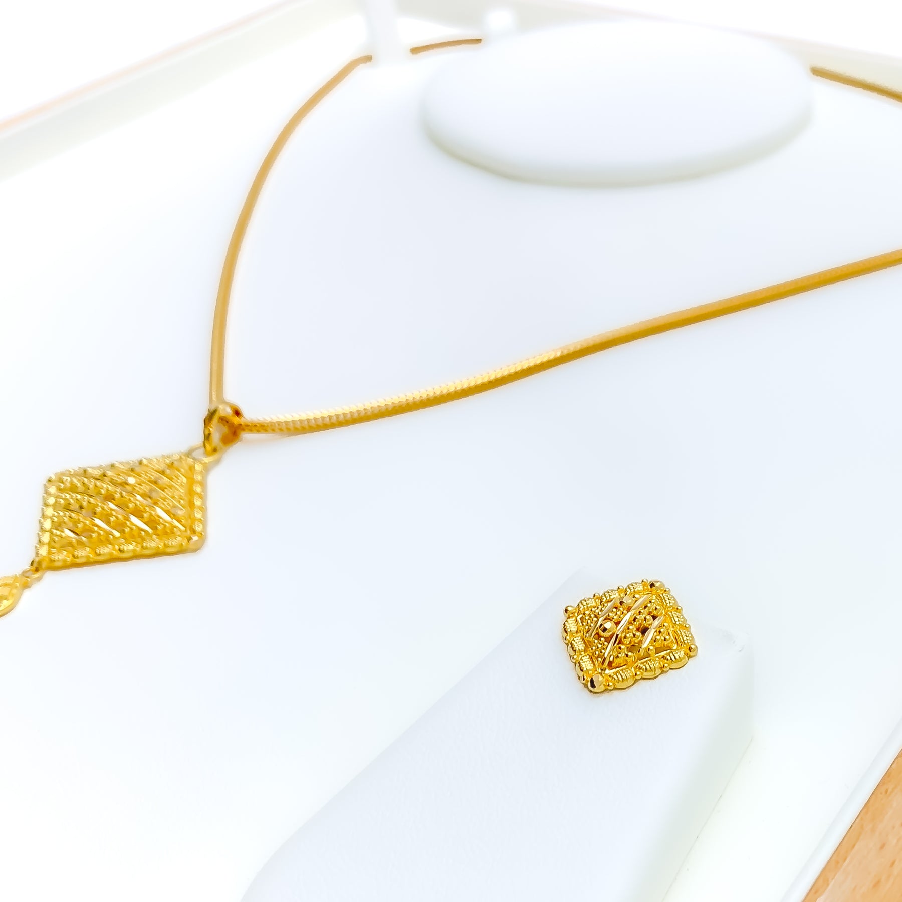 Flawless Checkered Kite Shaped 22k Gold Pendant Set