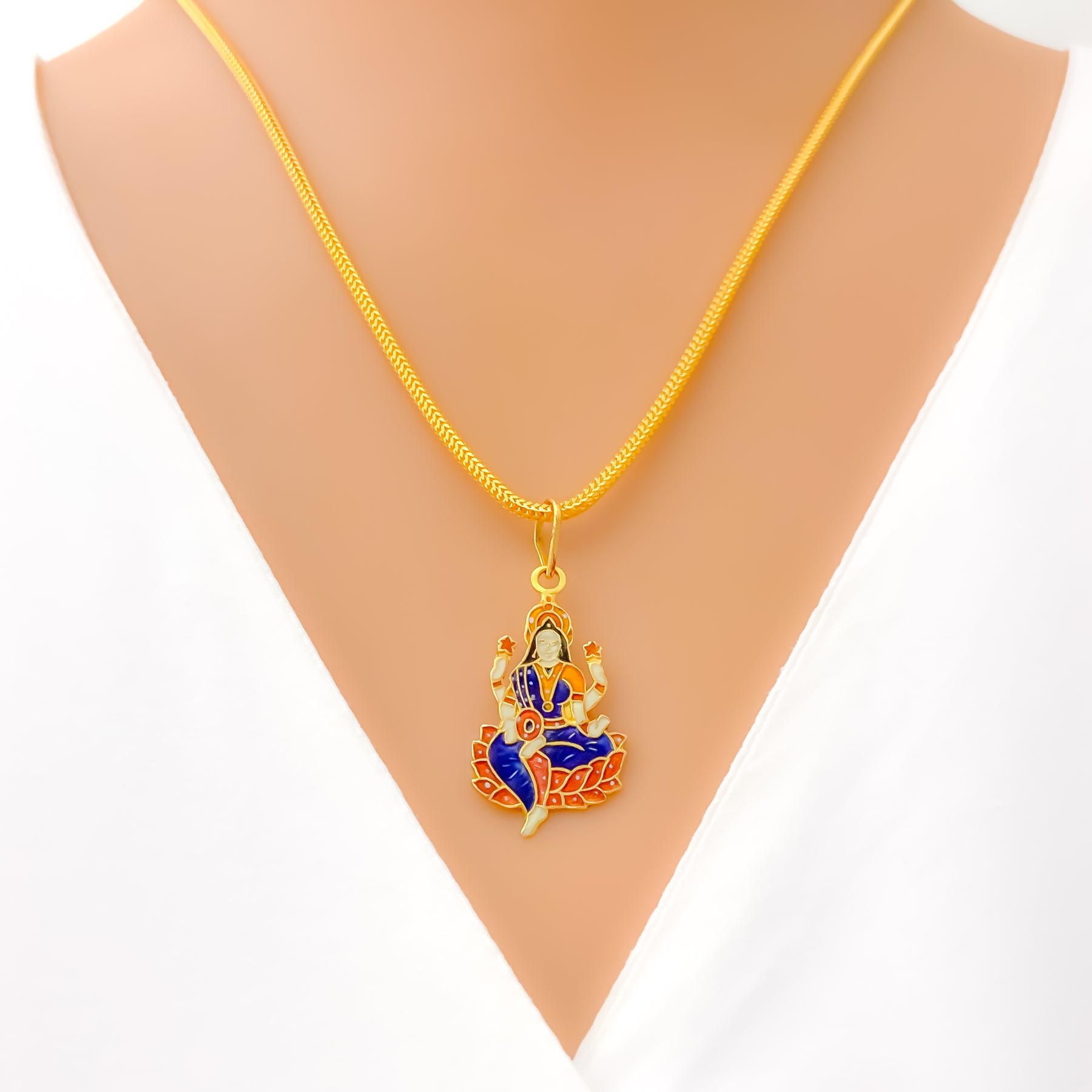 This elegant 22k yellow gold pendant, weighing 2.3 grams, features a detailed design that radiates iconic sophistication. The polished finish enhances its golden brilliance, adding timeless allure. Measuring 1.5" in length, it offers a graceful yet striking presence. A versatile accessory that beautifully combines classic artistry with modern refinement, perfect for both daily wear and special occasions, with chain not included.