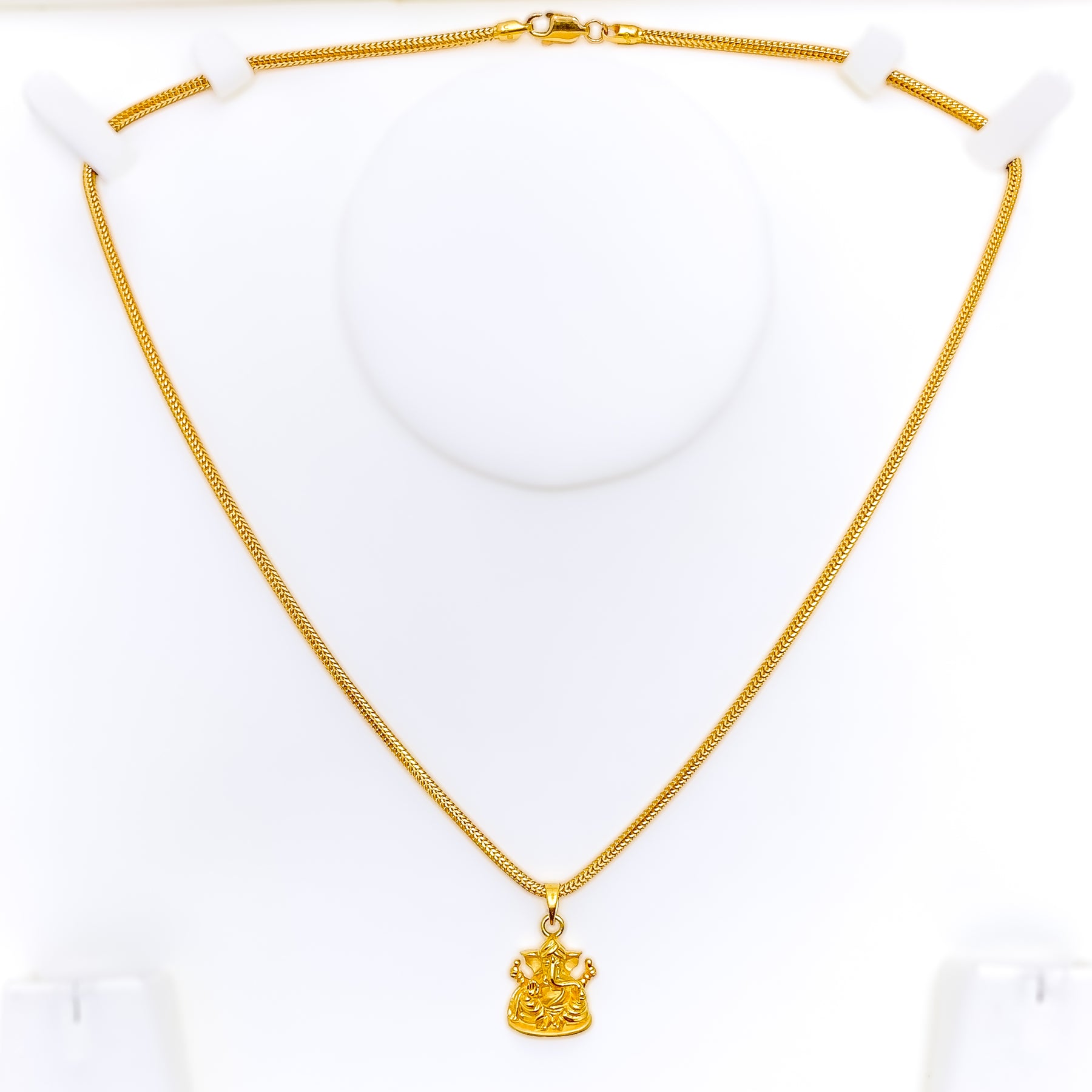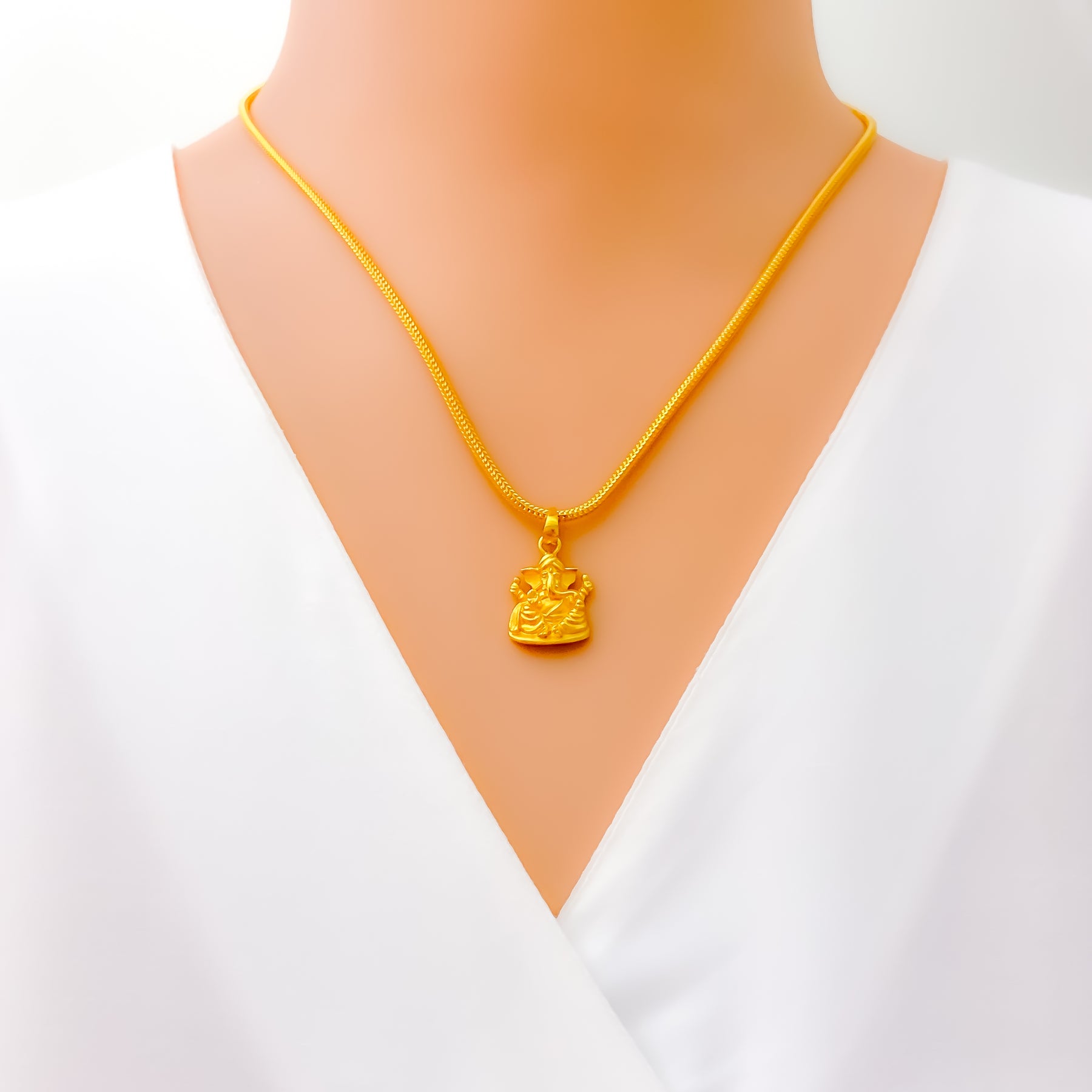 This refined 22k yellow gold pendant, weighing 3.5 grams, showcases a shiny design that radiates impressive brilliance. The polished finish enhances its golden glow, offering timeless sophistication. Measuring 0.9" in length, it provides a graceful yet versatile presence. A classic accessory that beautifully blends elegance with modern refinement, perfect for both everyday wear and festive occasions, with chain not included.