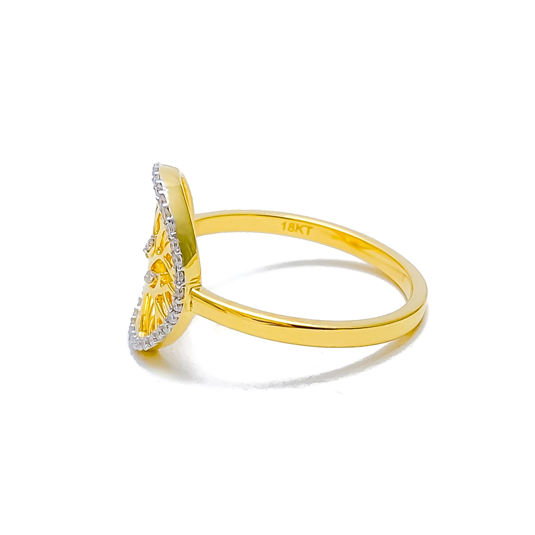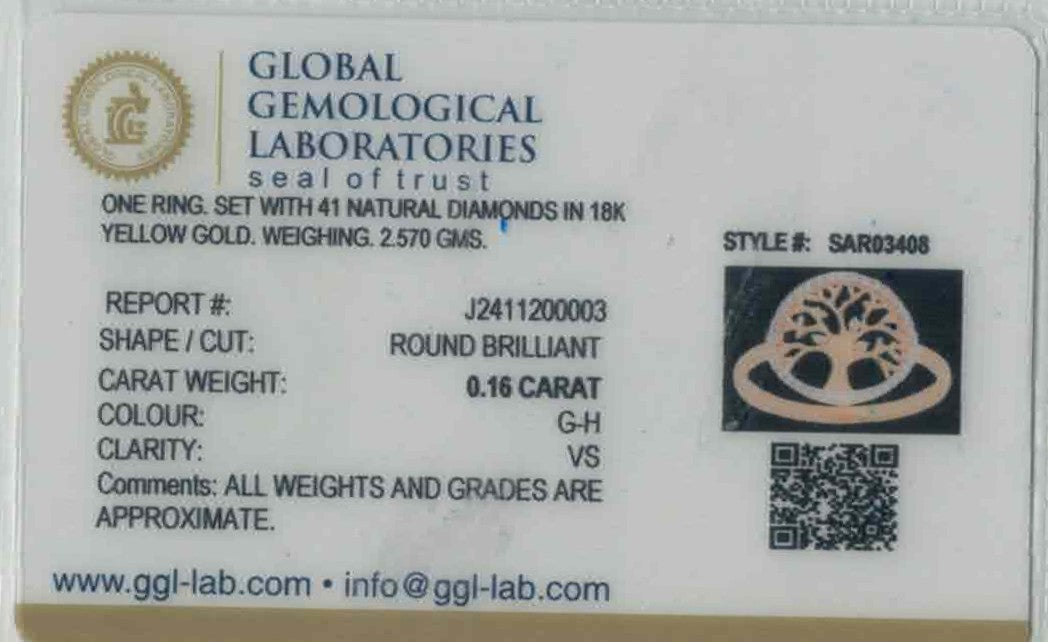 Delicately crafted, this 18k yellow gold diamond ring enchants with its graceful tree-inspired motif and refined sparkle. Weighing 2.57 grams, it balances elegance and subtle luxury with ease. The 0.16ct of G-H color, VS quality round brilliant-cut diamonds glisten with radiant allure. Sized 7 with re-sizing available, it’s a timeless piece symbolizing growth and beauty.